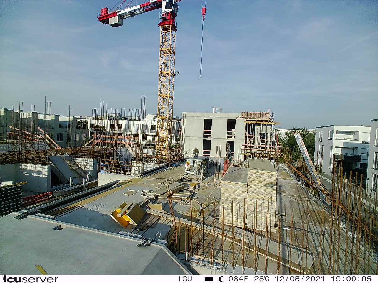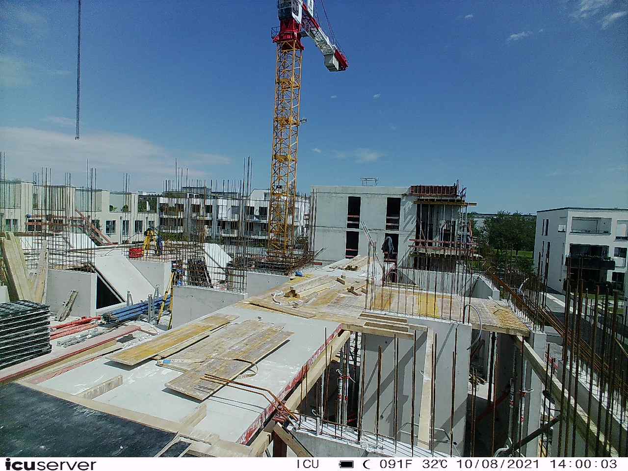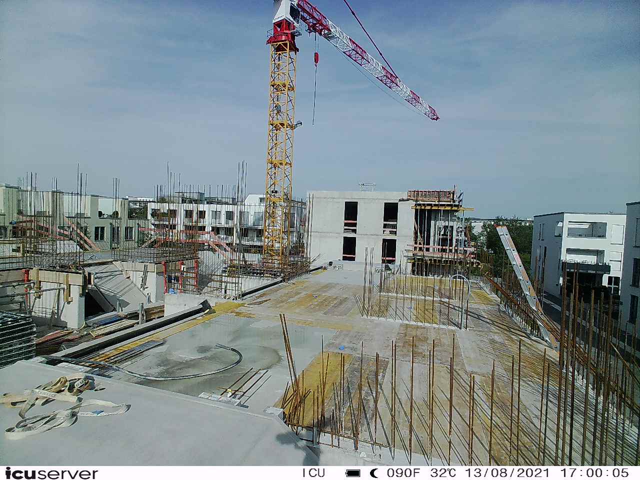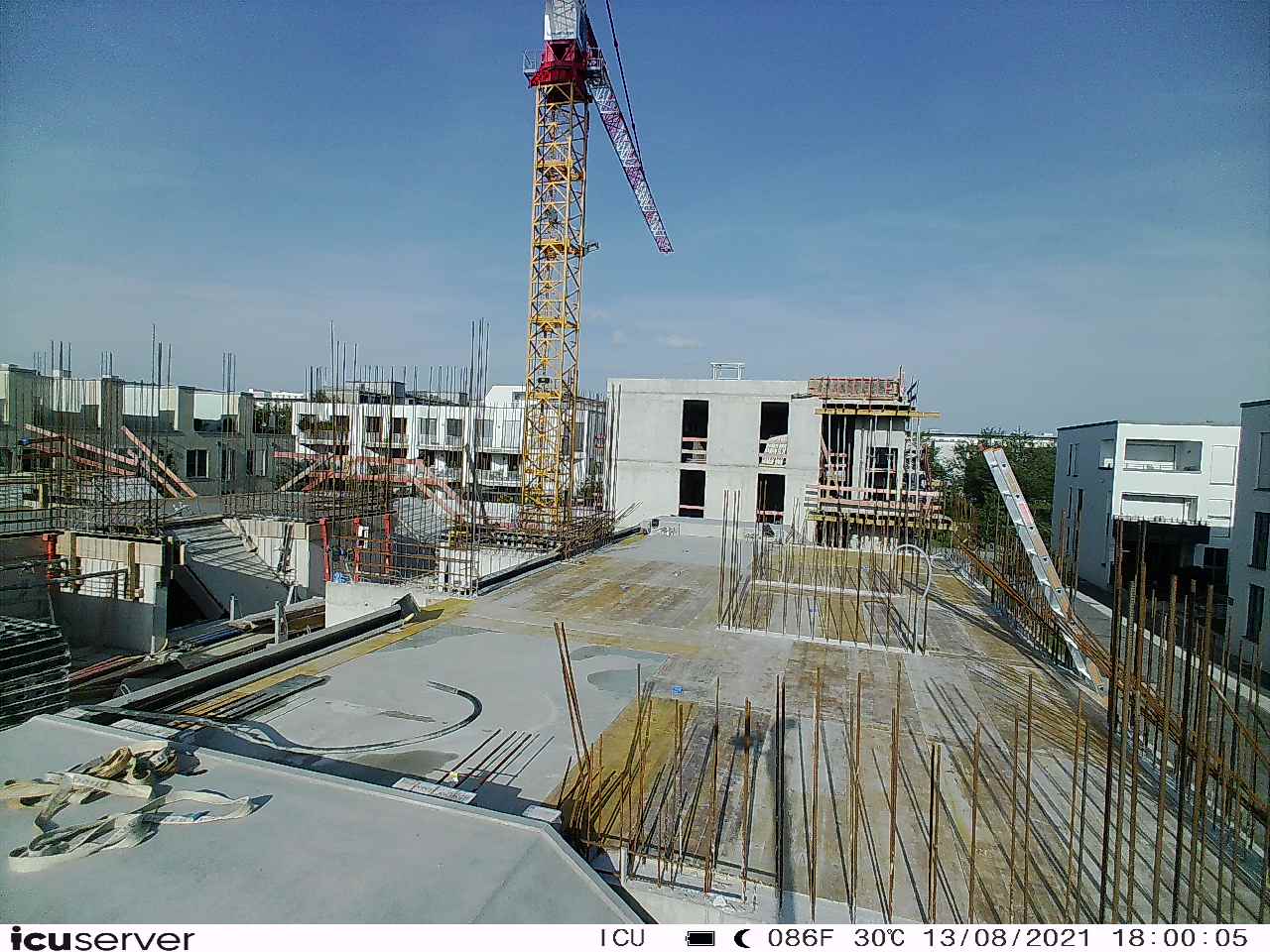 Die Kamera steht am westlichen Ende der Baustelle. Sie blickt nach Osten. Bilder: 26. Februar - 13. August 2021.