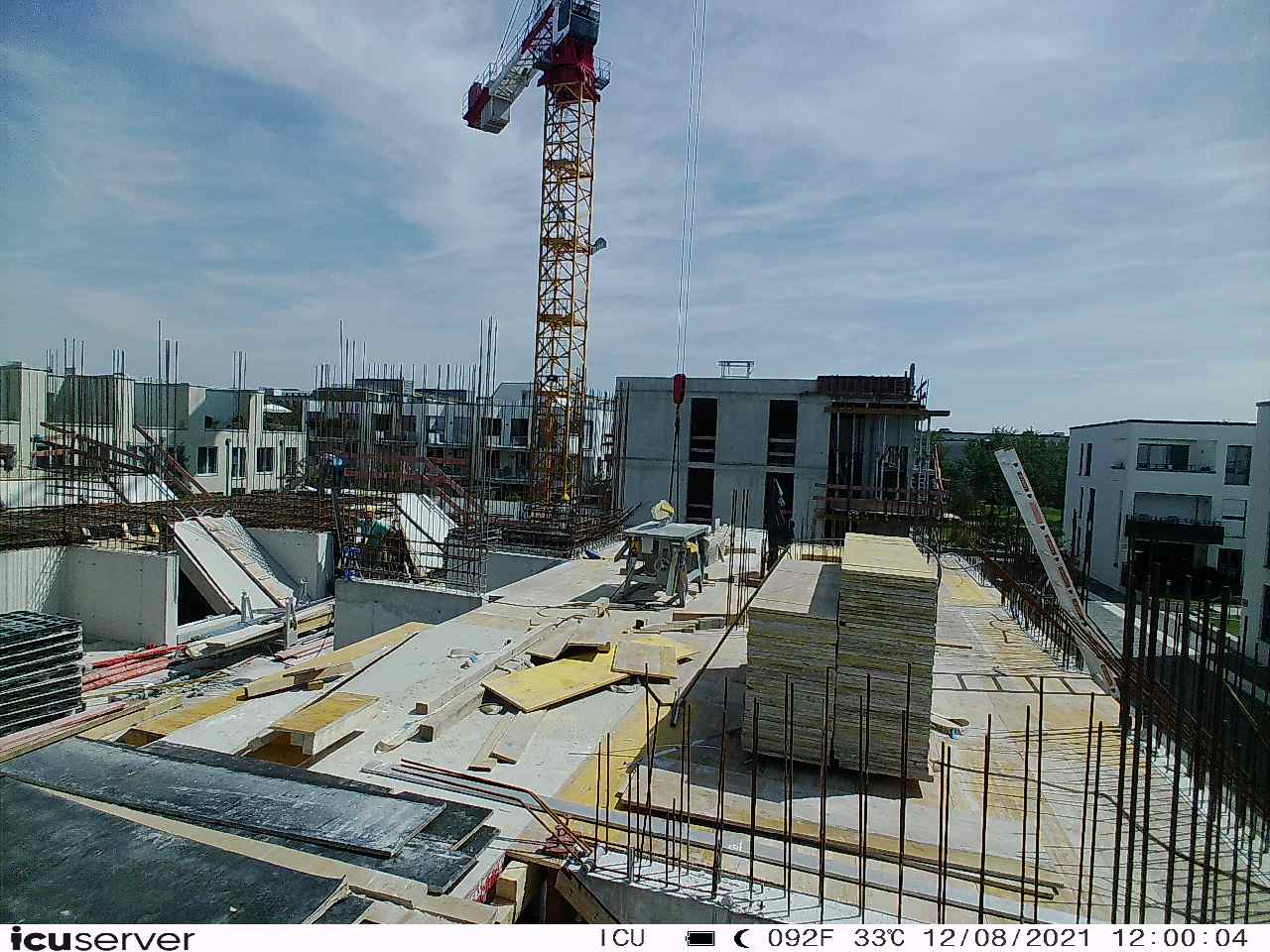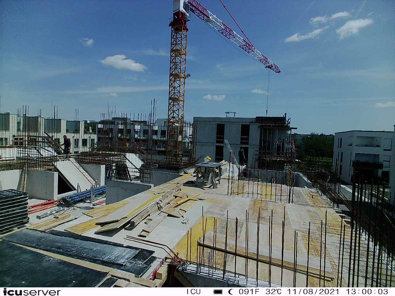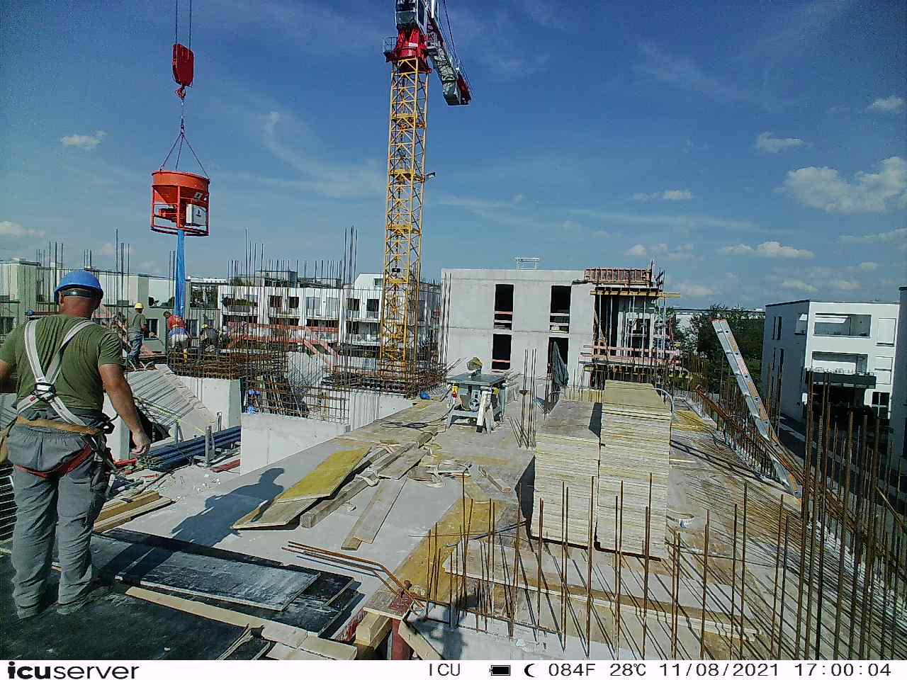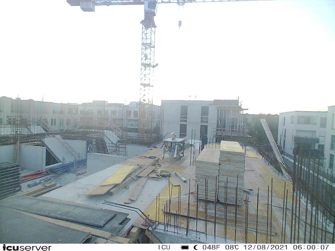 Die Kamera steht am westlichen Ende der Baustelle. Sie blickt nach Osten. Bilder: 26. Februar - 13. August 2021.
