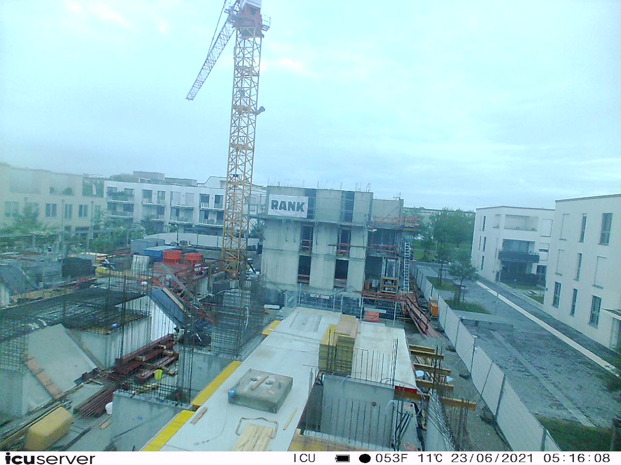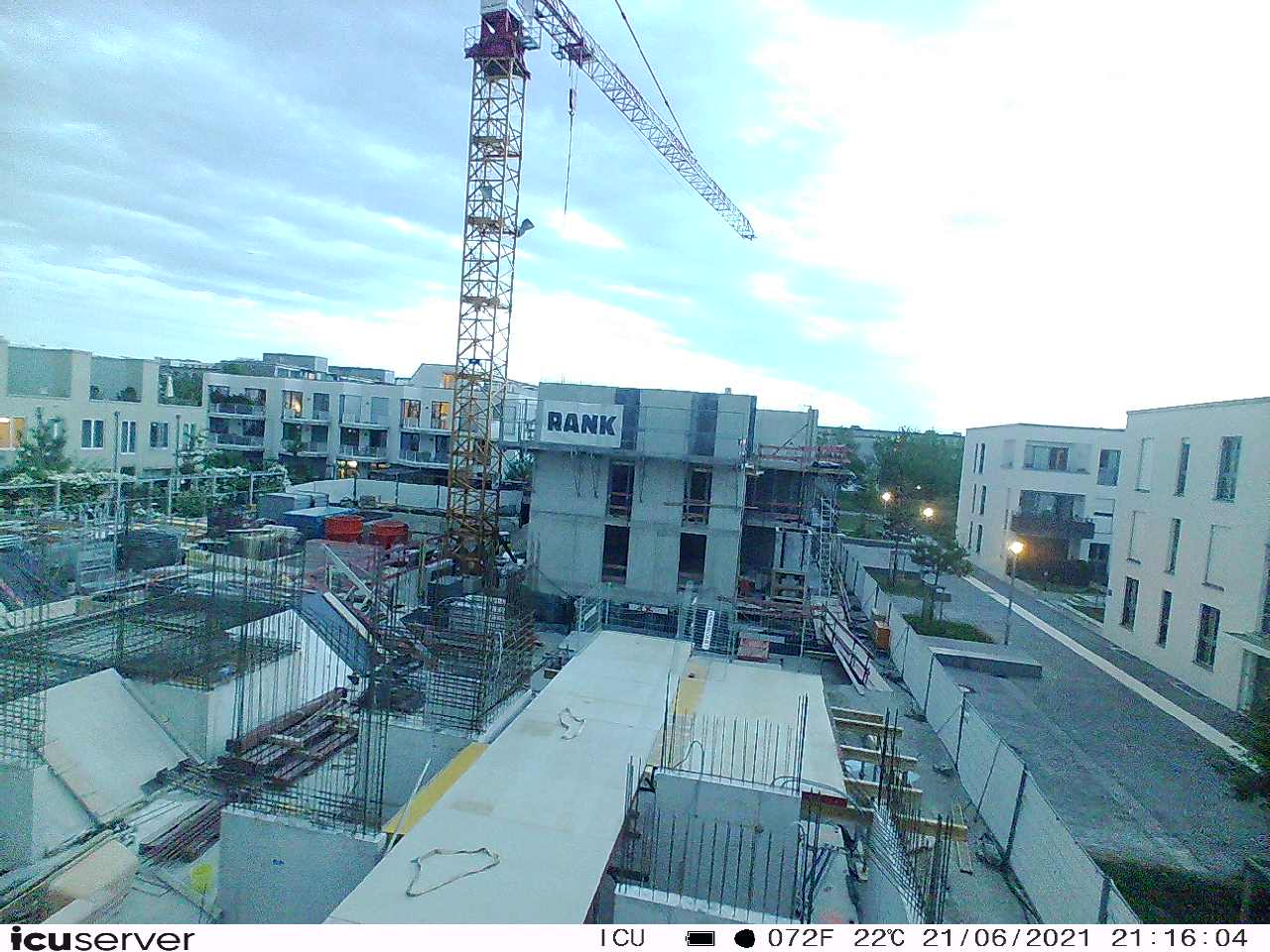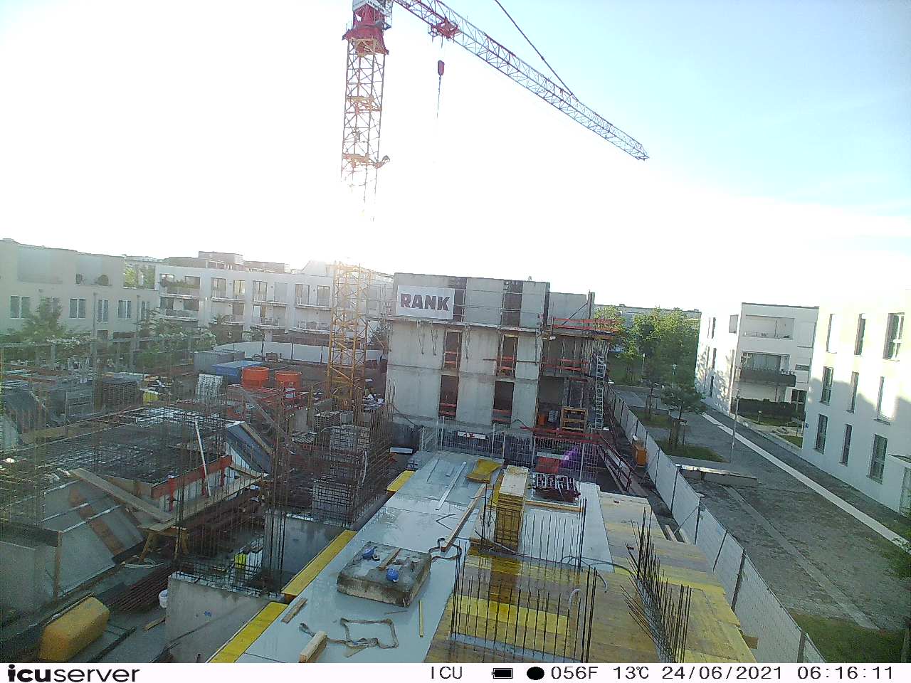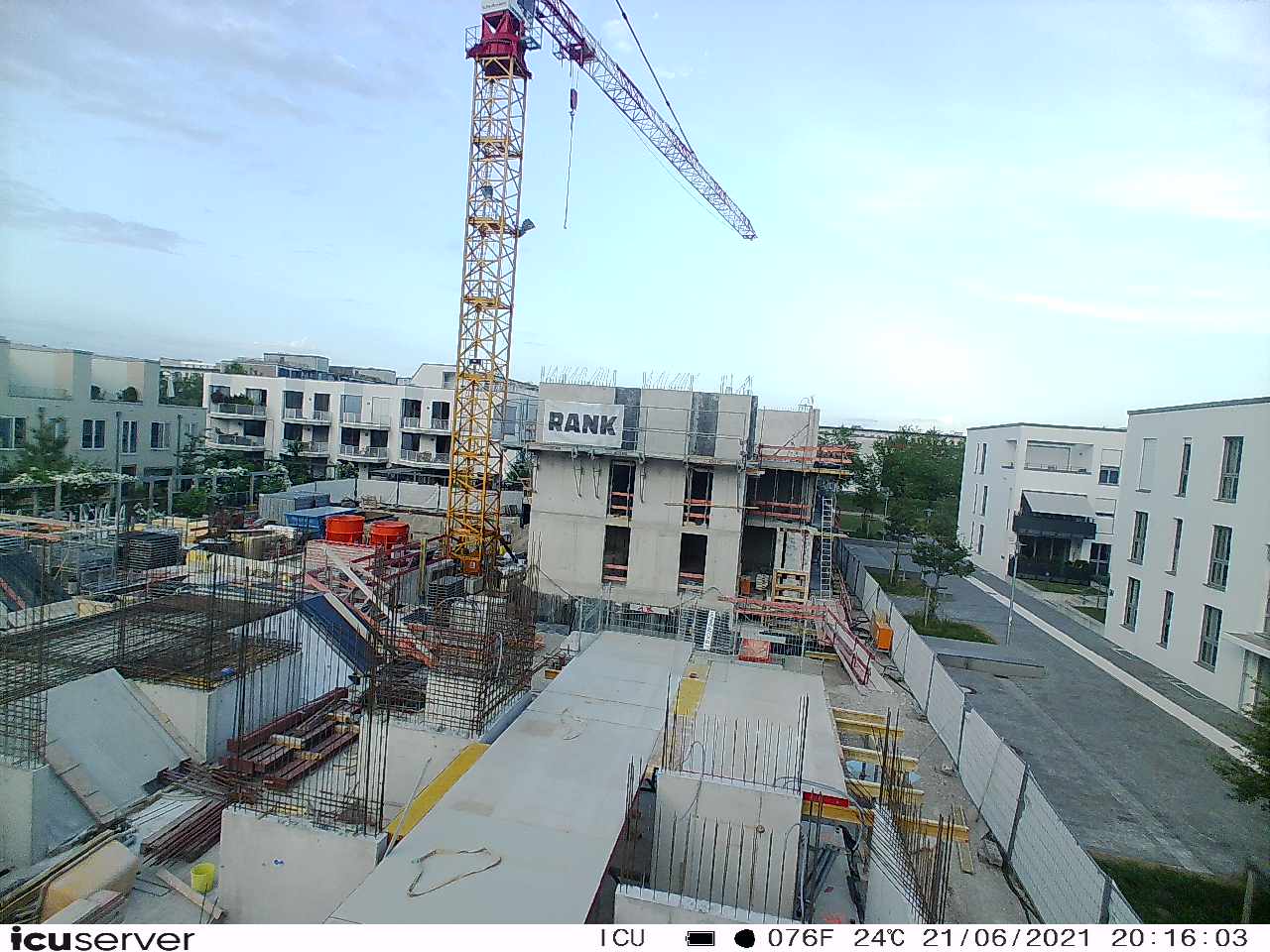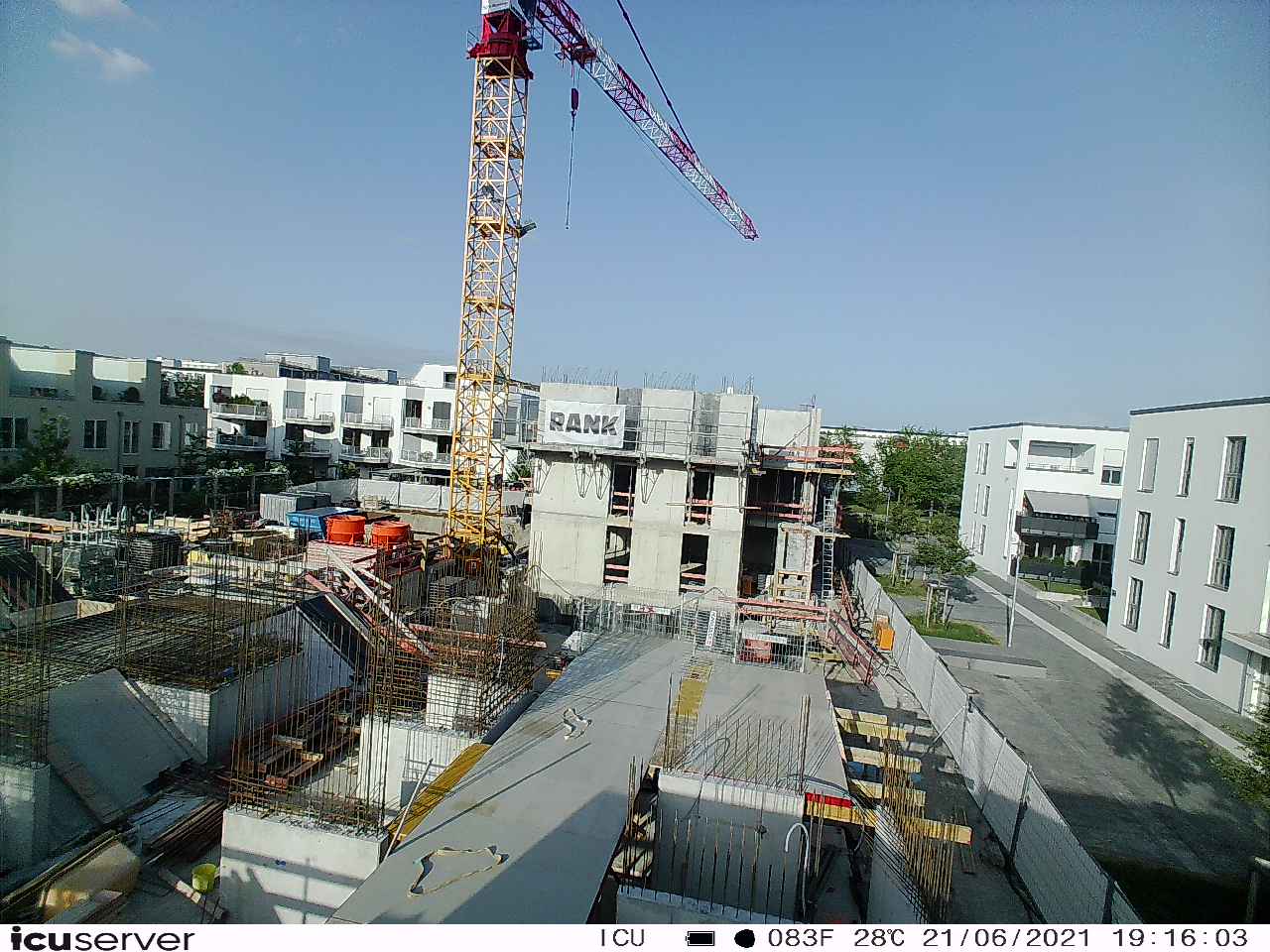 Die Kamera steht am westlichen Ende der Baustelle. Sie blickt nach Osten. Bilder: 26. Februar - 13. August 2021.