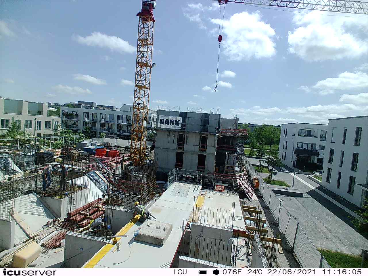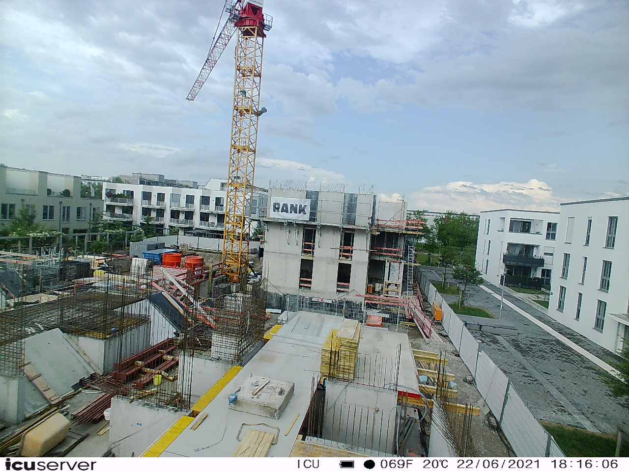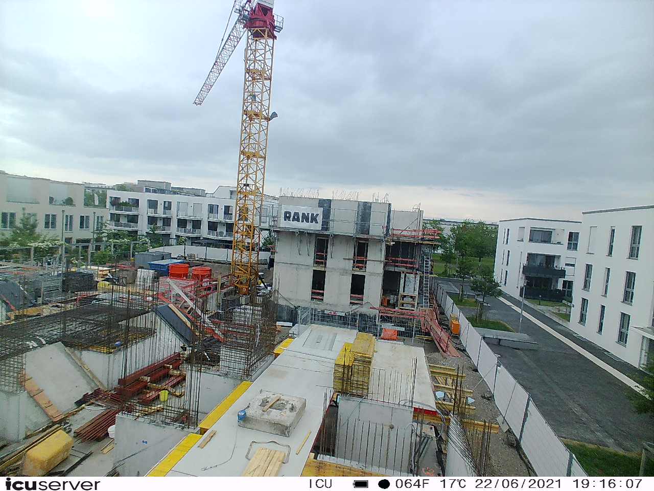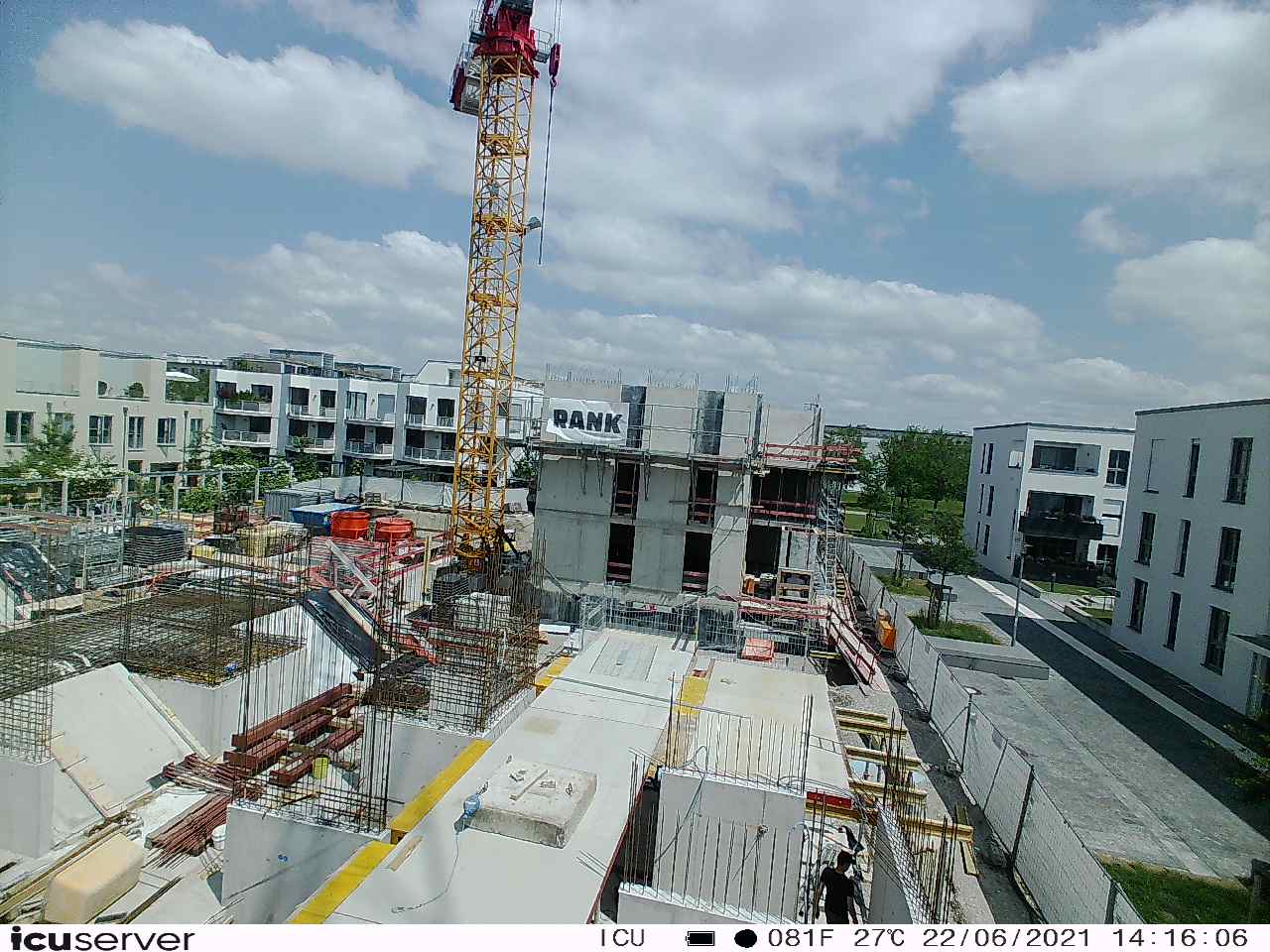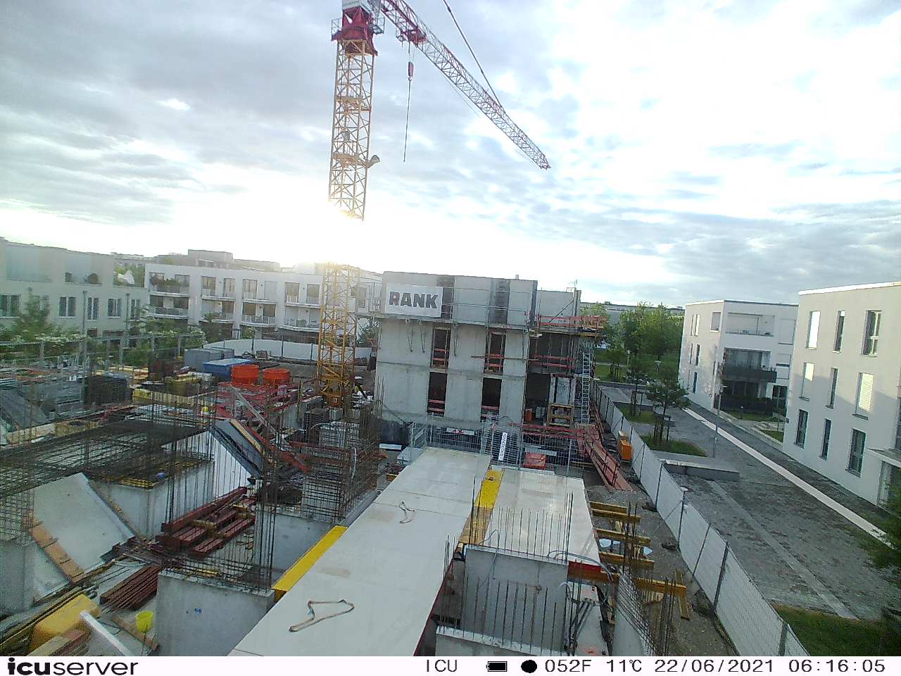Die Kamera steht am westlichen Ende der Baustelle. Sie blickt nach Osten. Bilder: 26. Februar - 13. August 2021.