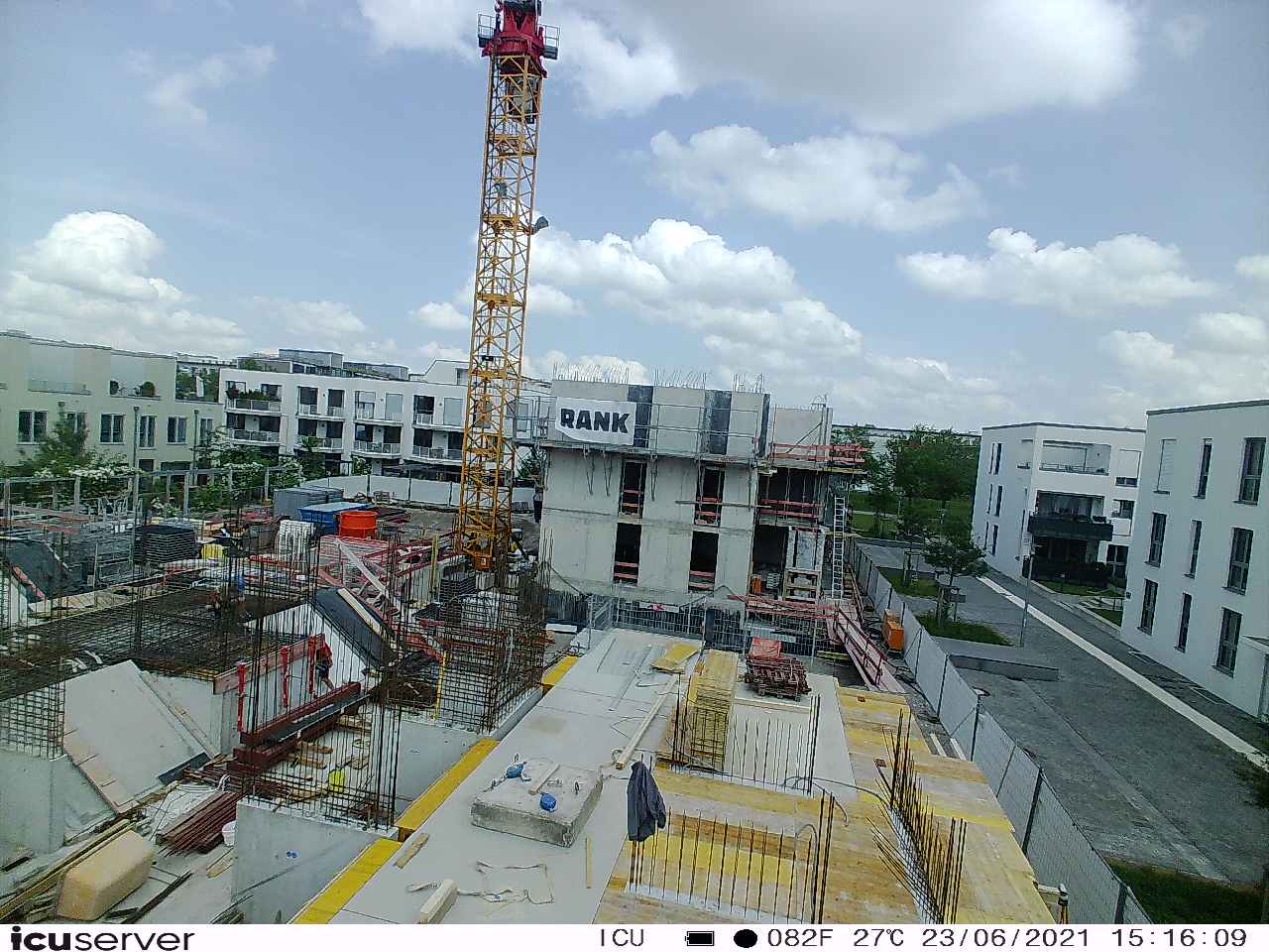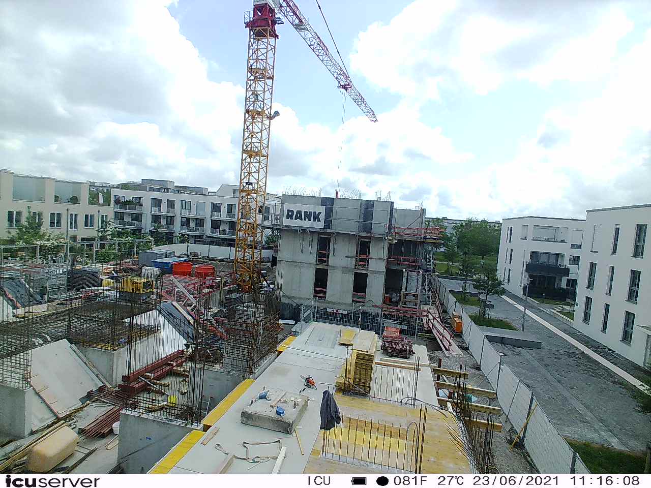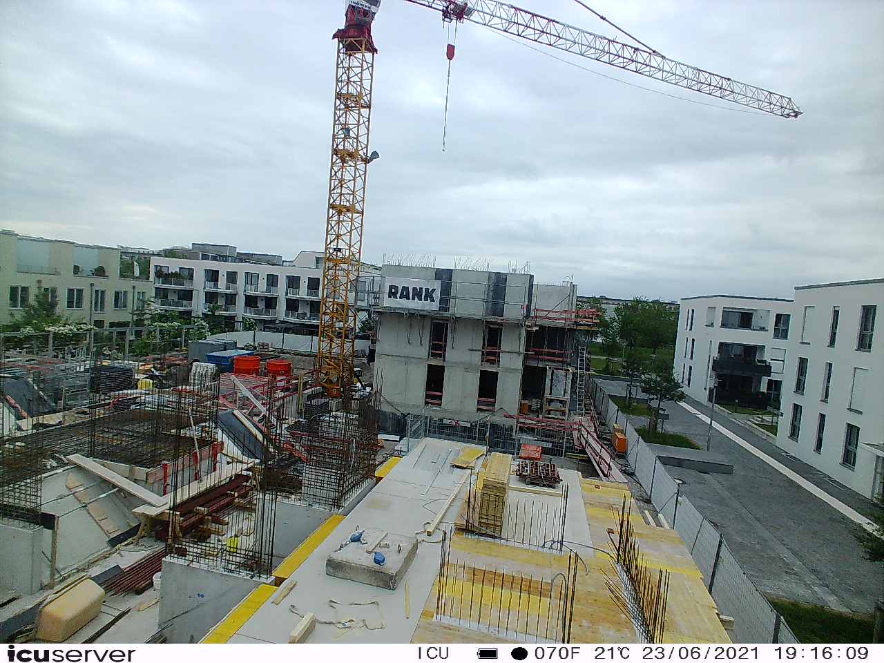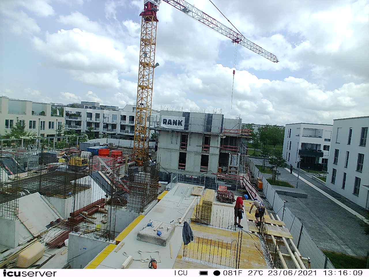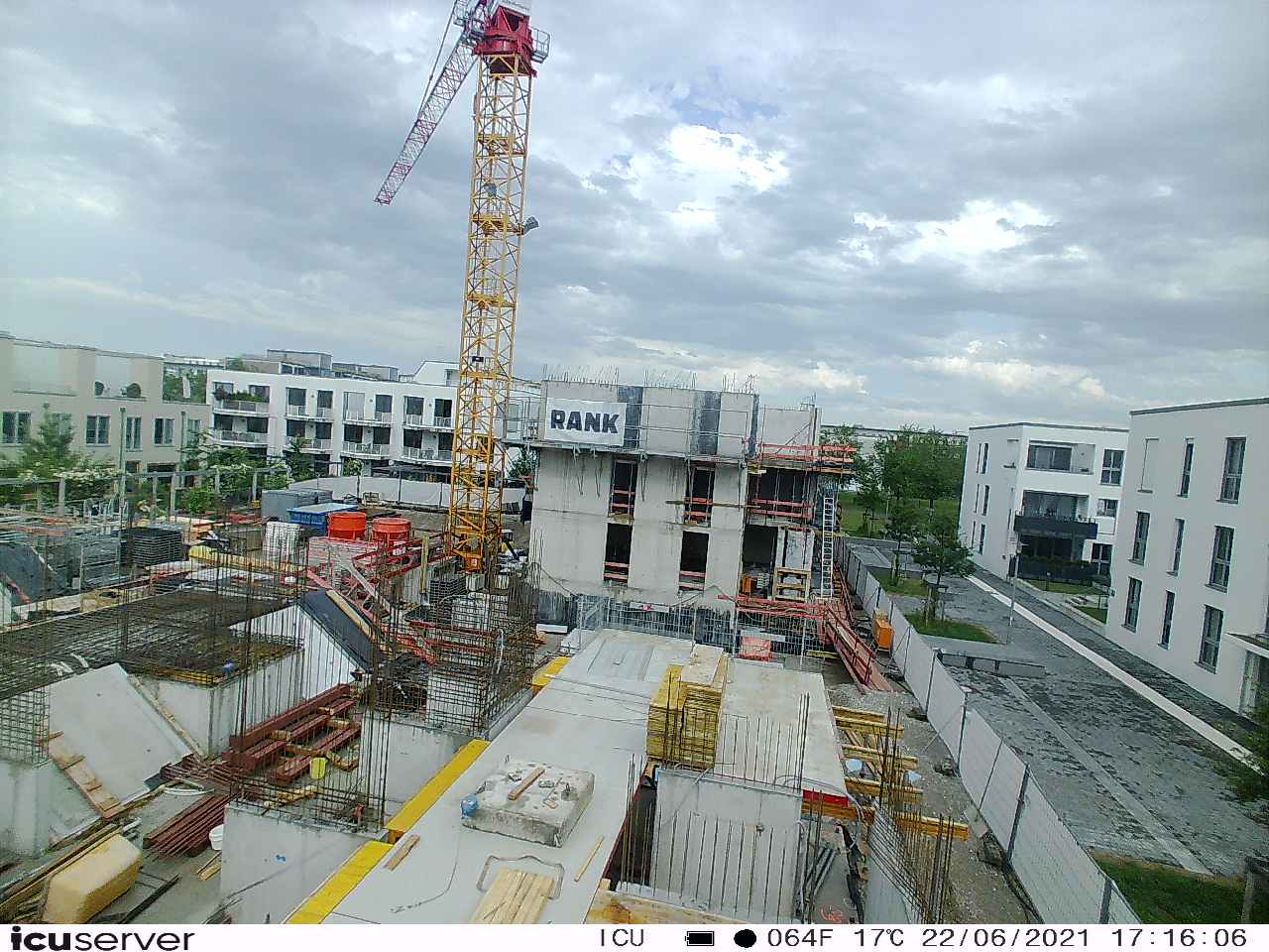 Die Kamera steht am westlichen Ende der Baustelle. Sie blickt nach Osten. Bilder: 26. Februar - 13. August 2021.