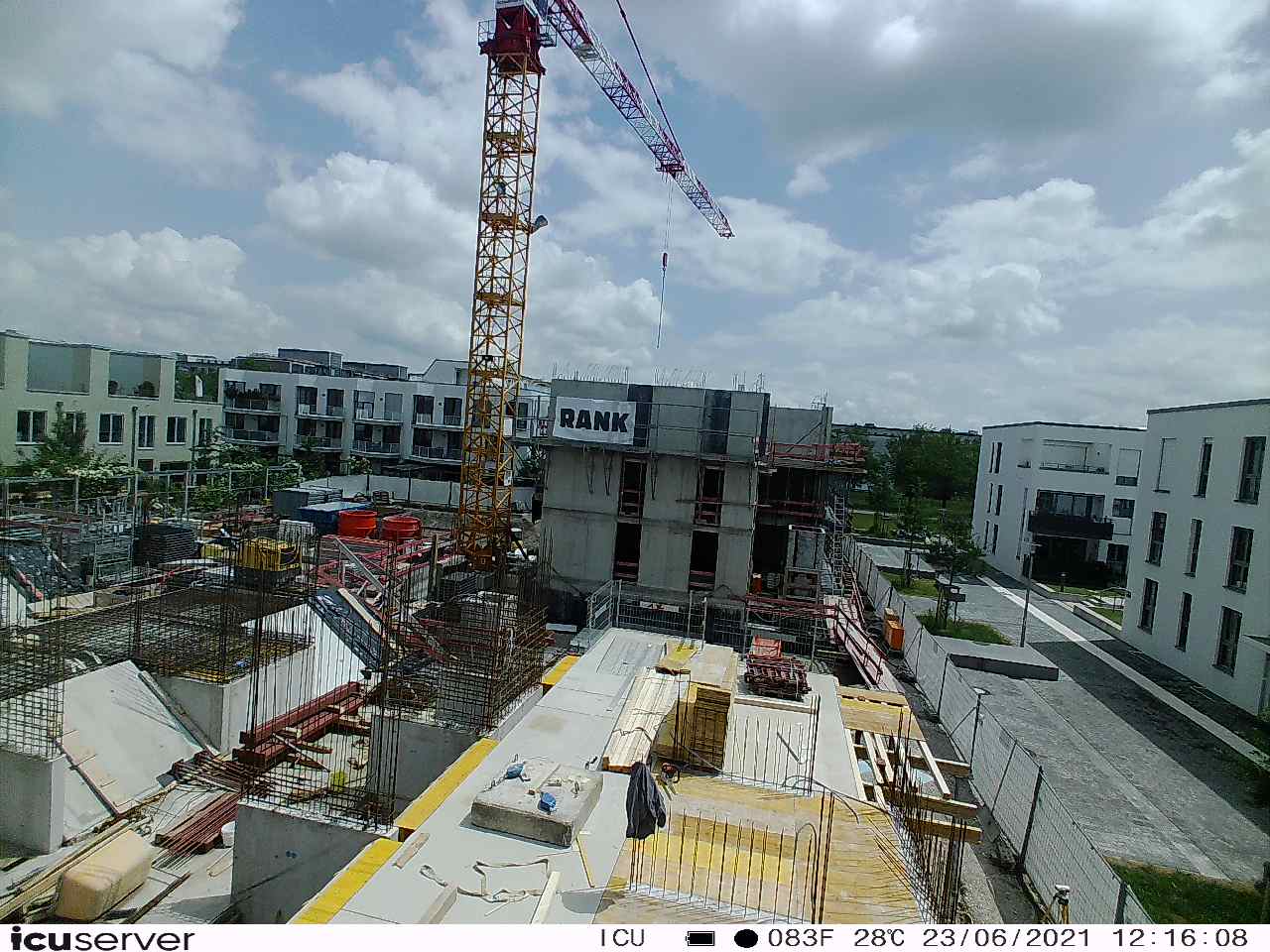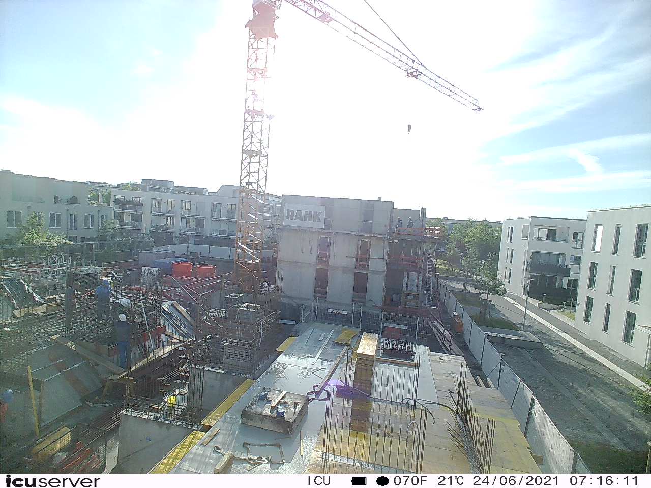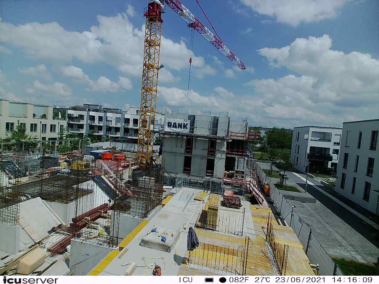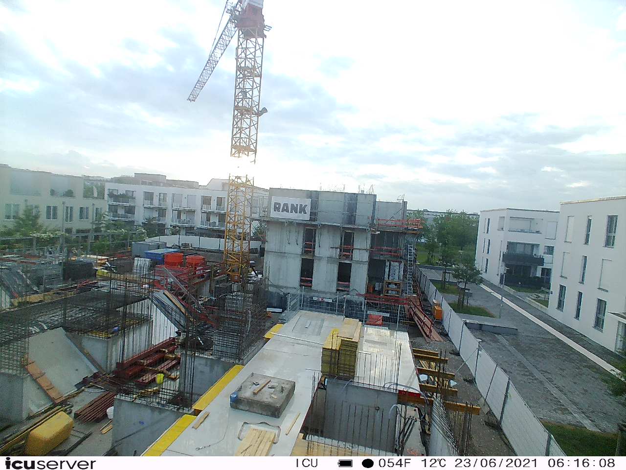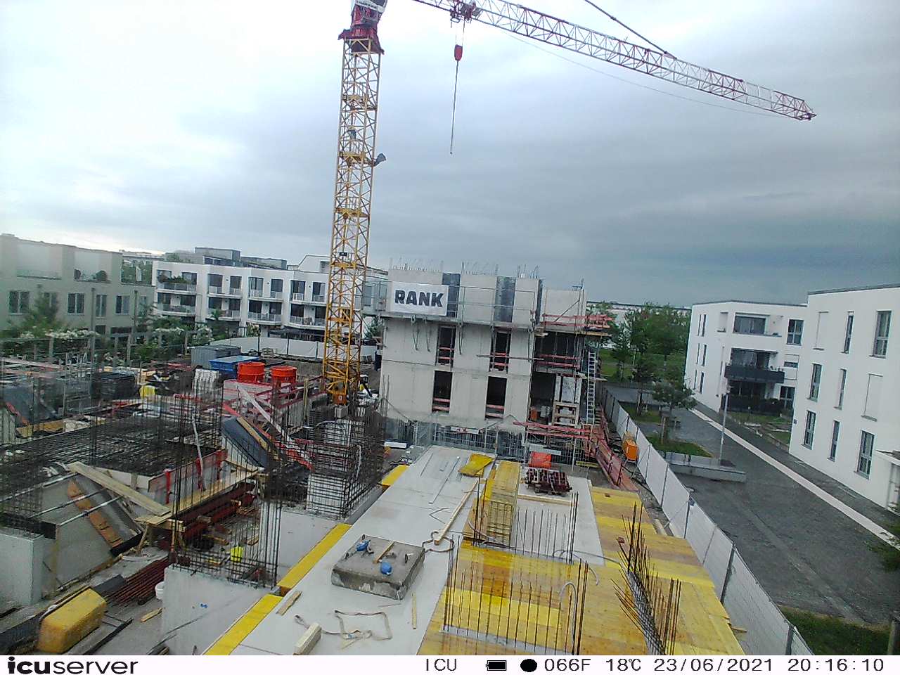 Die Kamera steht am westlichen Ende der Baustelle. Sie blickt nach Osten. Bilder: 26. Februar - 13. August 2021.