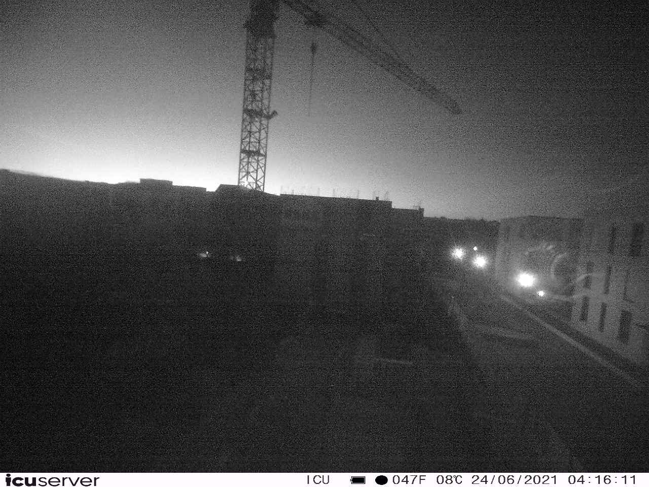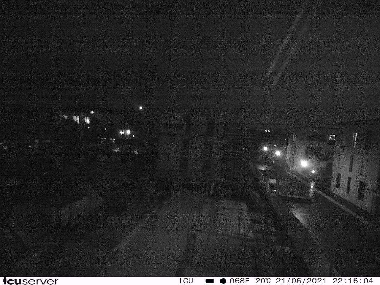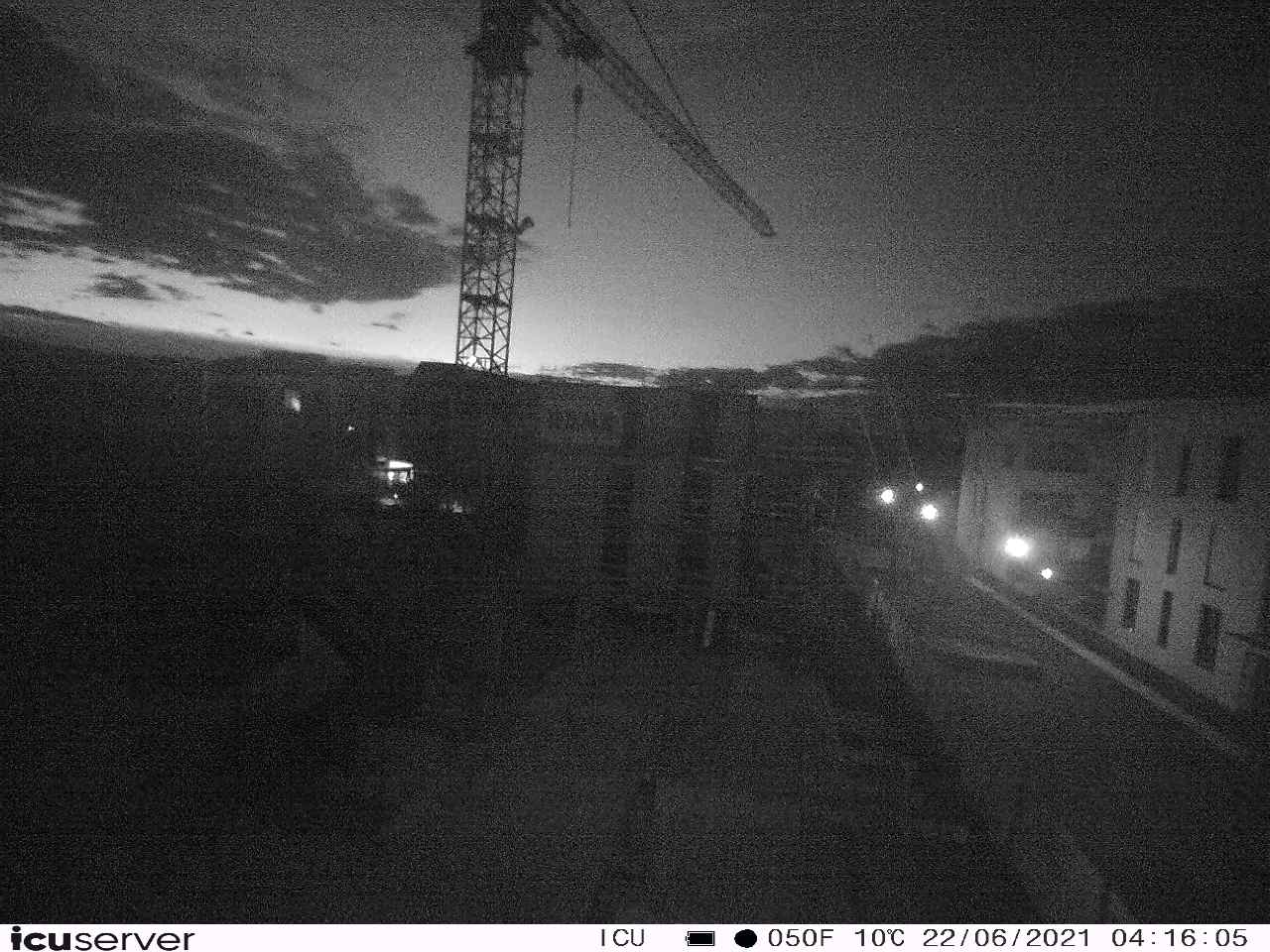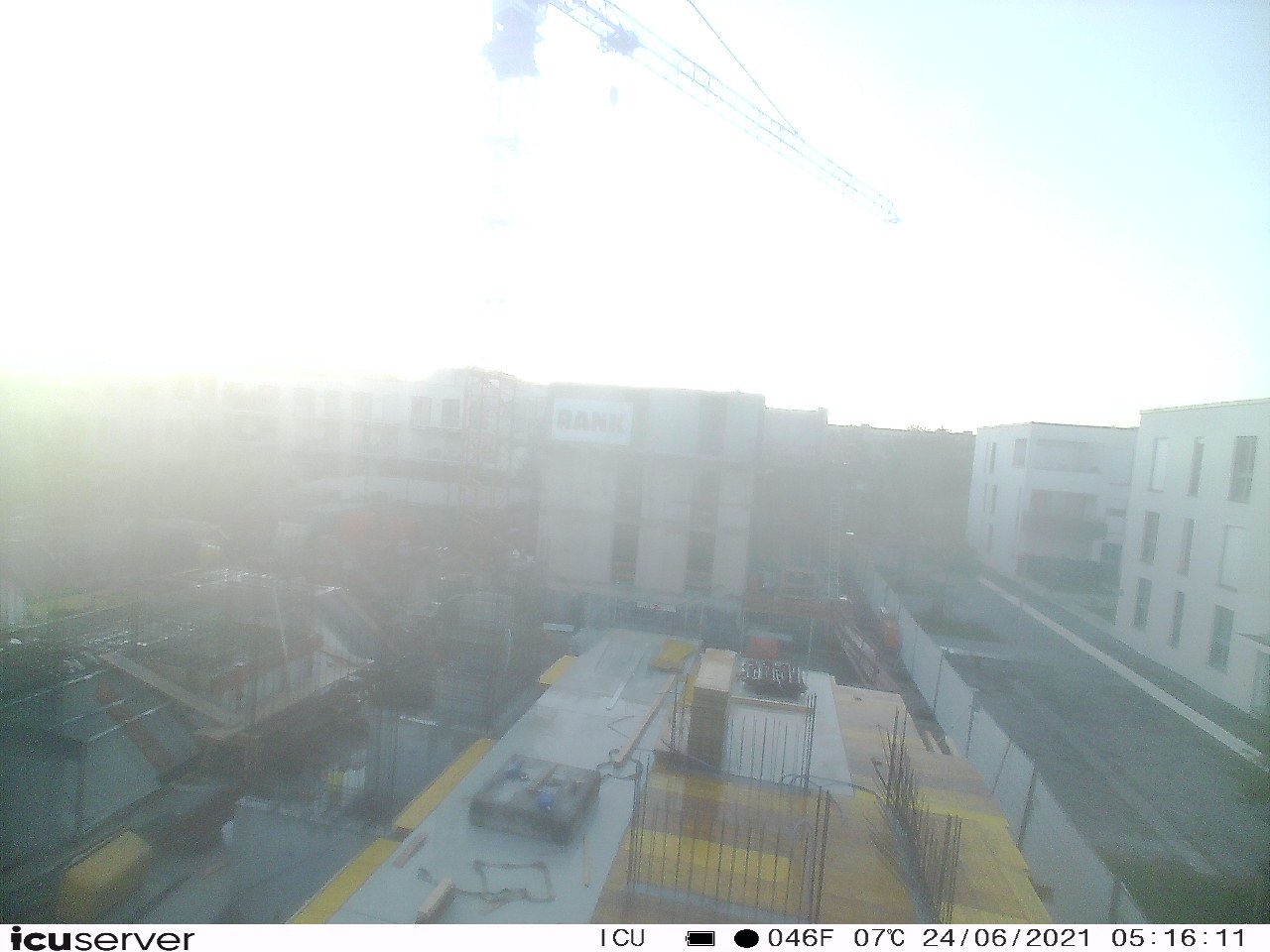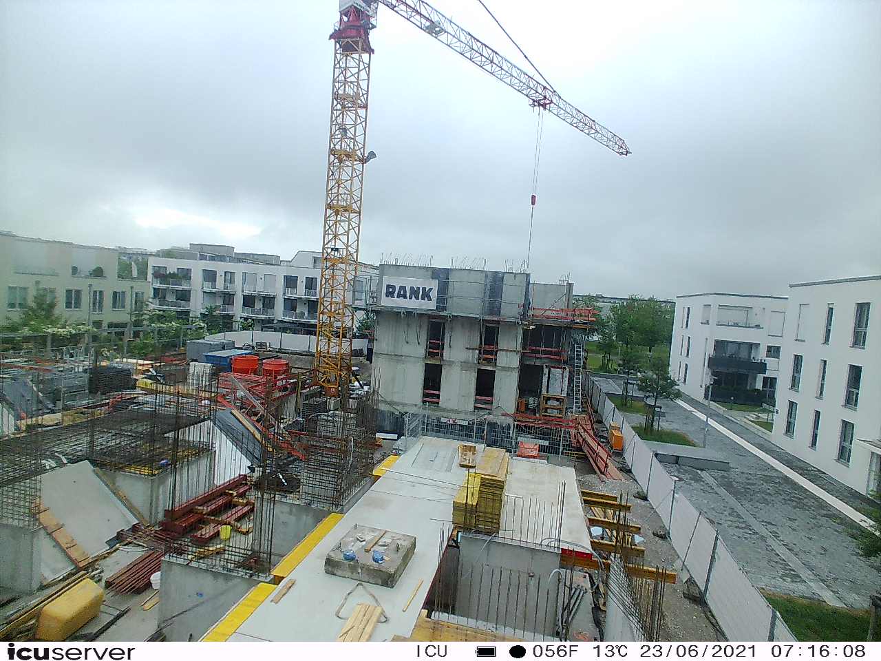 Die Kamera steht am westlichen Ende der Baustelle. Sie blickt nach Osten. Bilder: 26. Februar - 13. August 2021.