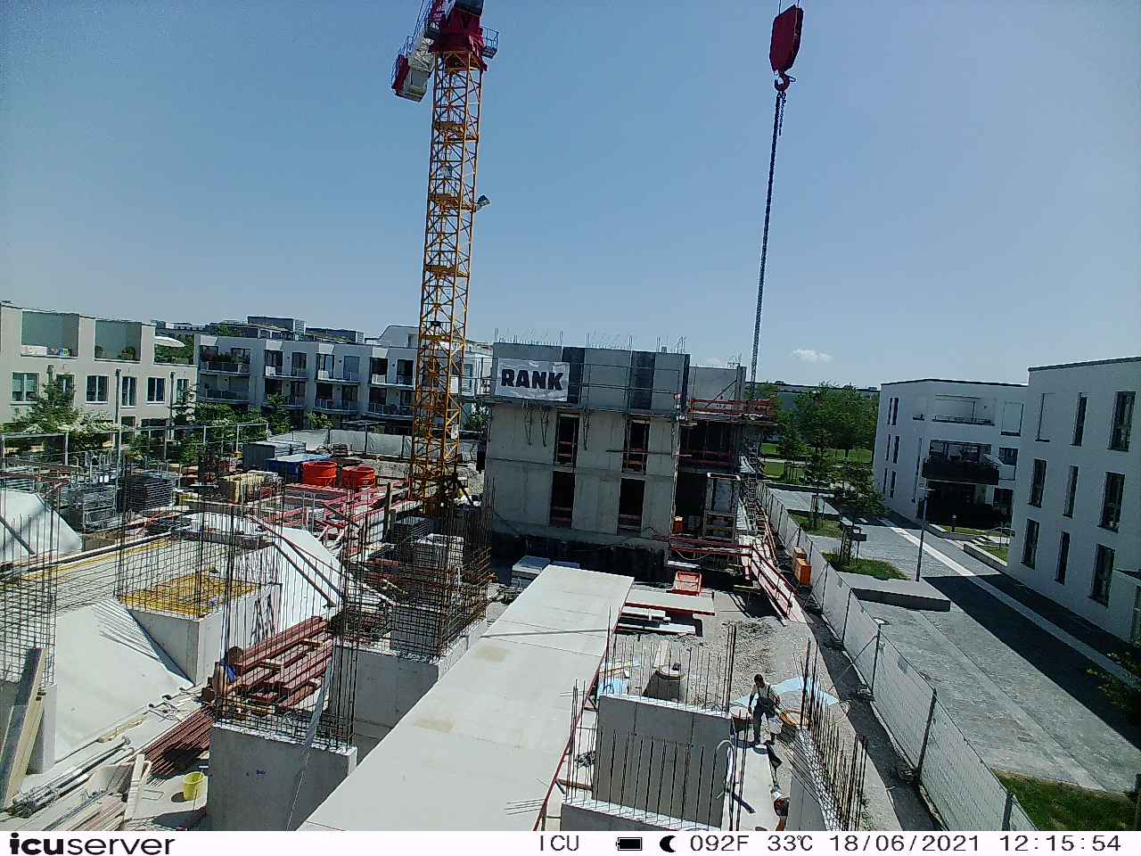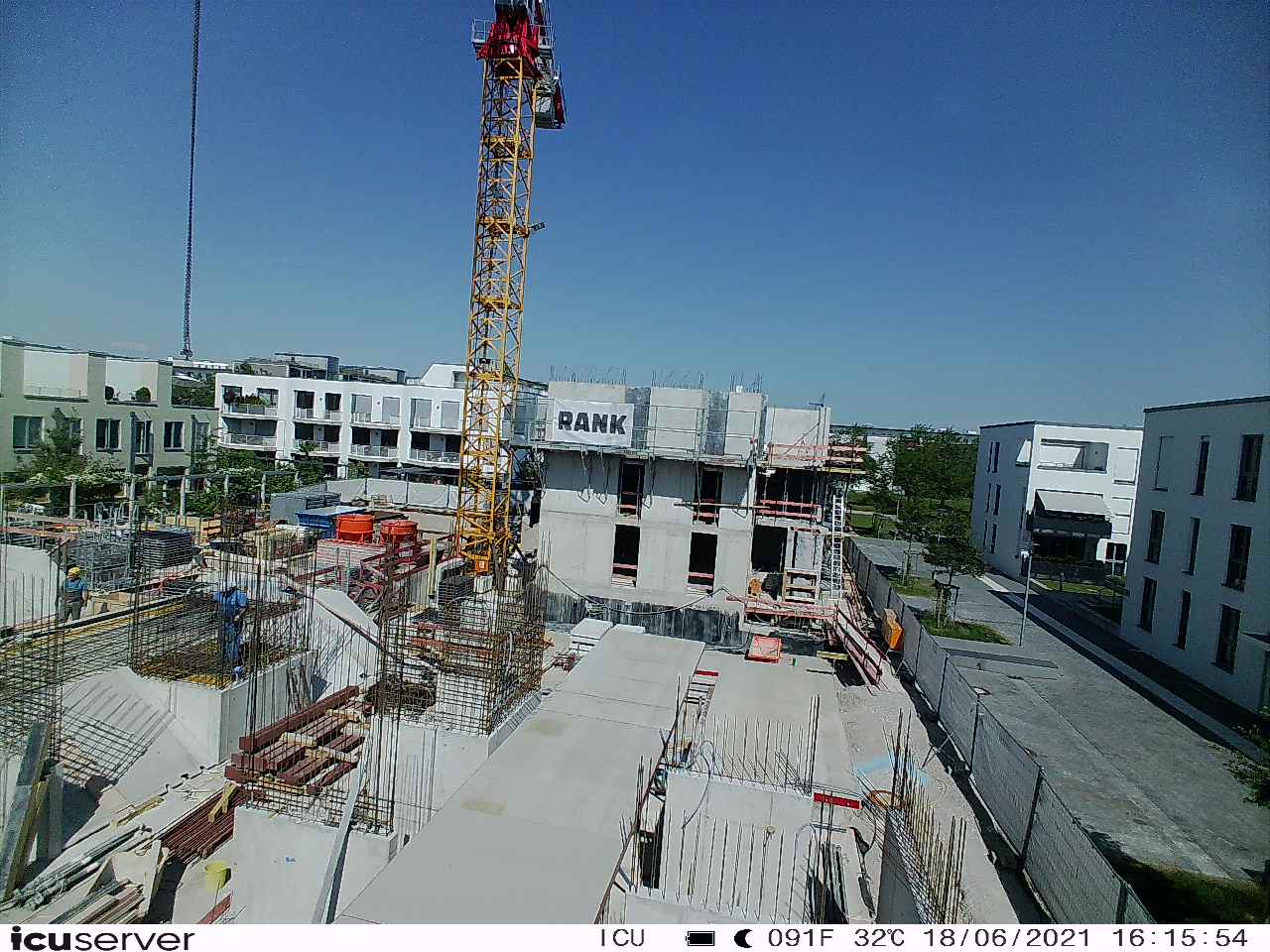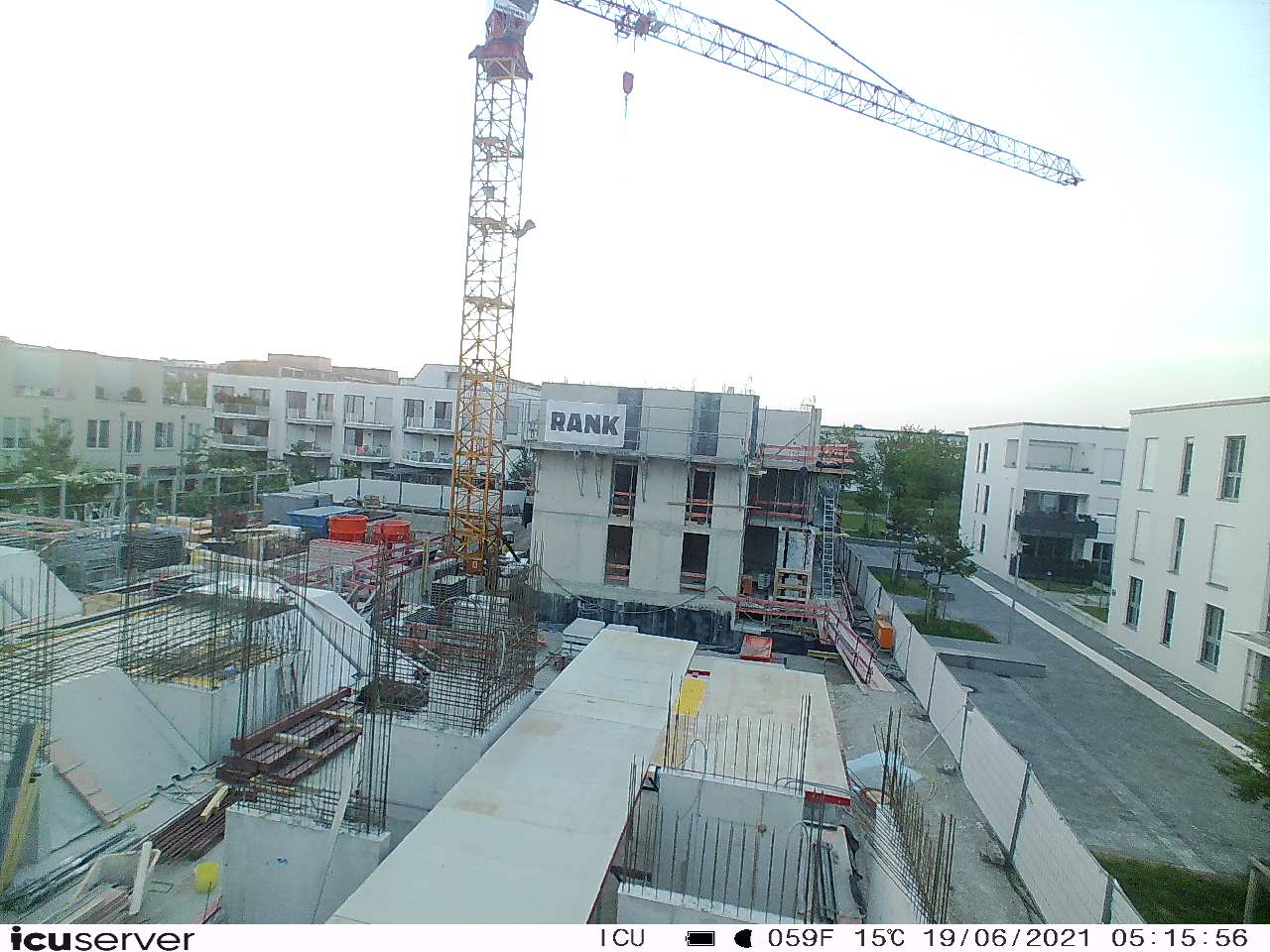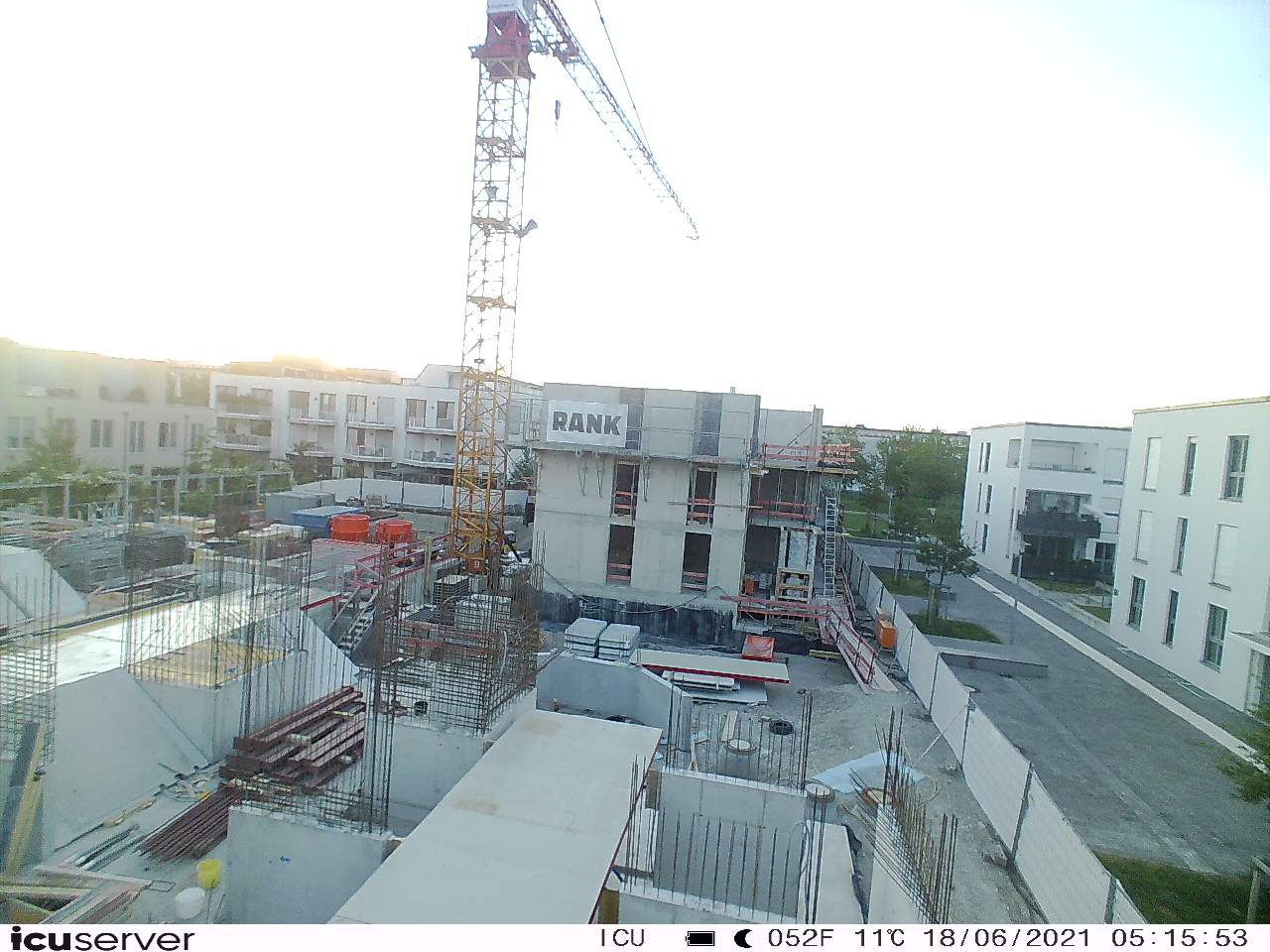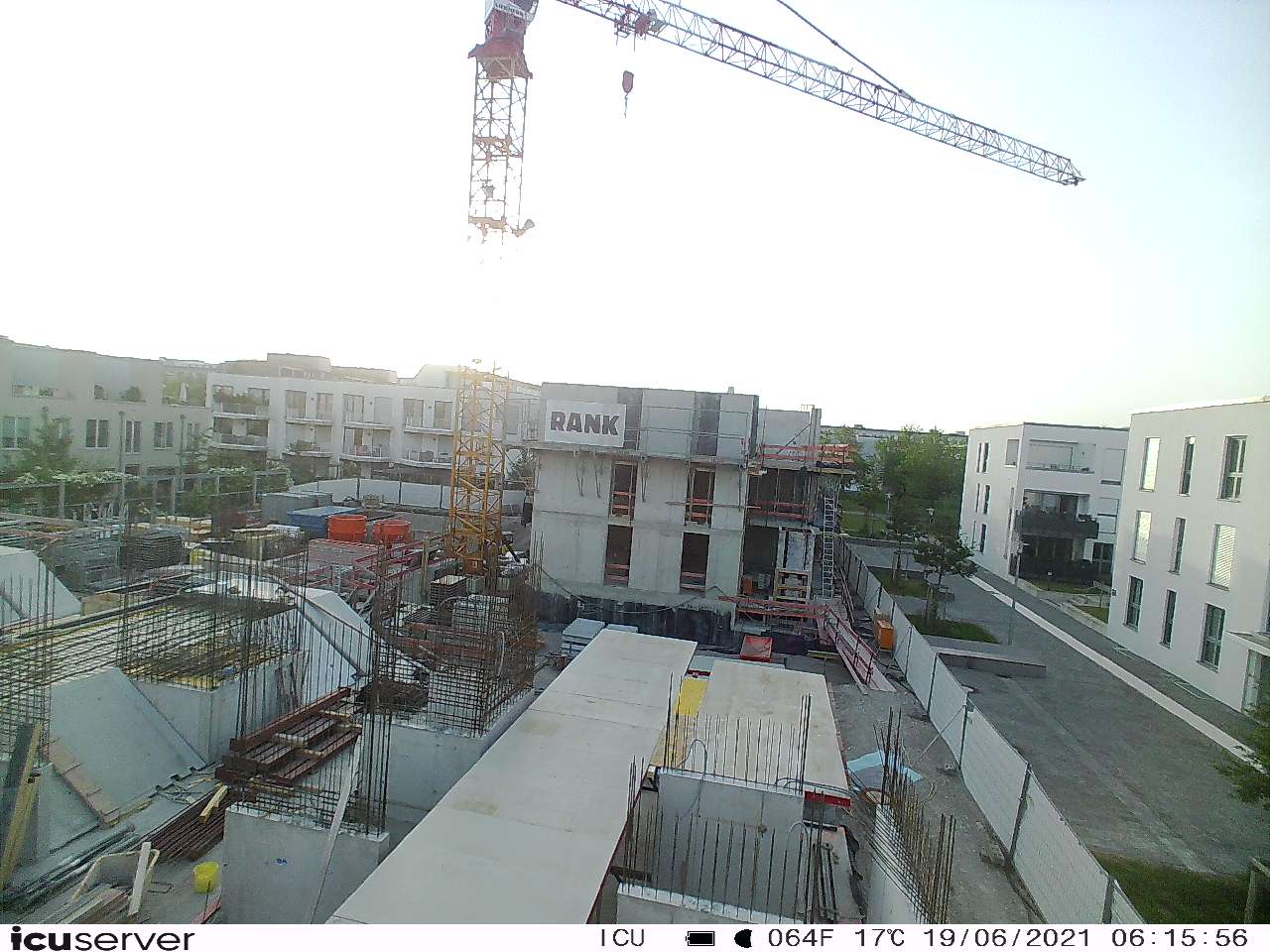 Die Kamera steht am westlichen Ende der Baustelle. Sie blickt nach Osten. Bilder: 26. Februar - 13. August 2021.