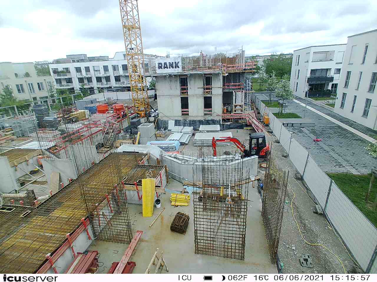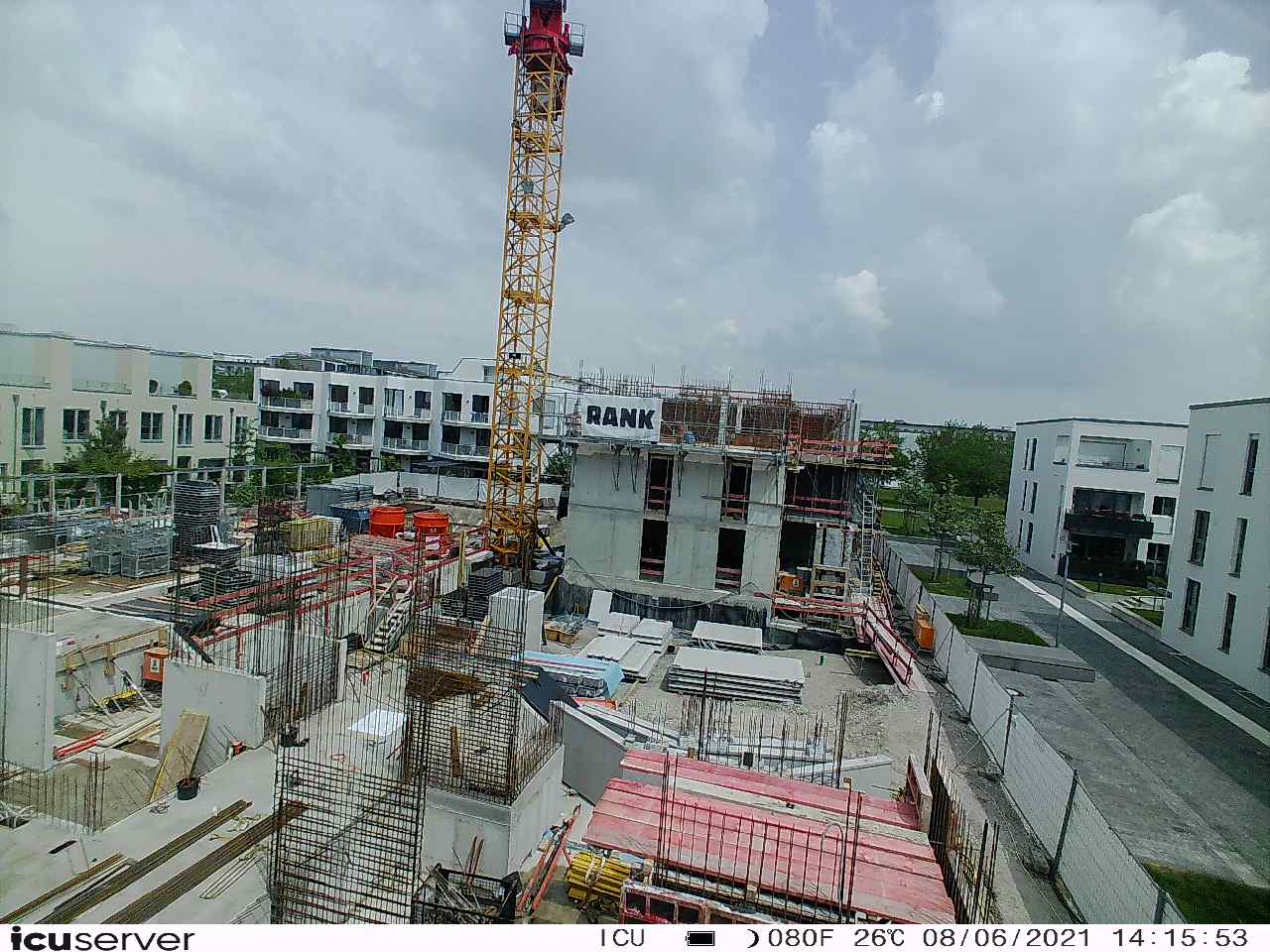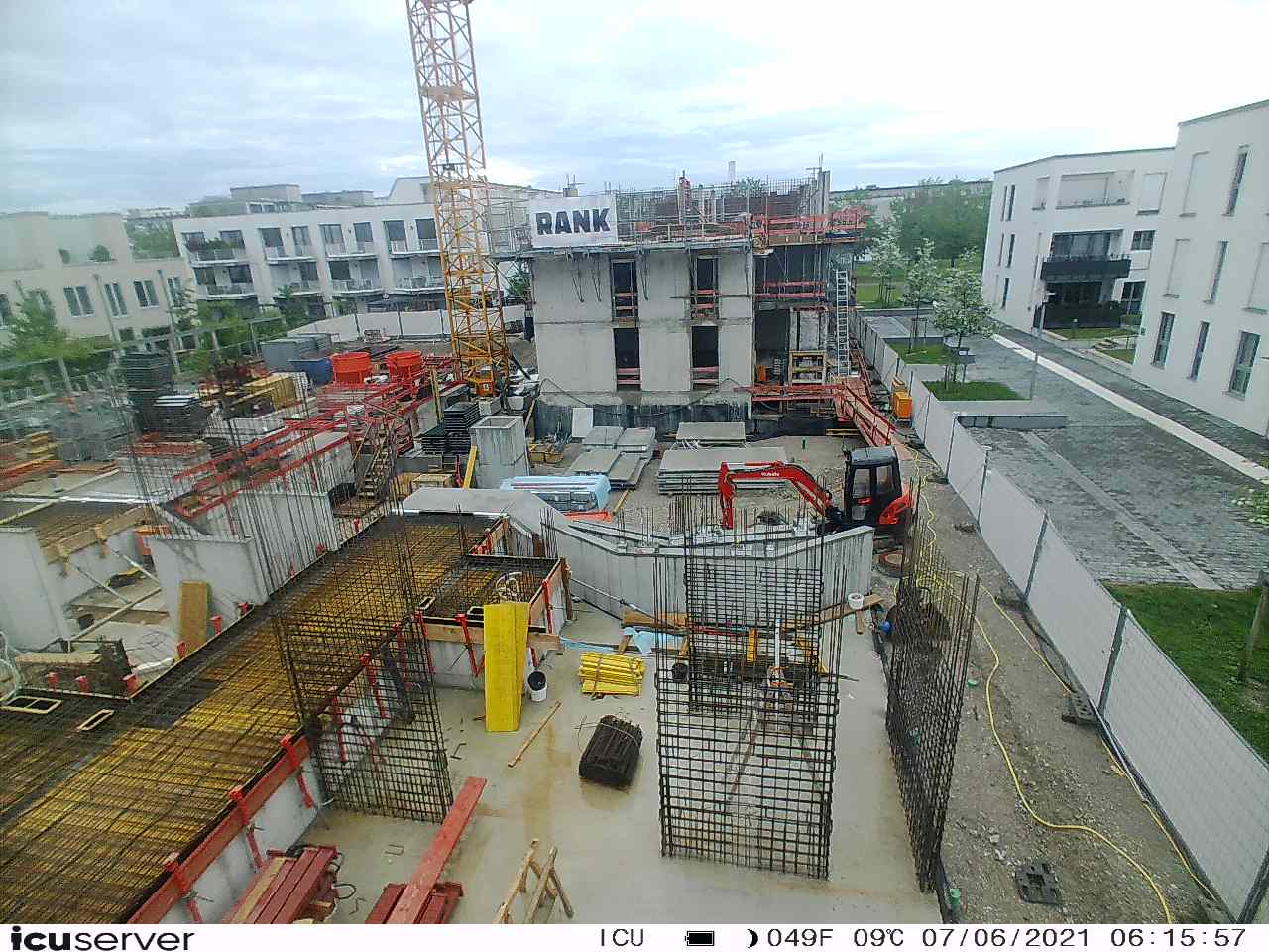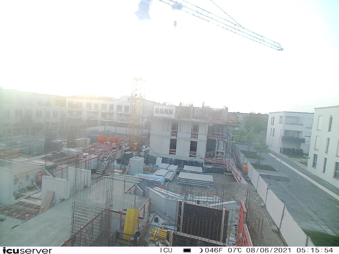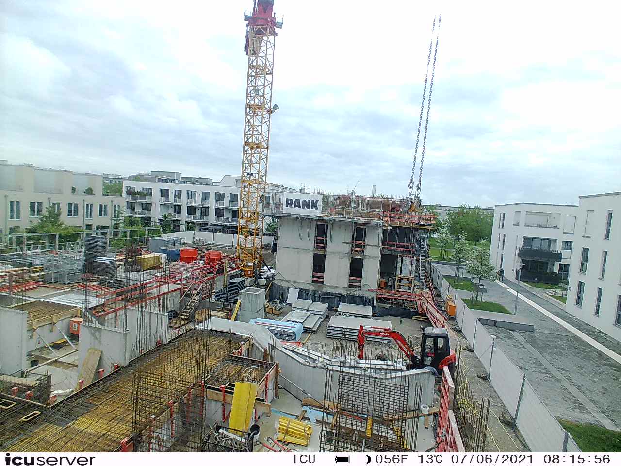 Die Kamera steht am westlichen Ende der Baustelle. Sie blickt nach Osten. Bilder: 26. Februar - 13. August 2021.