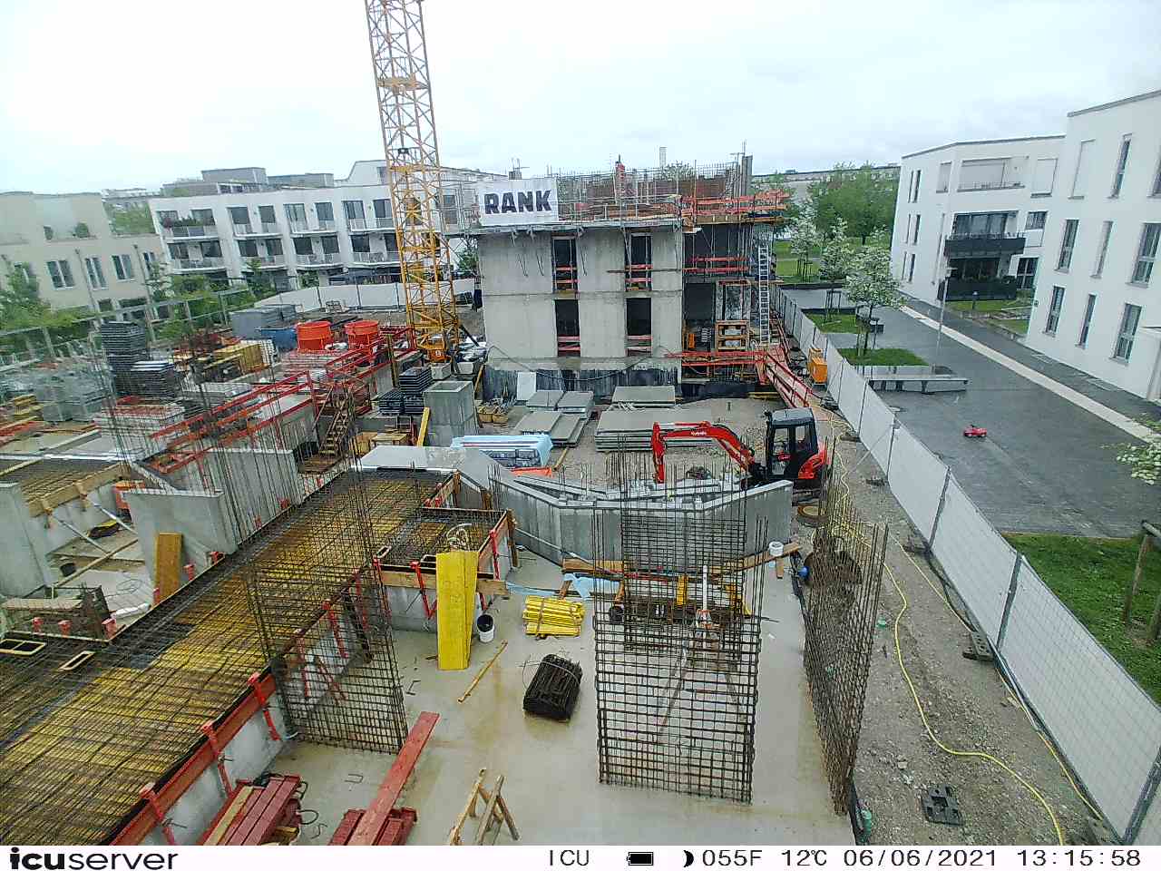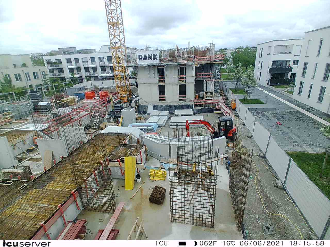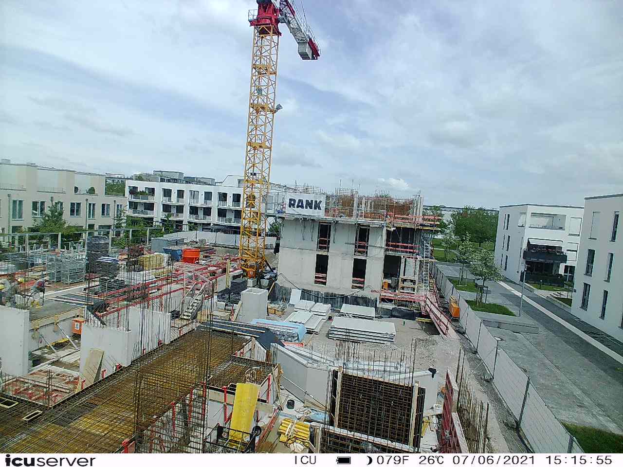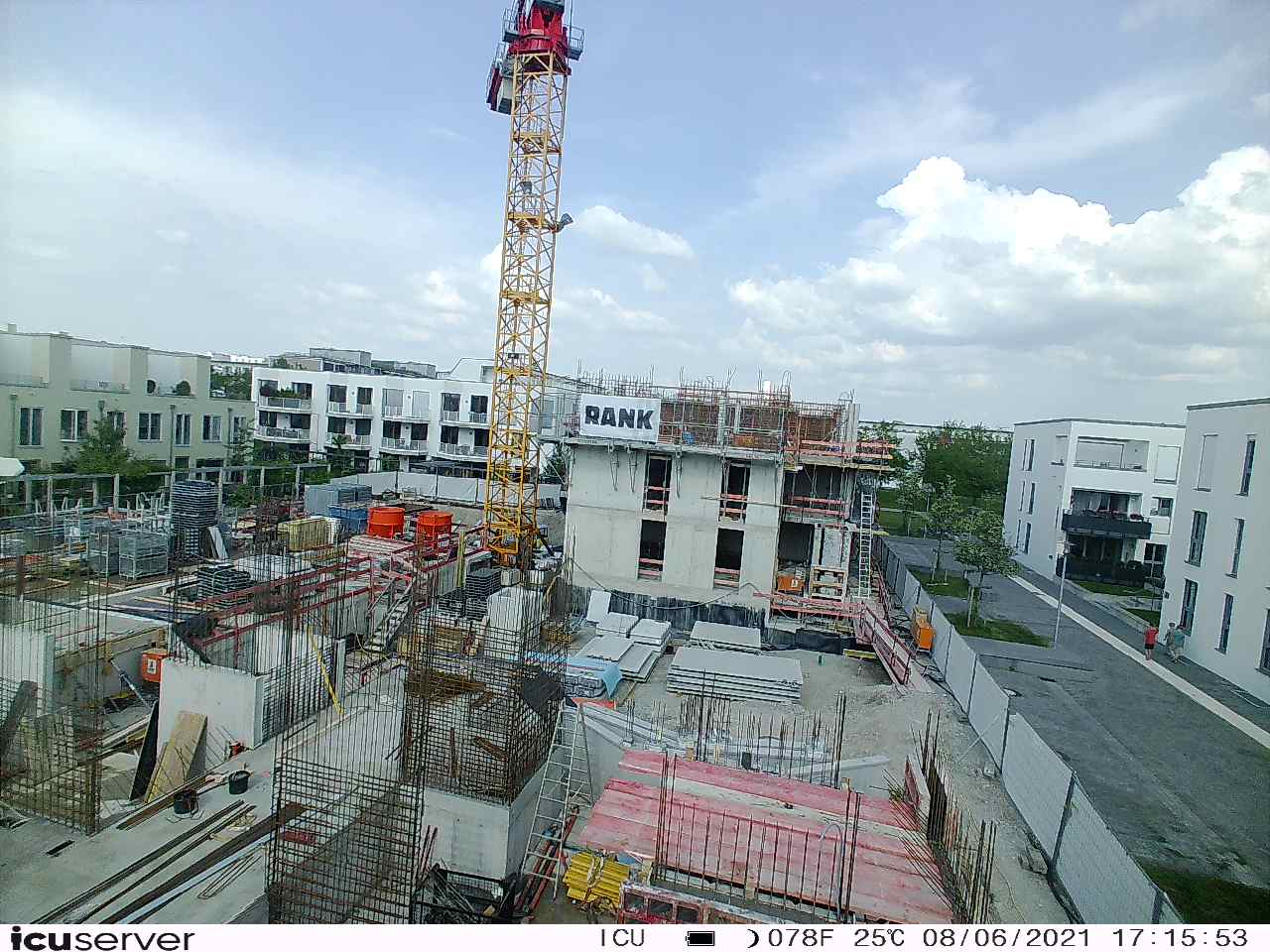Die Kamera steht am westlichen Ende der Baustelle. Sie blickt nach Osten. Bilder: 26. Februar - 13. August 2021.