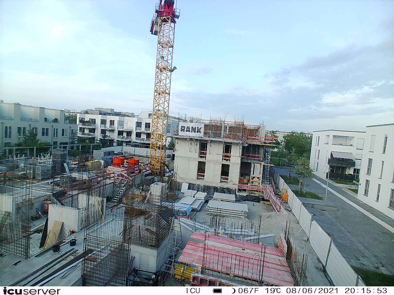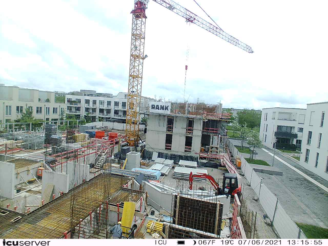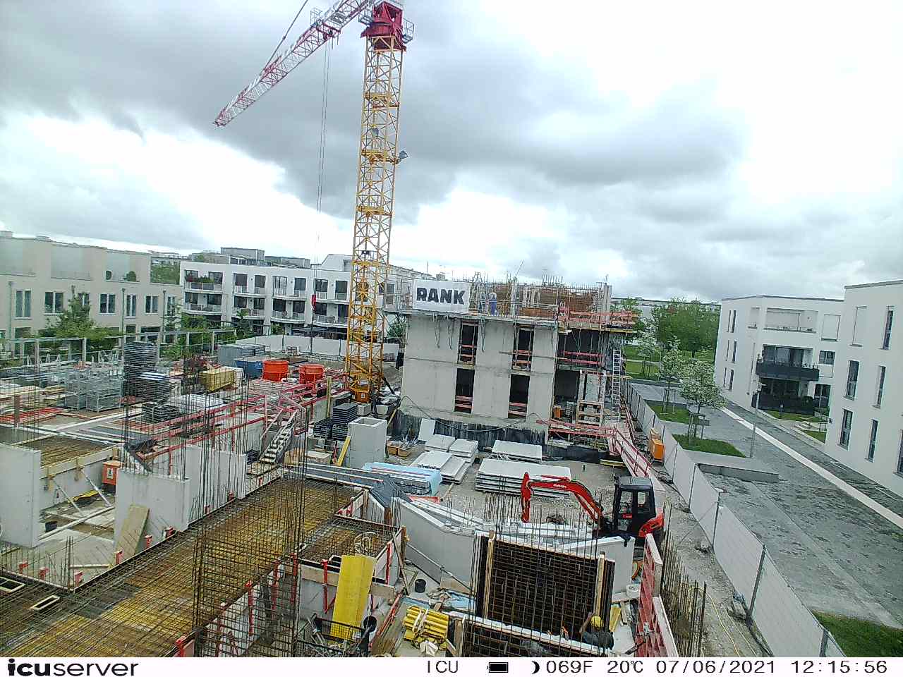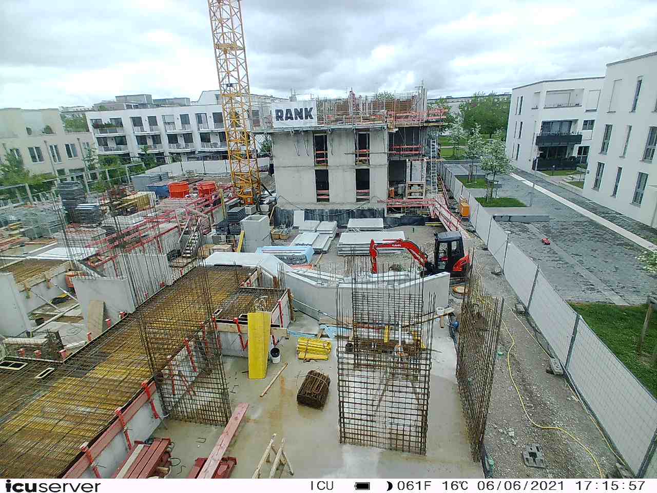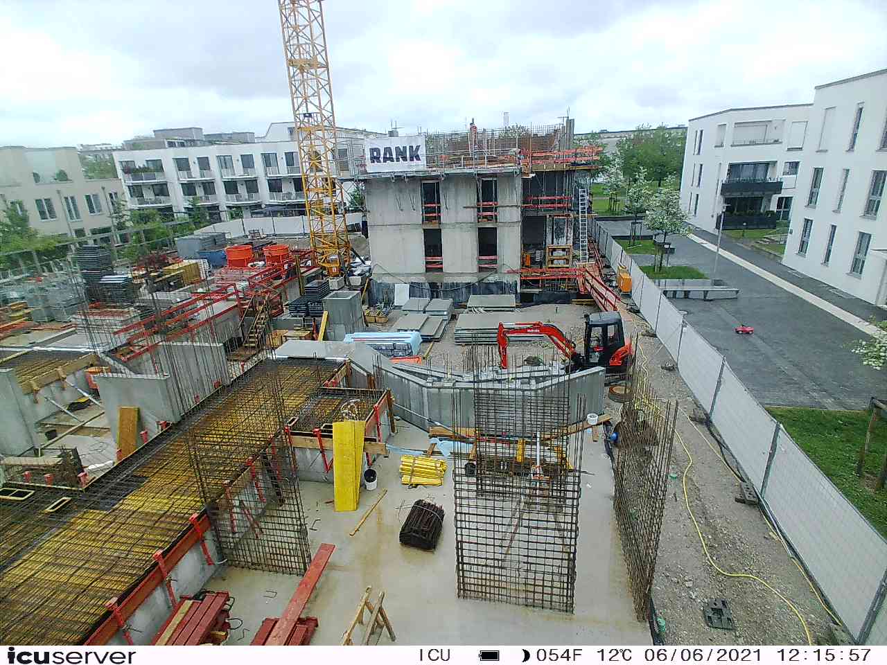 Die Kamera steht am westlichen Ende der Baustelle. Sie blickt nach Osten. Bilder: 26. Februar - 13. August 2021.