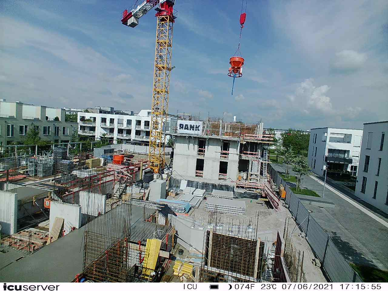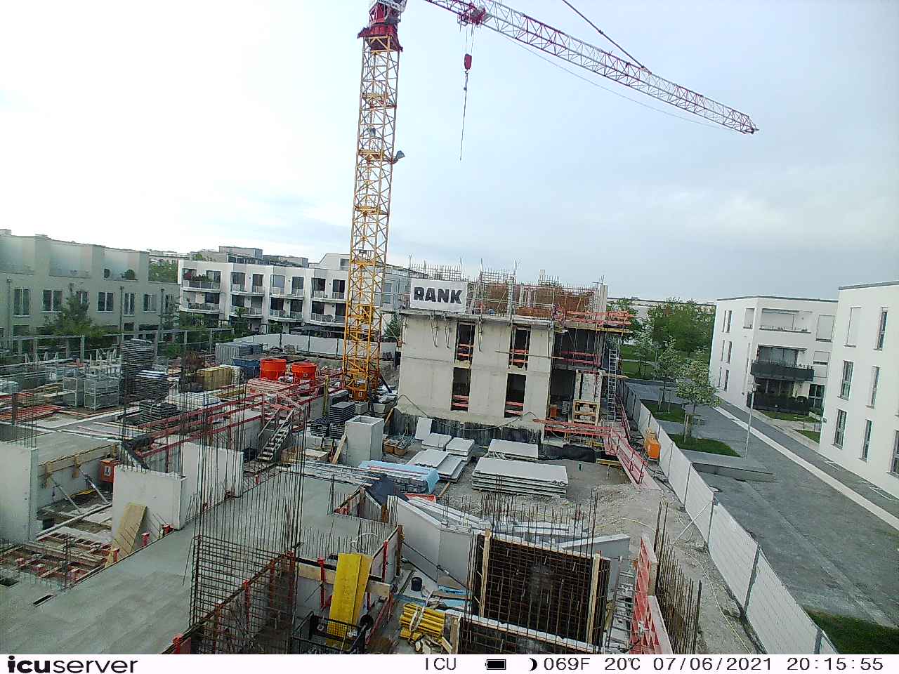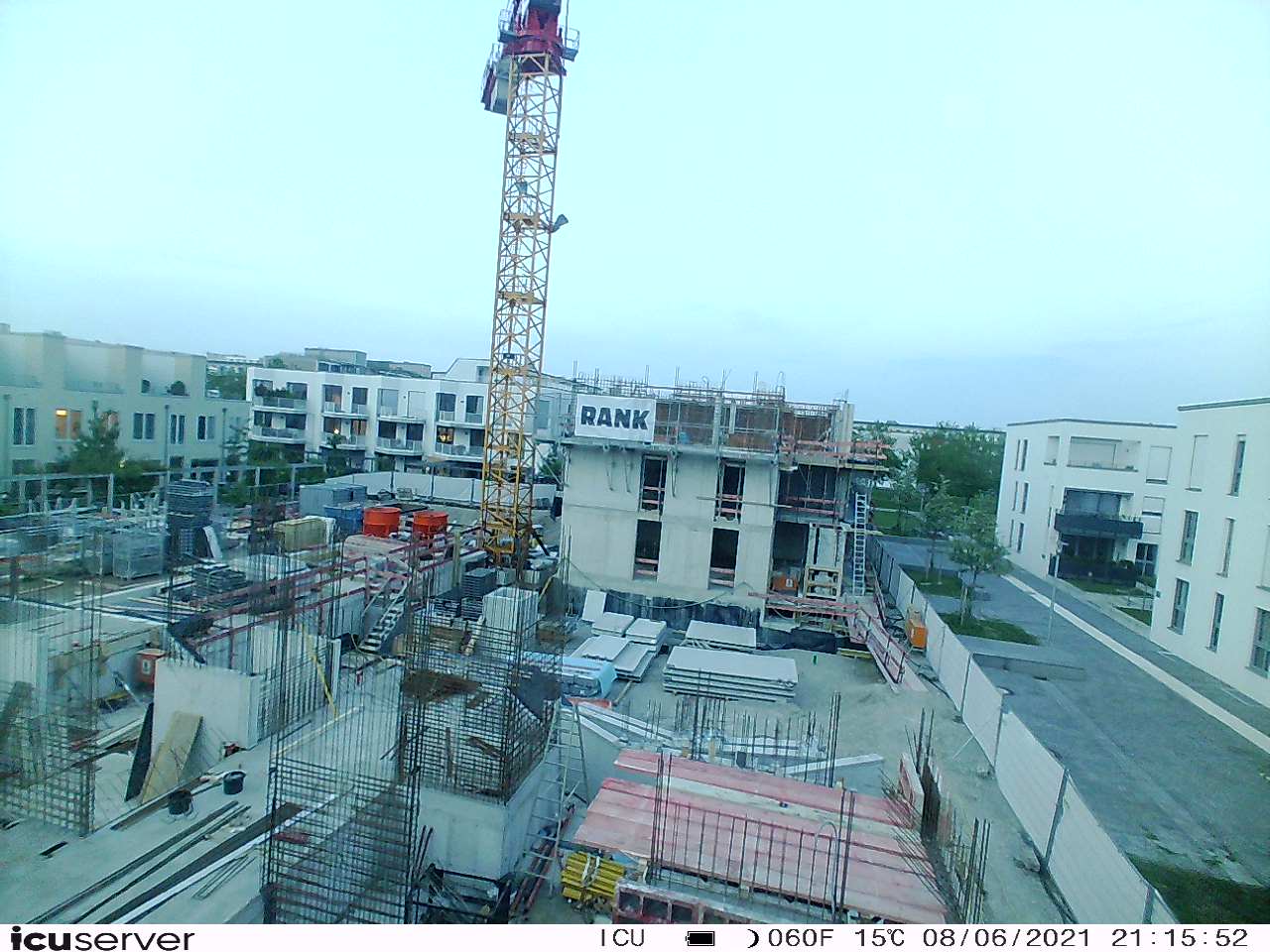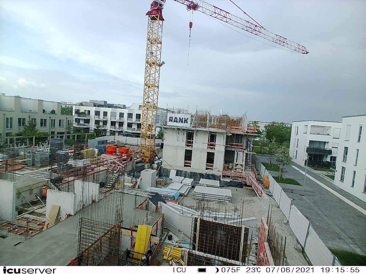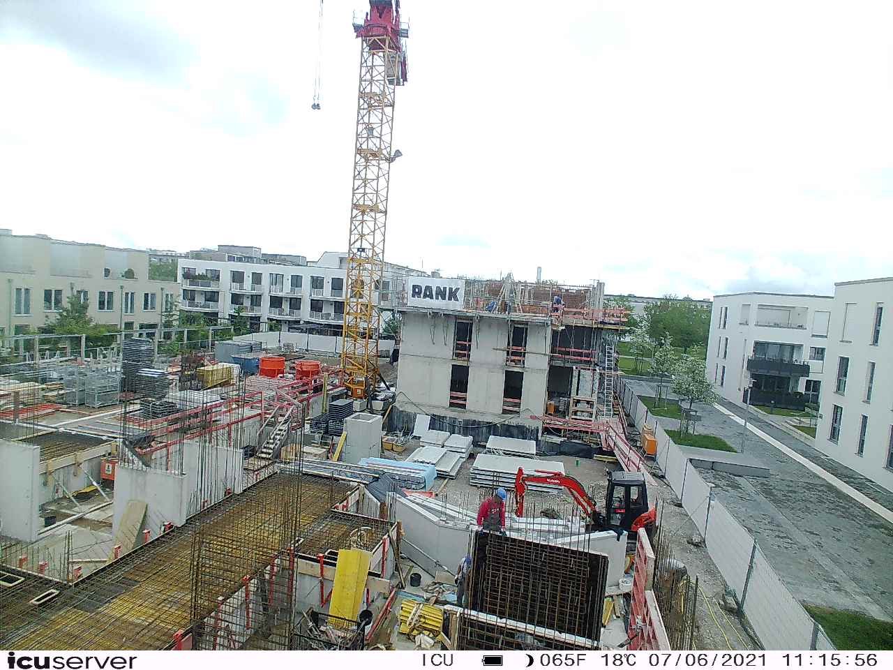 Die Kamera steht am westlichen Ende der Baustelle. Sie blickt nach Osten. Bilder: 26. Februar - 13. August 2021.