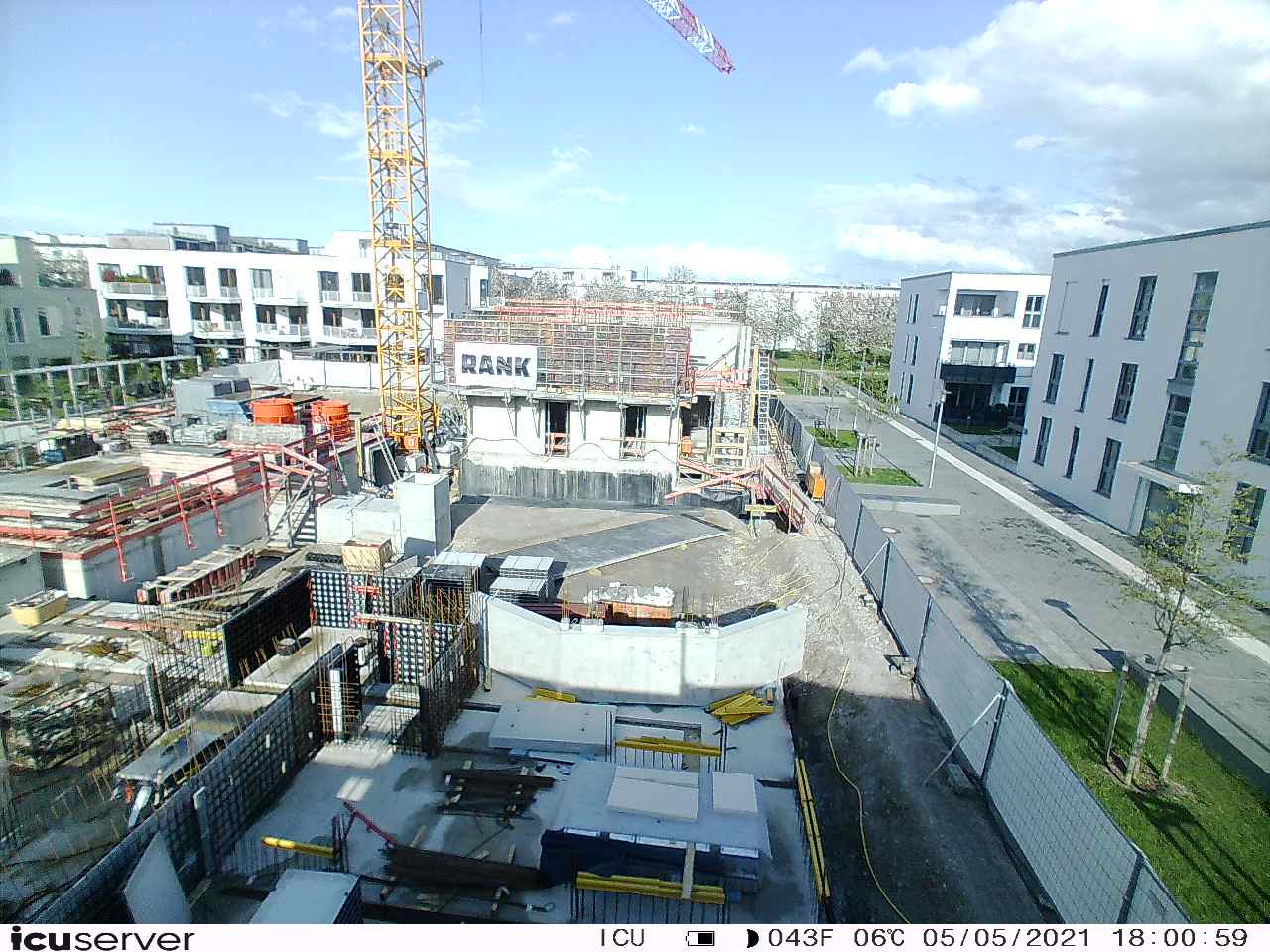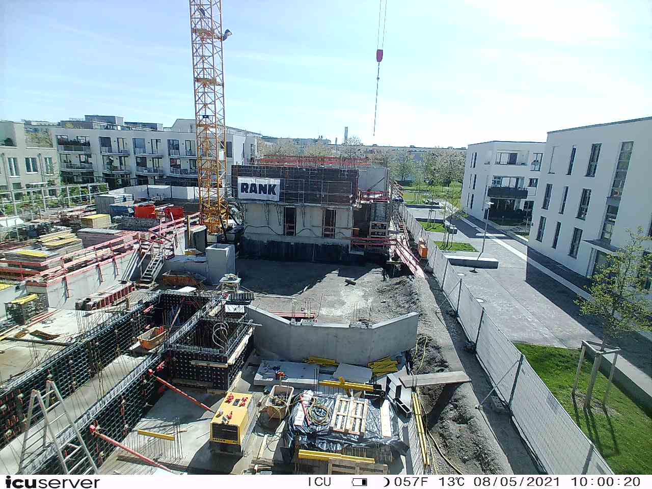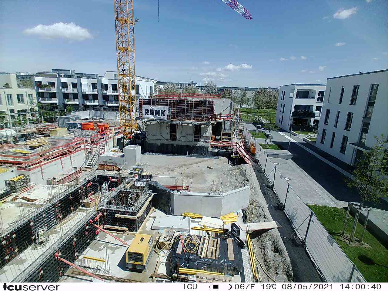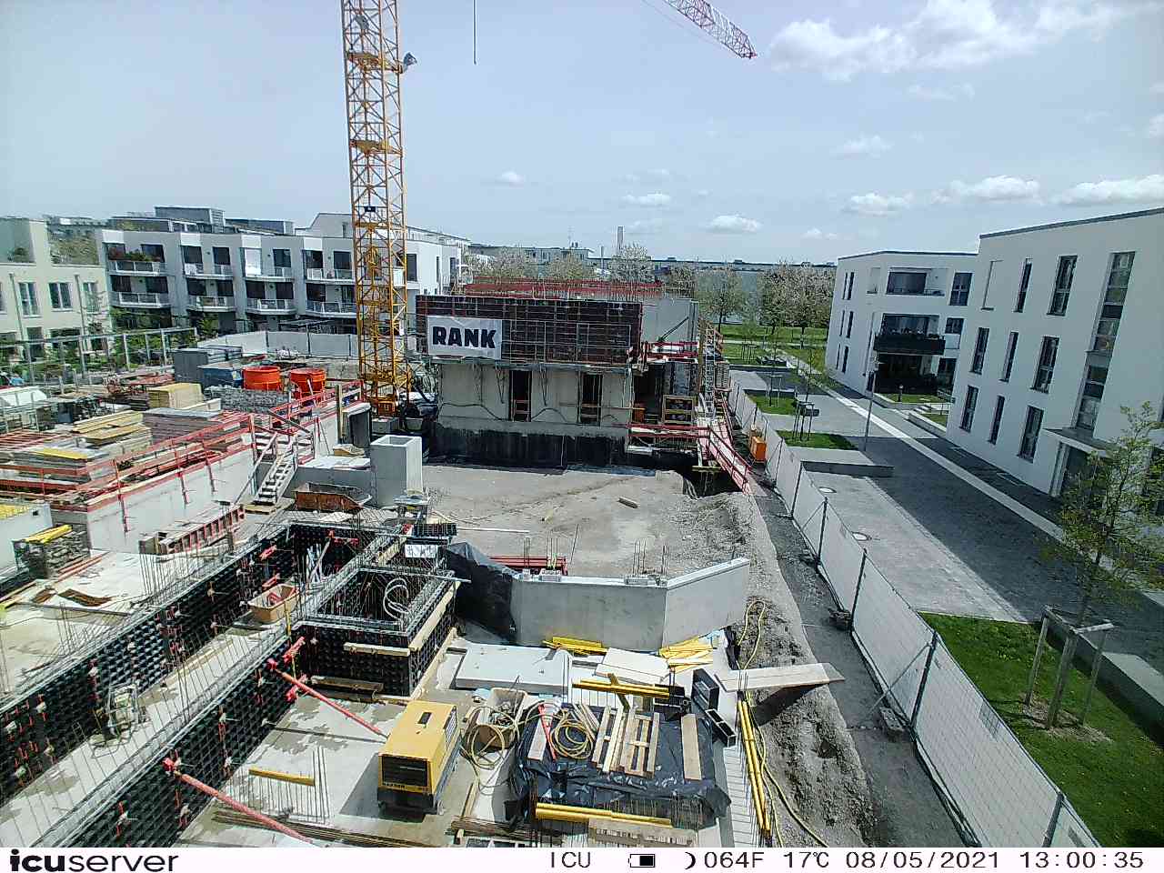 Die Kamera steht am westlichen Ende der Baustelle. Sie blickt nach Osten. Bilder: 26. Februar - 13. August 2021.
