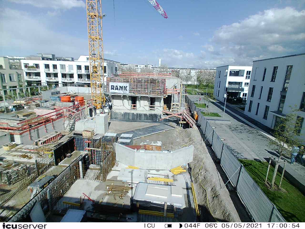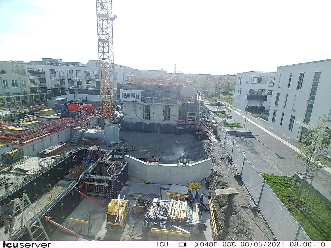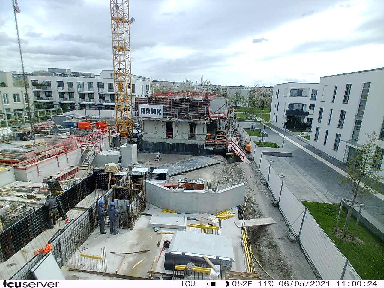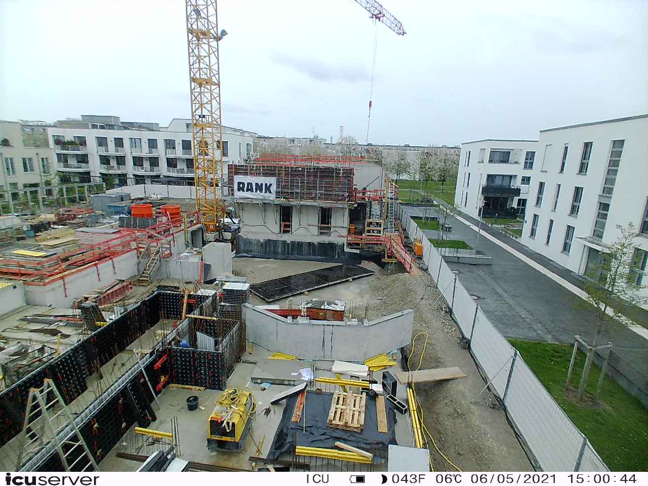 Die Kamera steht am westlichen Ende der Baustelle. Sie blickt nach Osten. Bilder: 26. Februar - 13. August 2021.