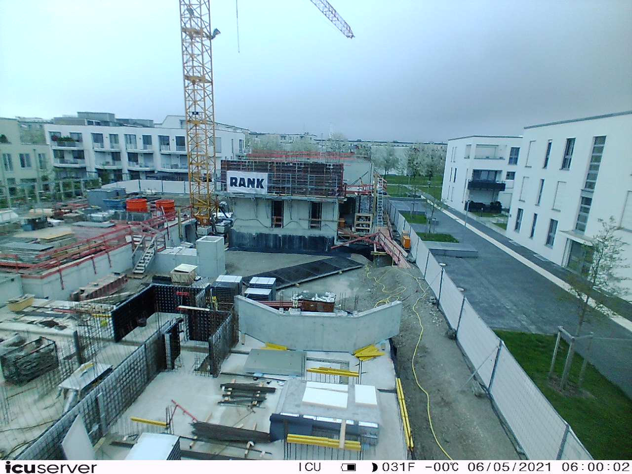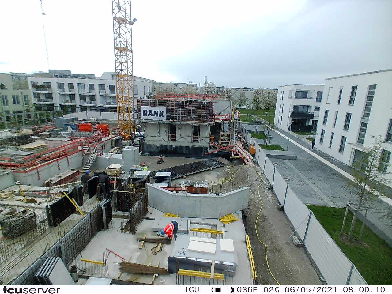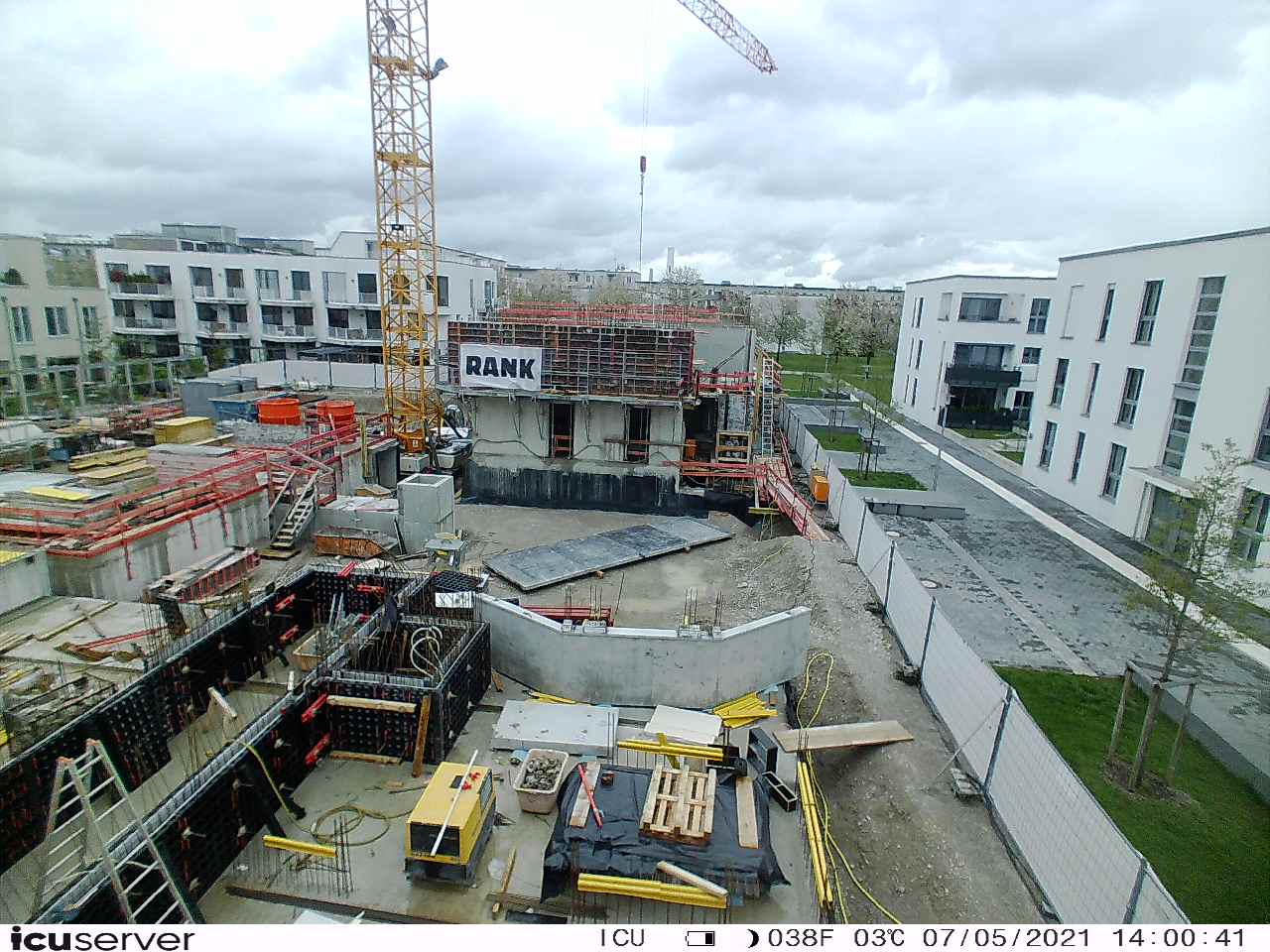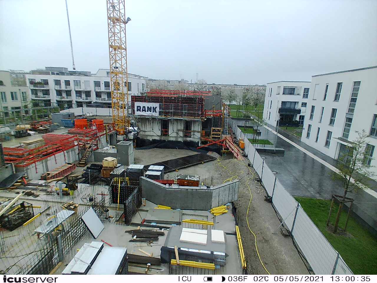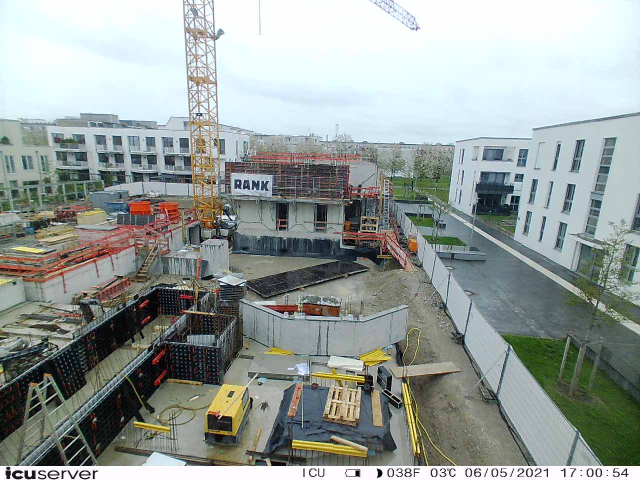 Die Kamera steht am westlichen Ende der Baustelle. Sie blickt nach Osten. Bilder: 26. Februar - 13. August 2021.