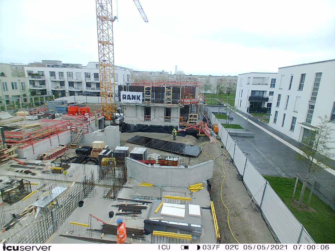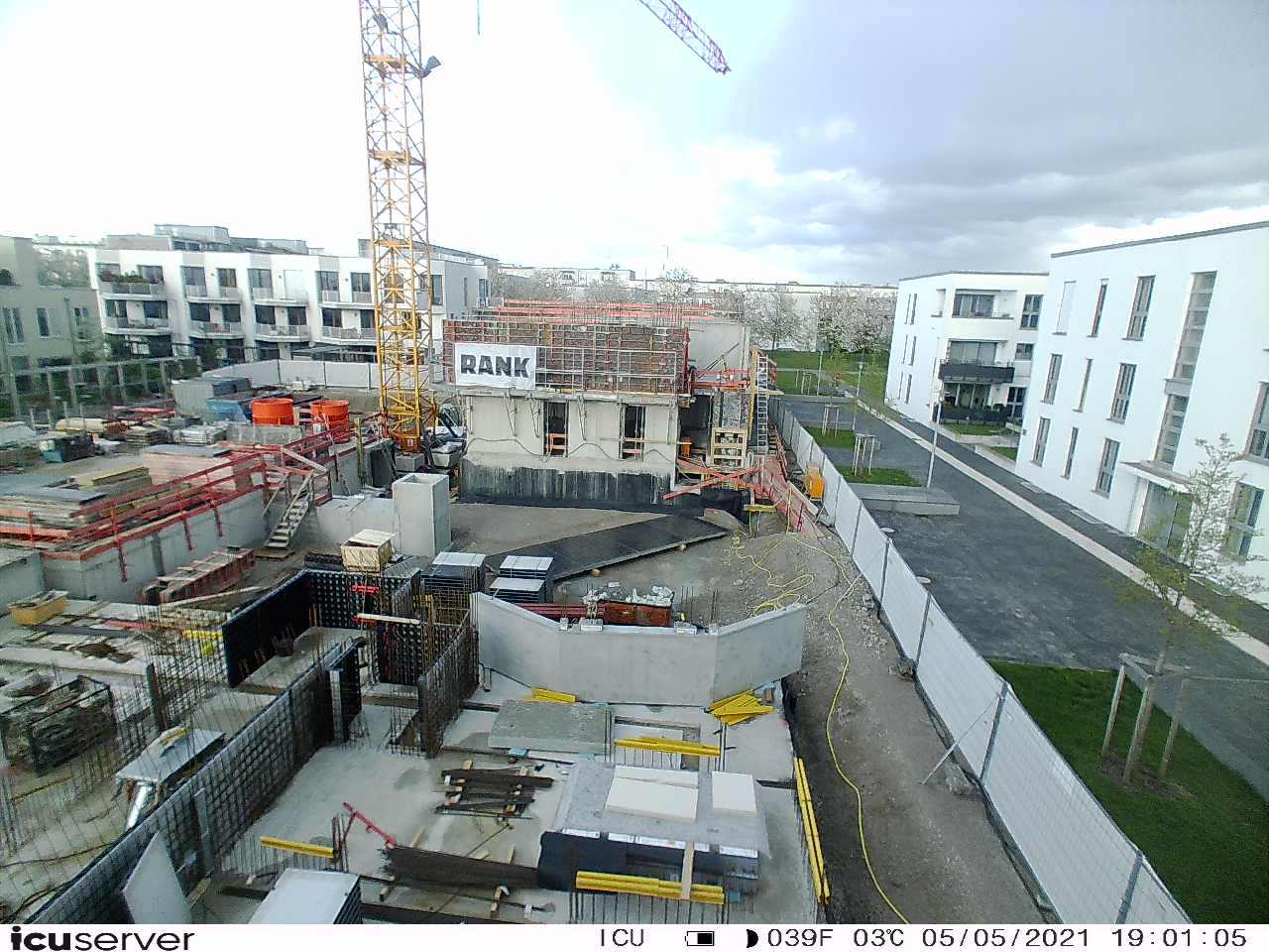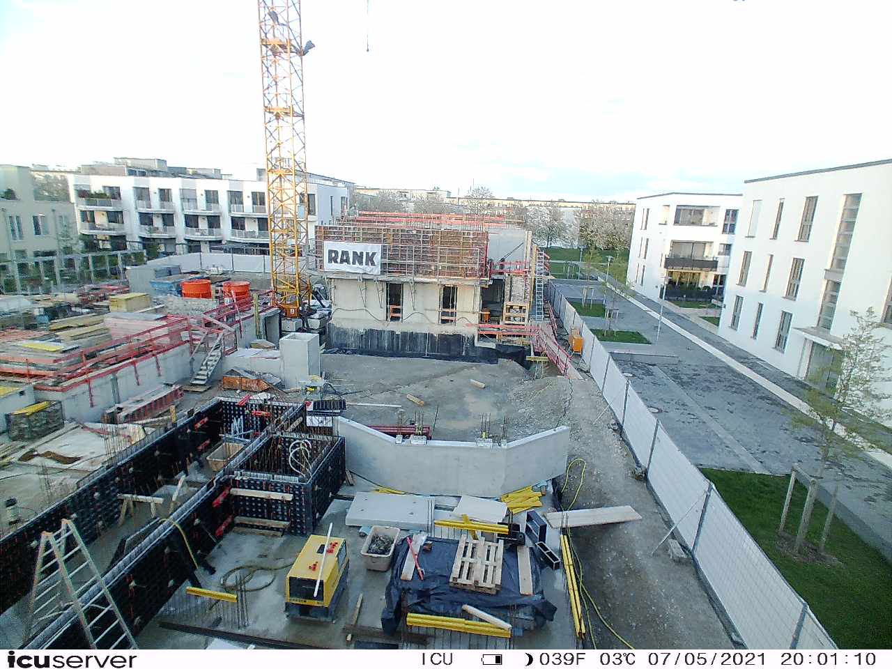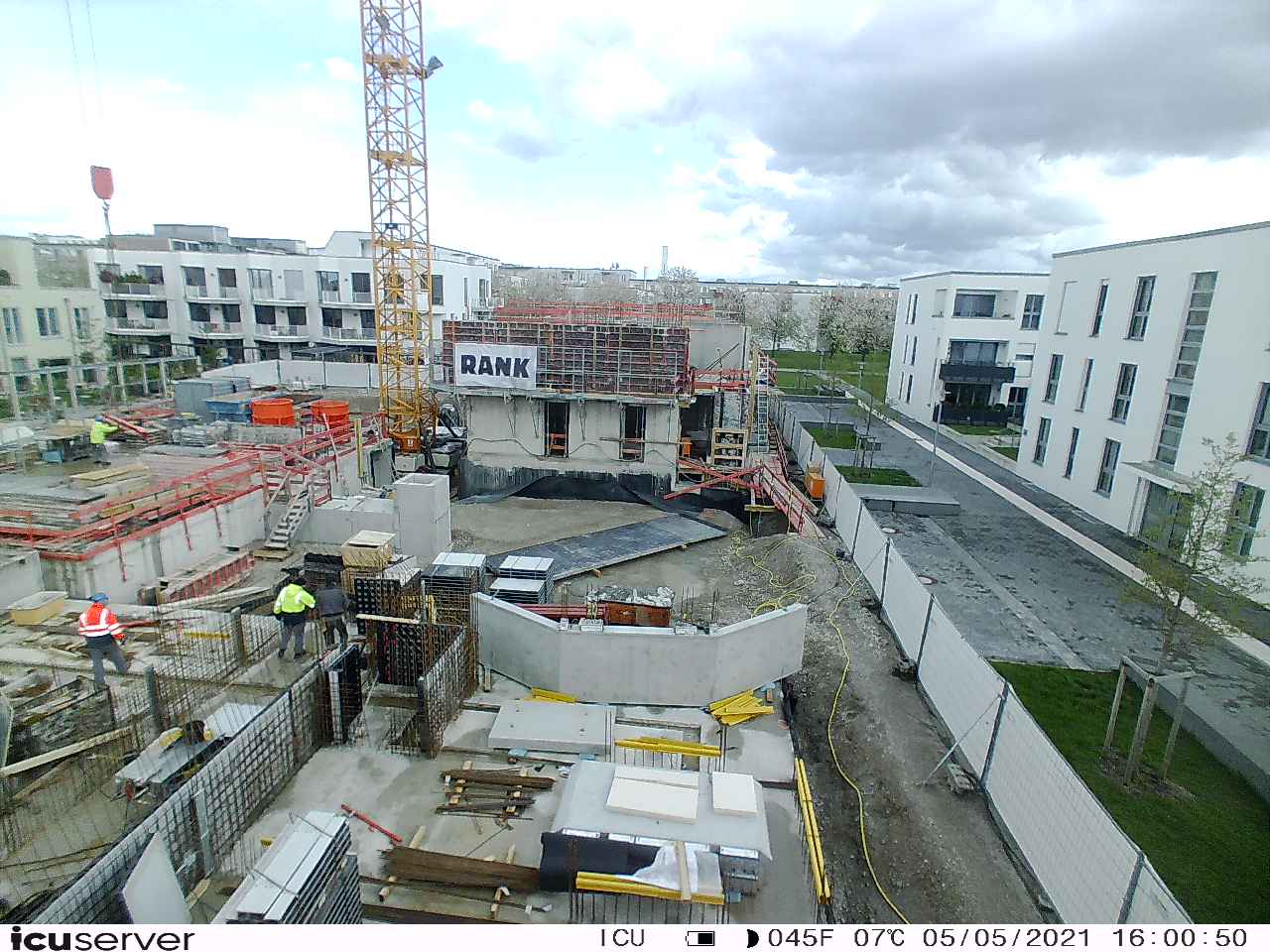 Die Kamera steht am westlichen Ende der Baustelle. Sie blickt nach Osten. Bilder: 26. Februar - 13. August 2021.