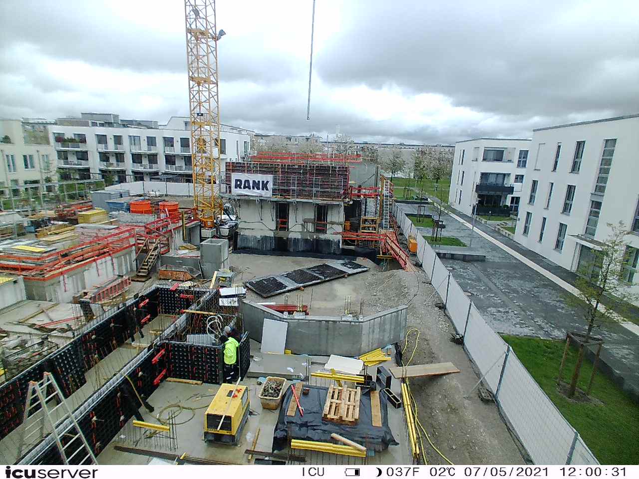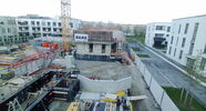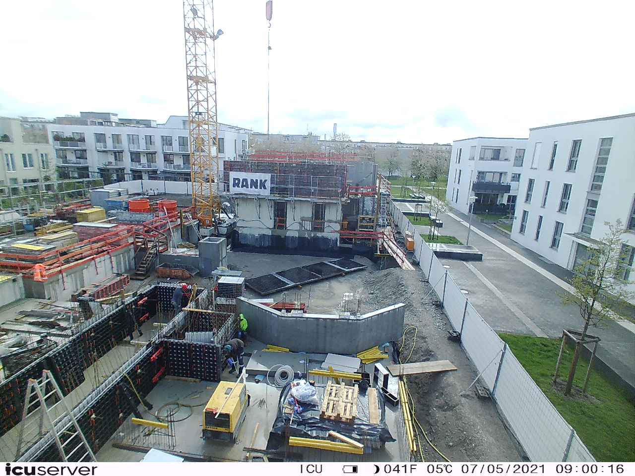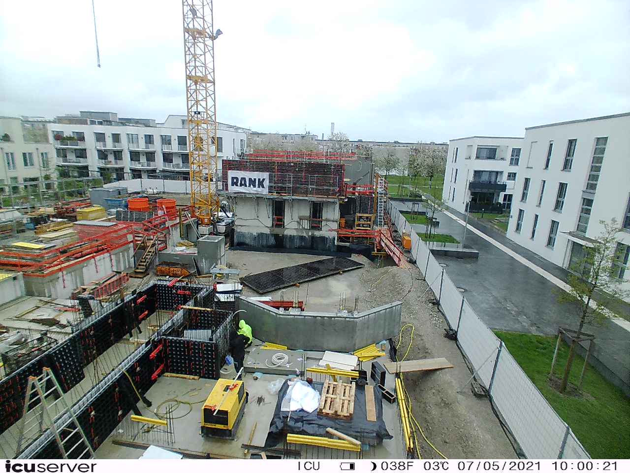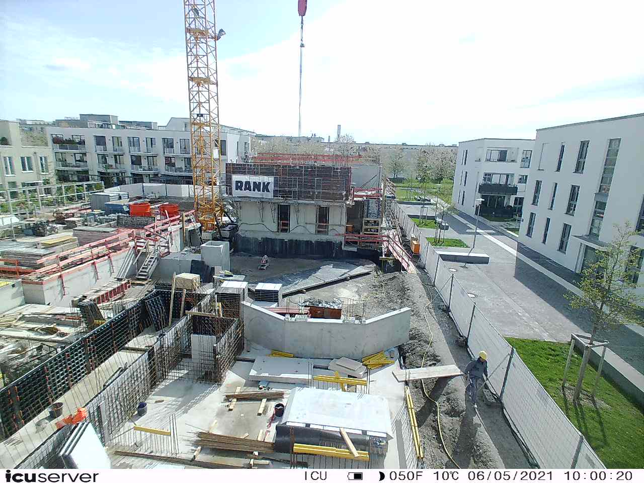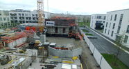 Die Kamera steht am westlichen Ende der Baustelle. Sie blickt nach Osten. Bilder: 26. Februar - 13. August 2021.