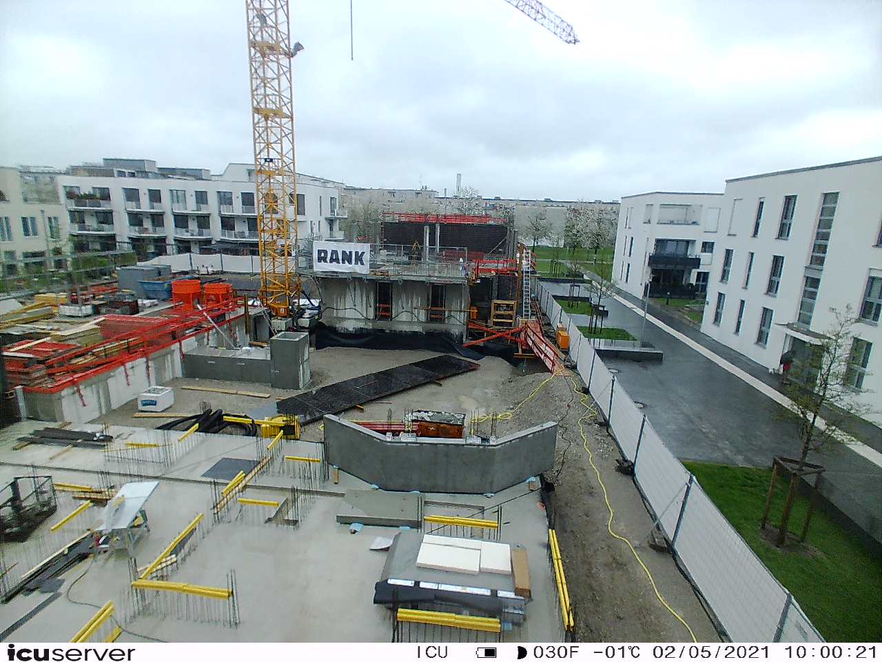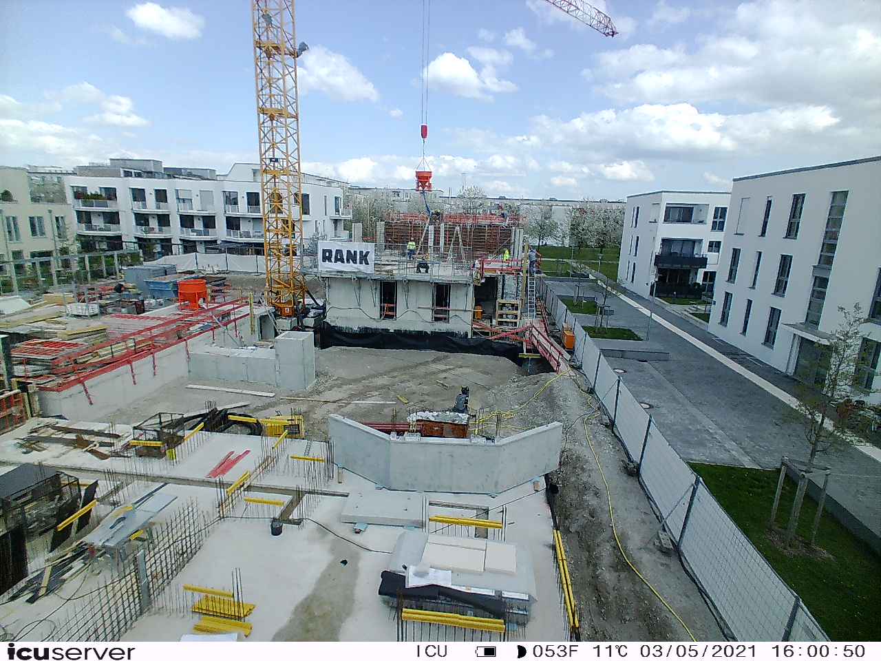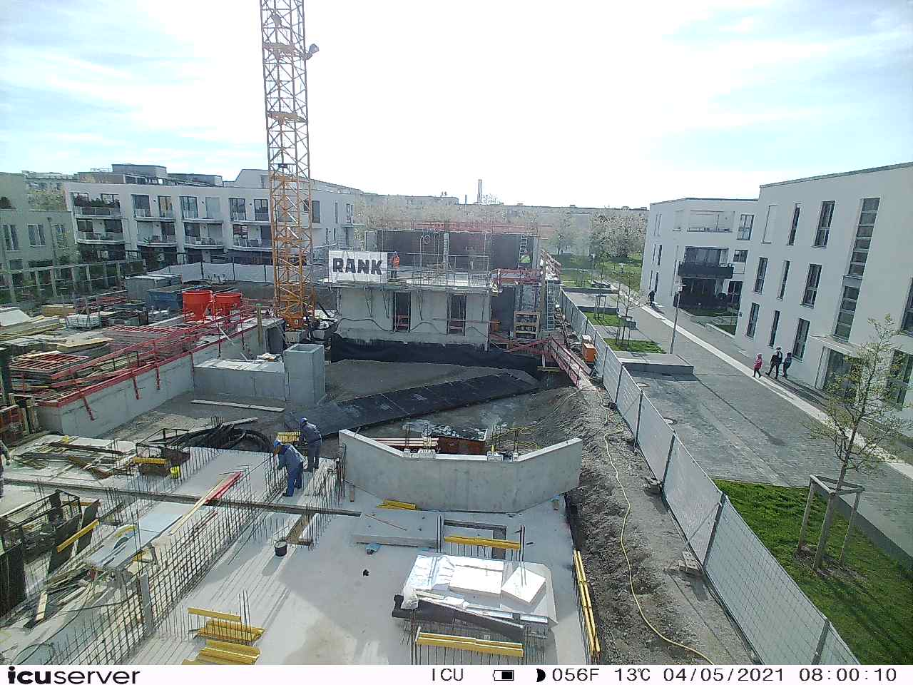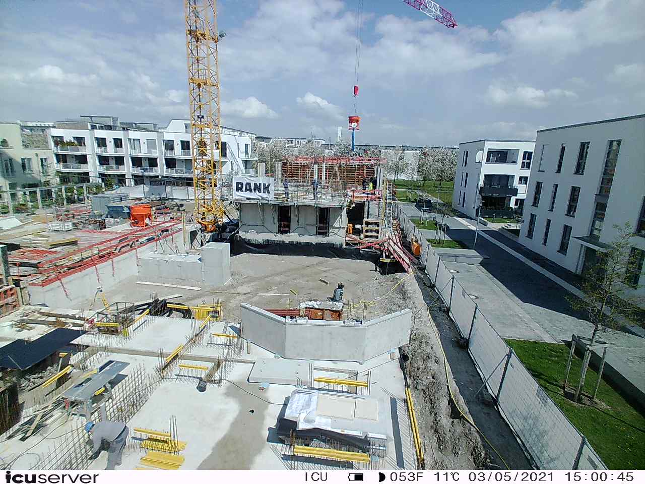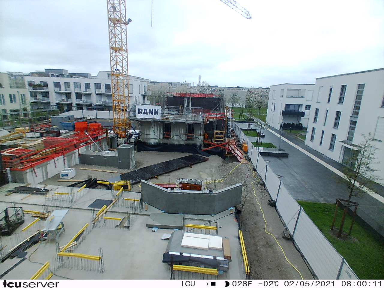 Die Kamera steht am westlichen Ende der Baustelle. Sie blickt nach Osten. Bilder: 26. Februar - 13. August 2021.