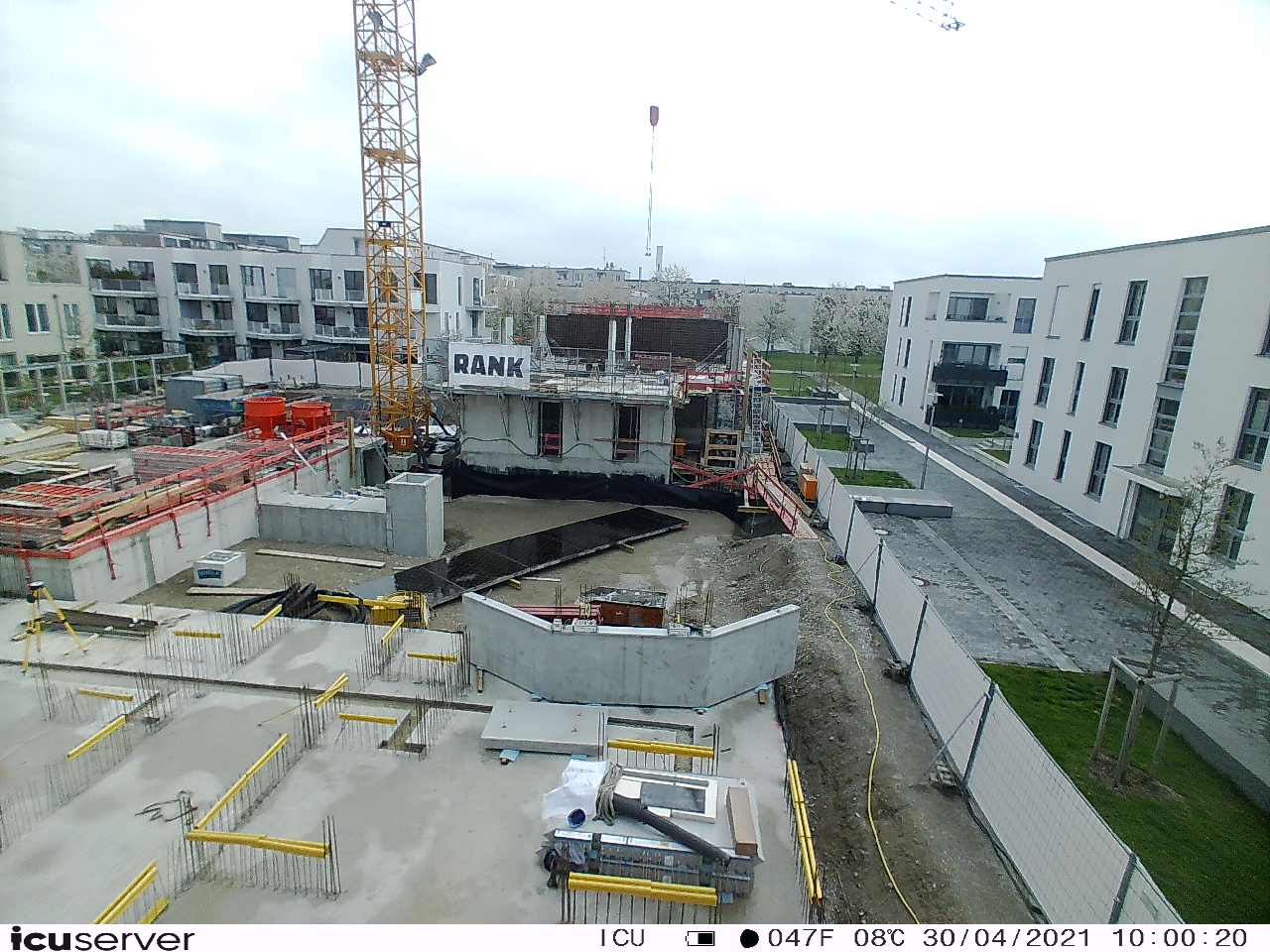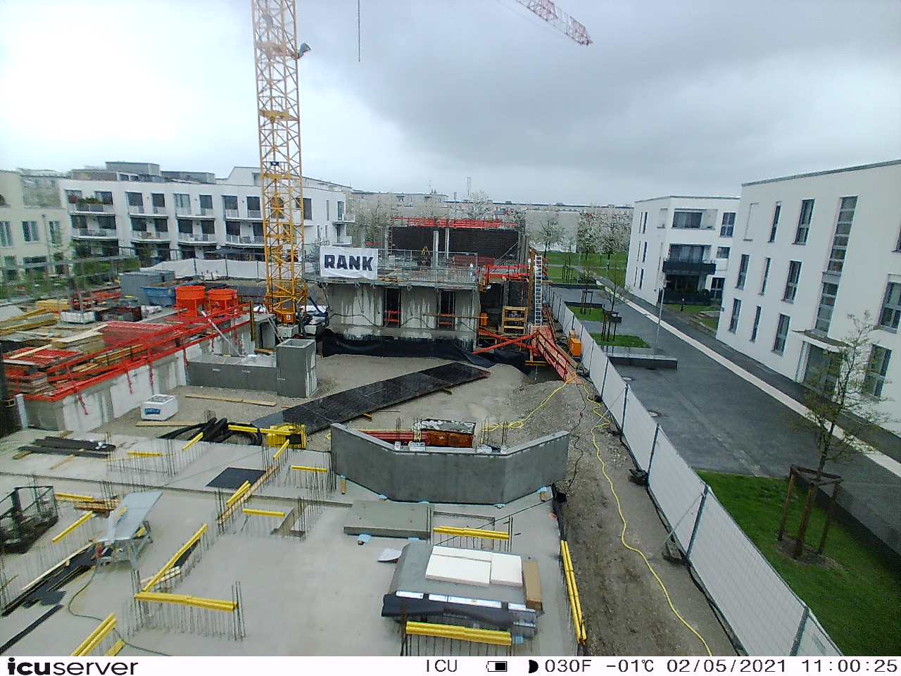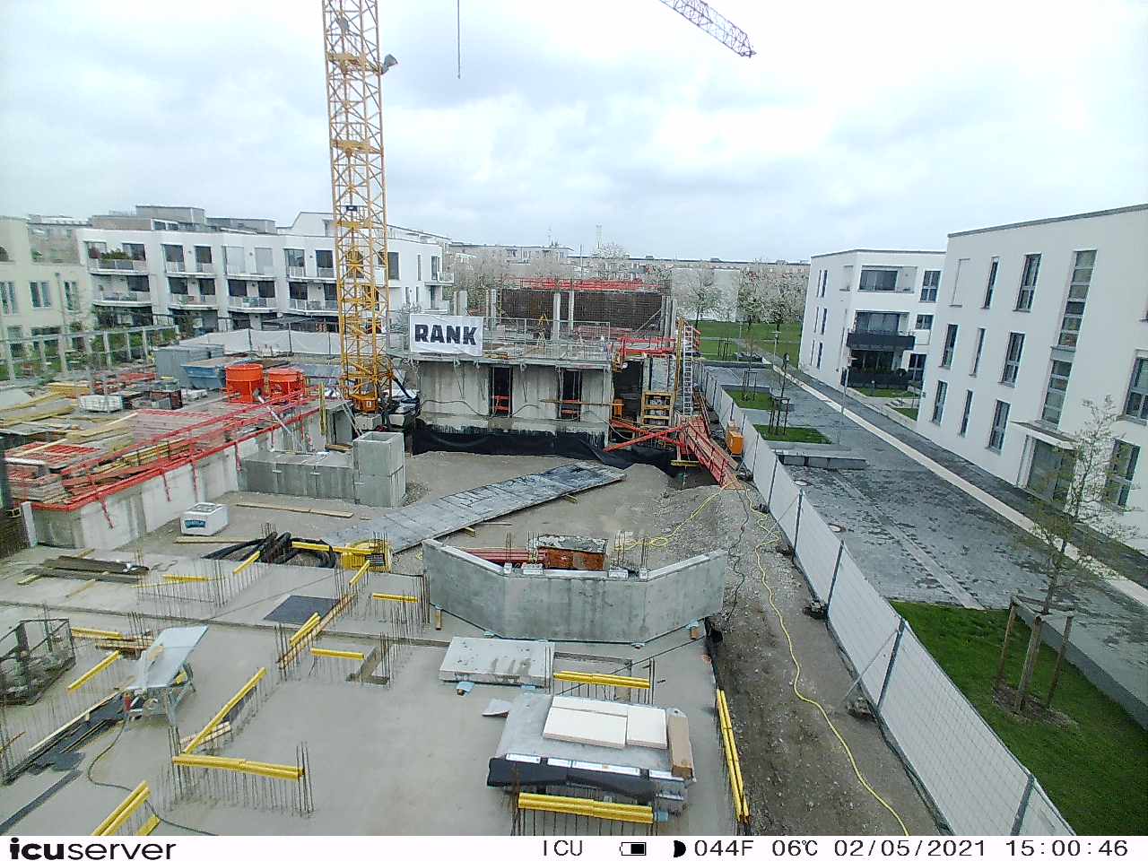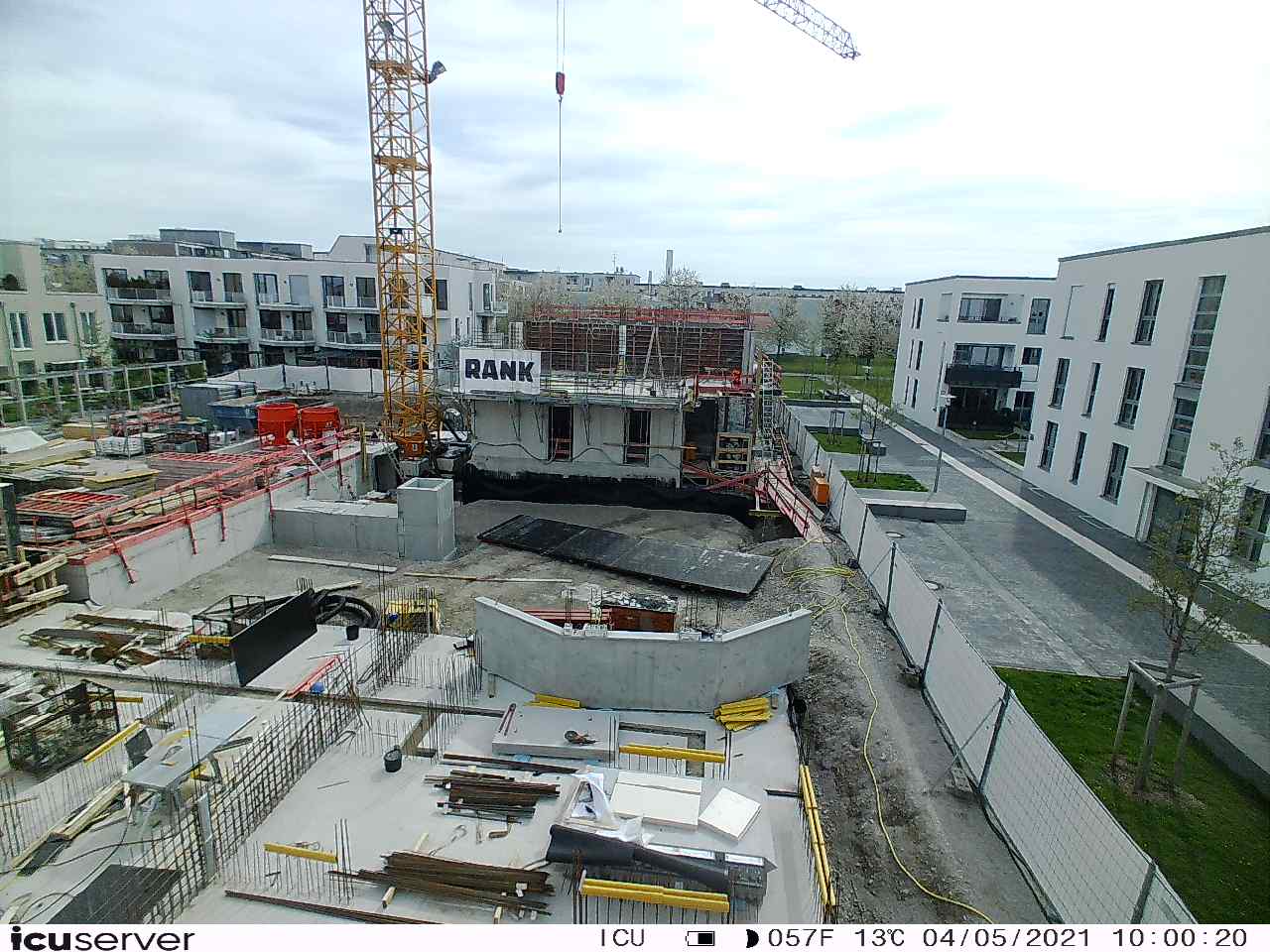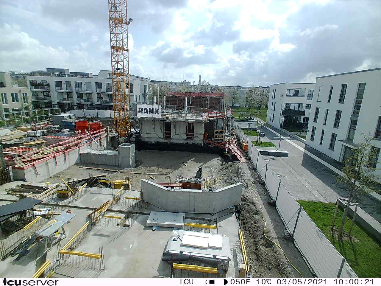 Die Kamera steht am westlichen Ende der Baustelle. Sie blickt nach Osten. Bilder: 26. Februar - 13. August 2021.