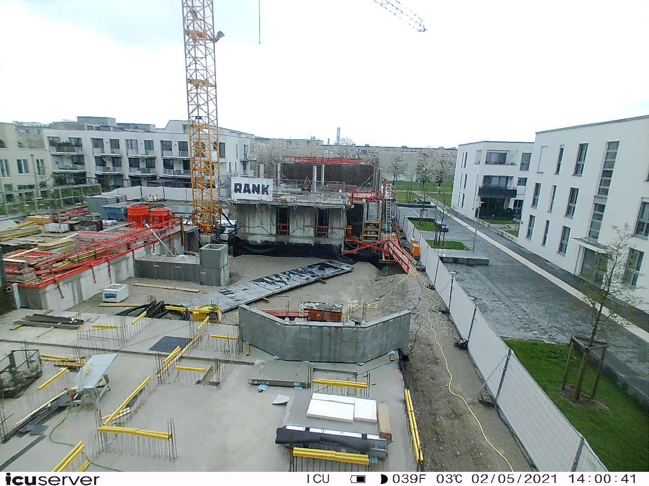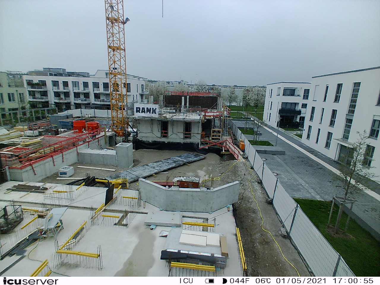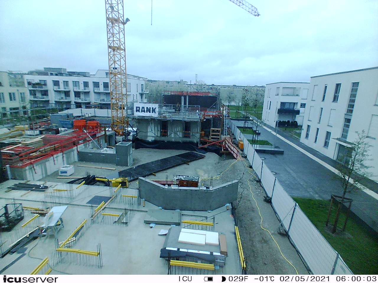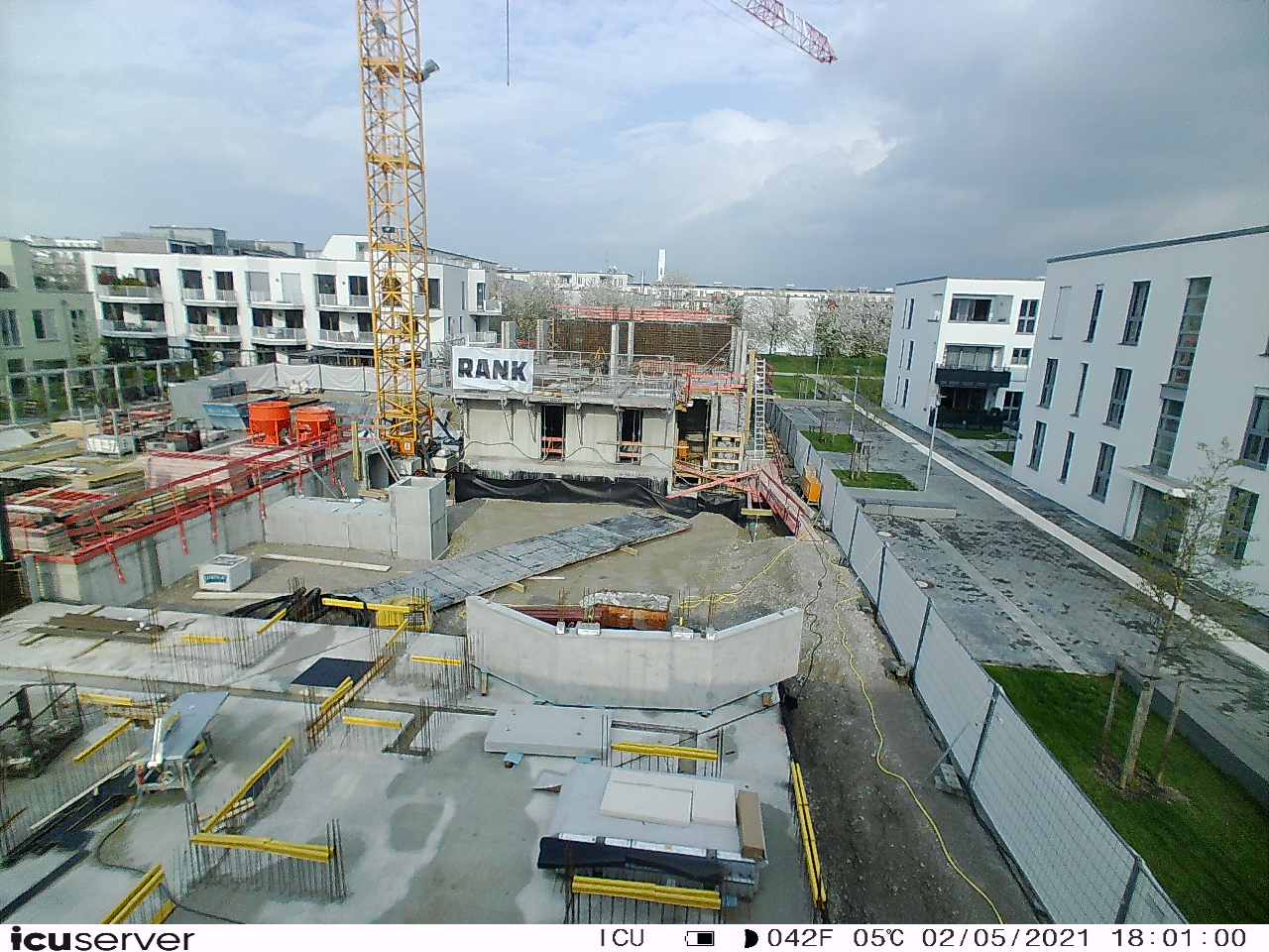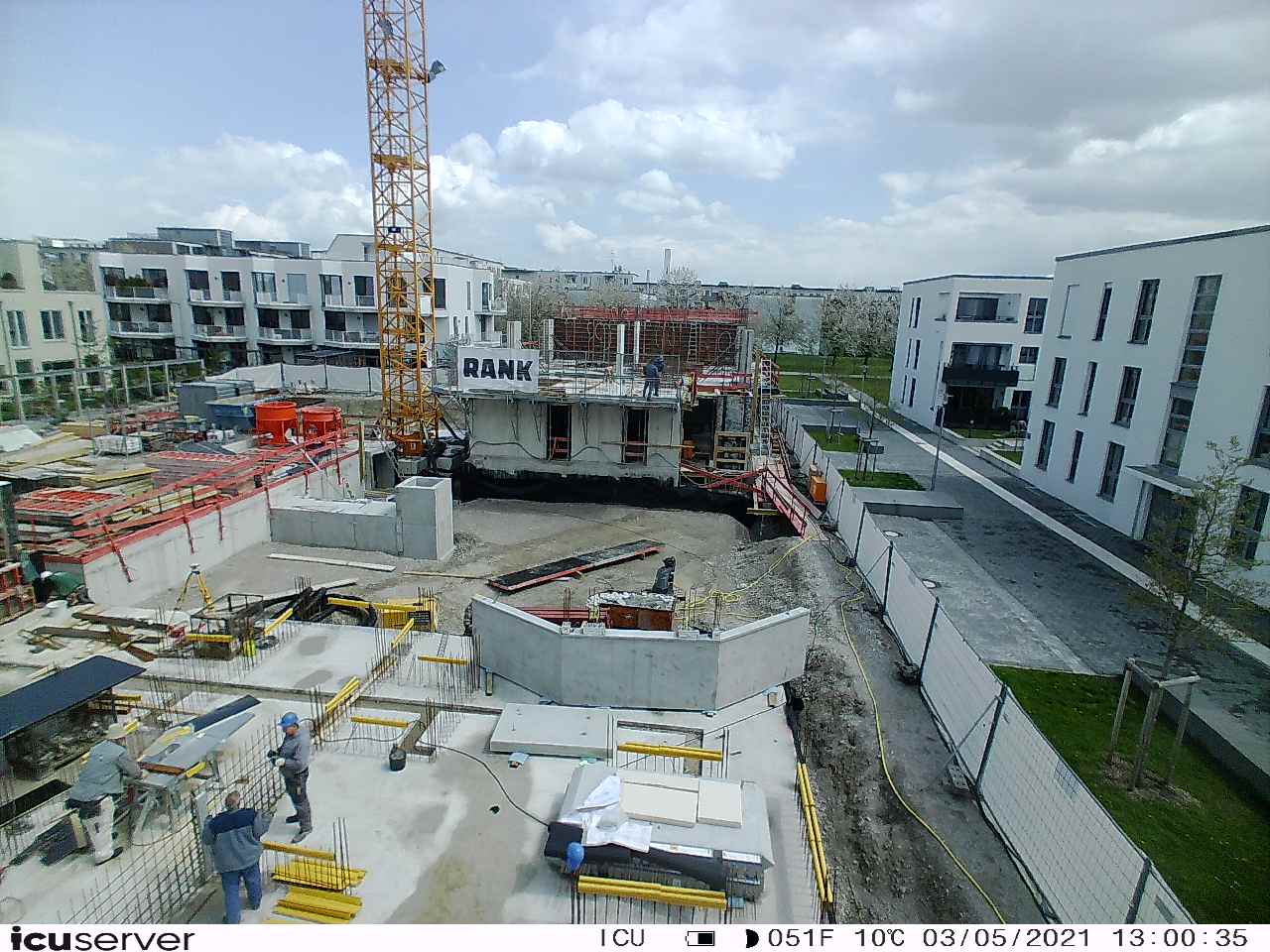 Die Kamera steht am westlichen Ende der Baustelle. Sie blickt nach Osten. Bilder: 26. Februar - 13. August 2021.