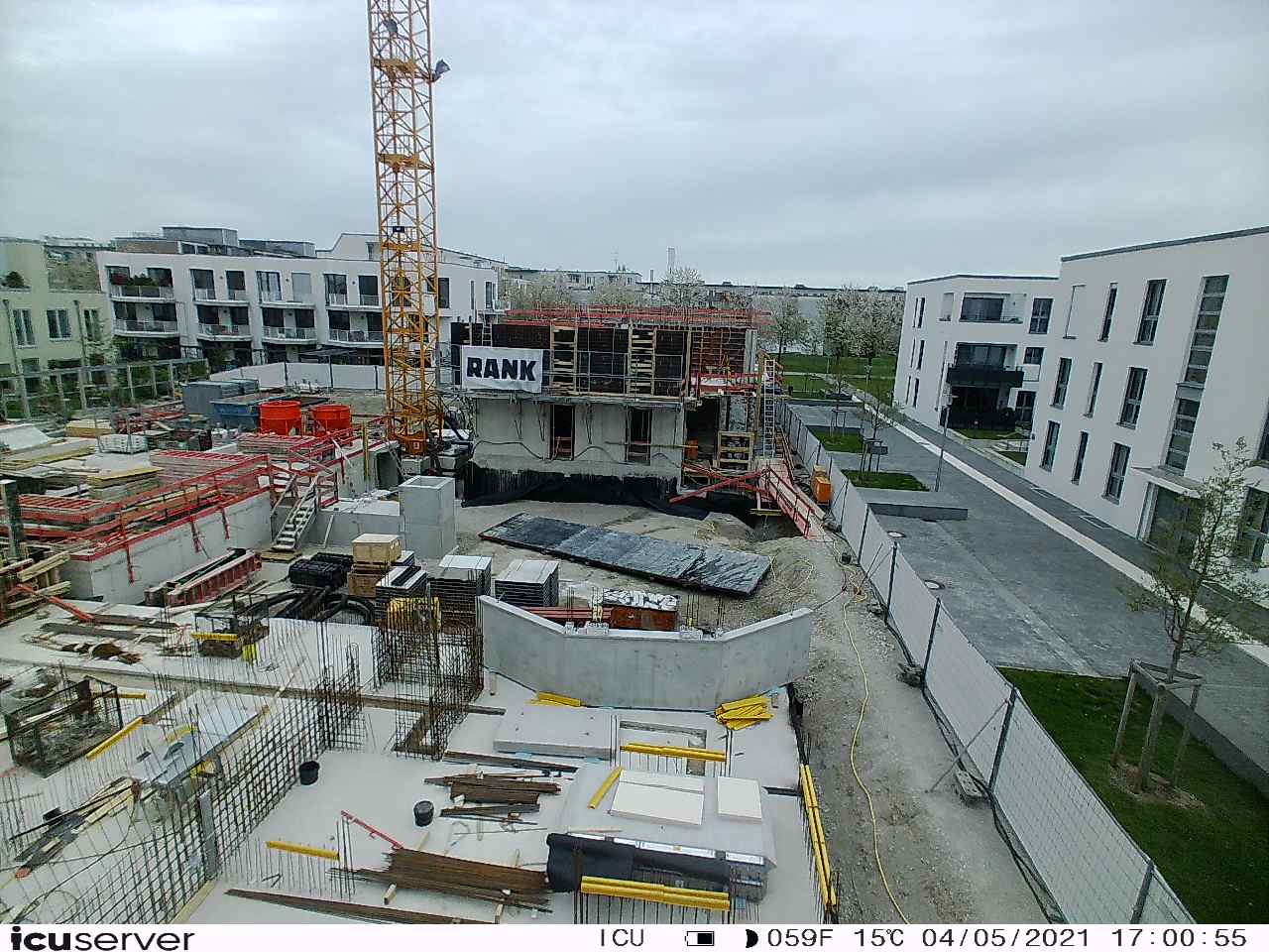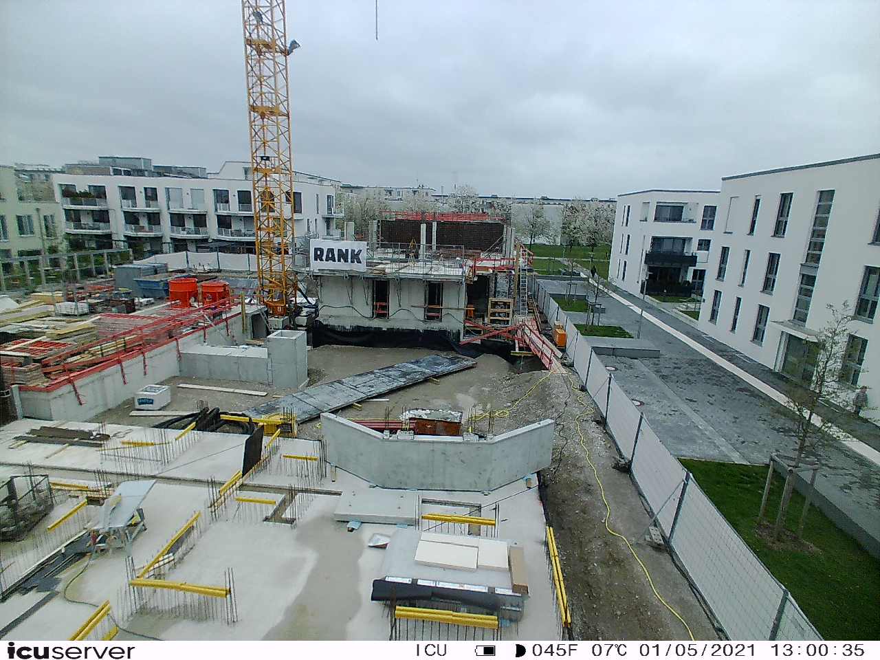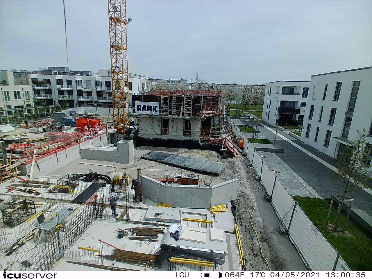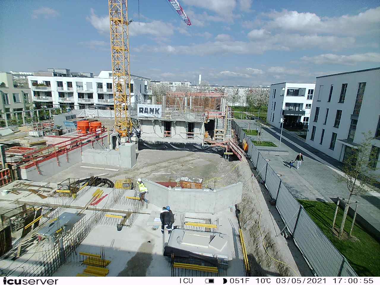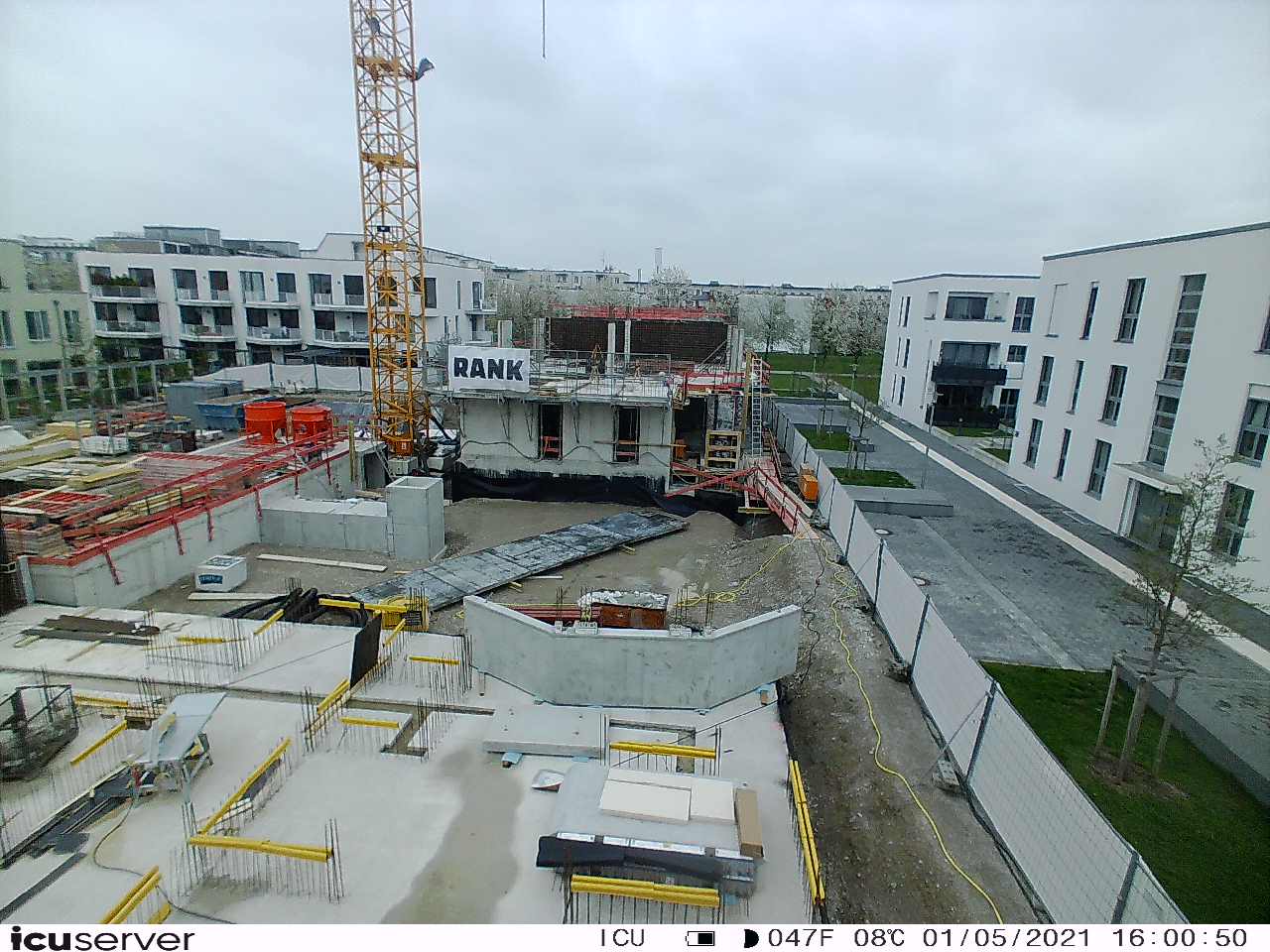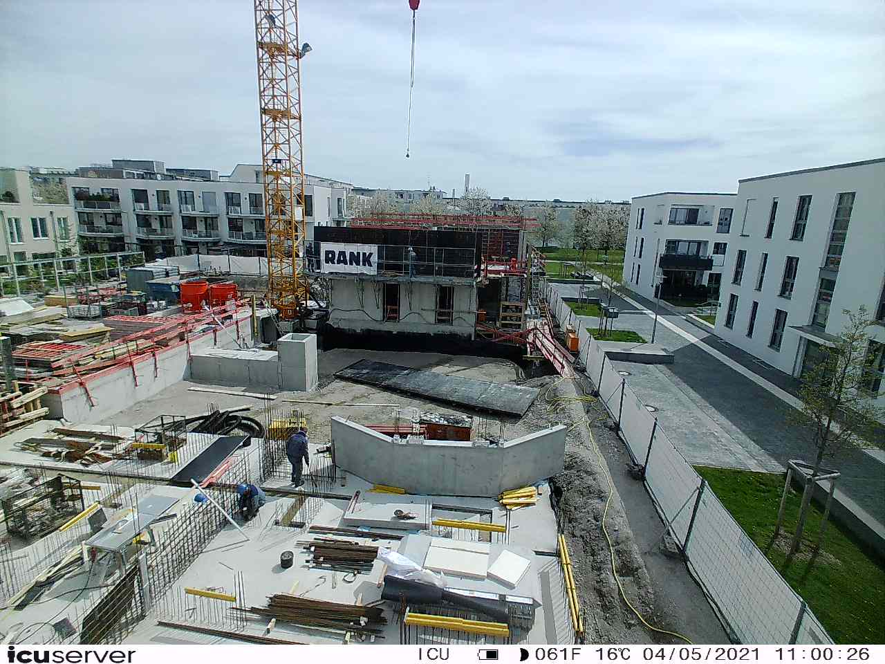 Die Kamera steht am westlichen Ende der Baustelle. Sie blickt nach Osten. Bilder: 26. Februar - 13. August 2021.