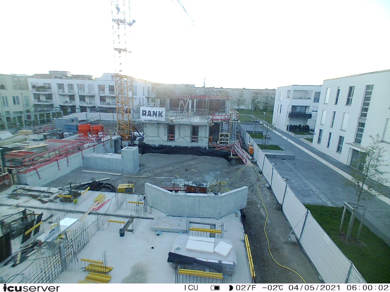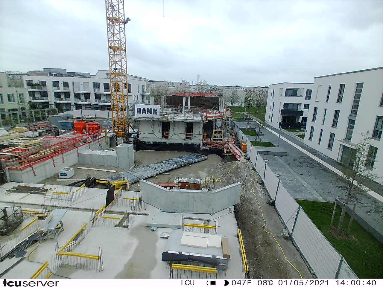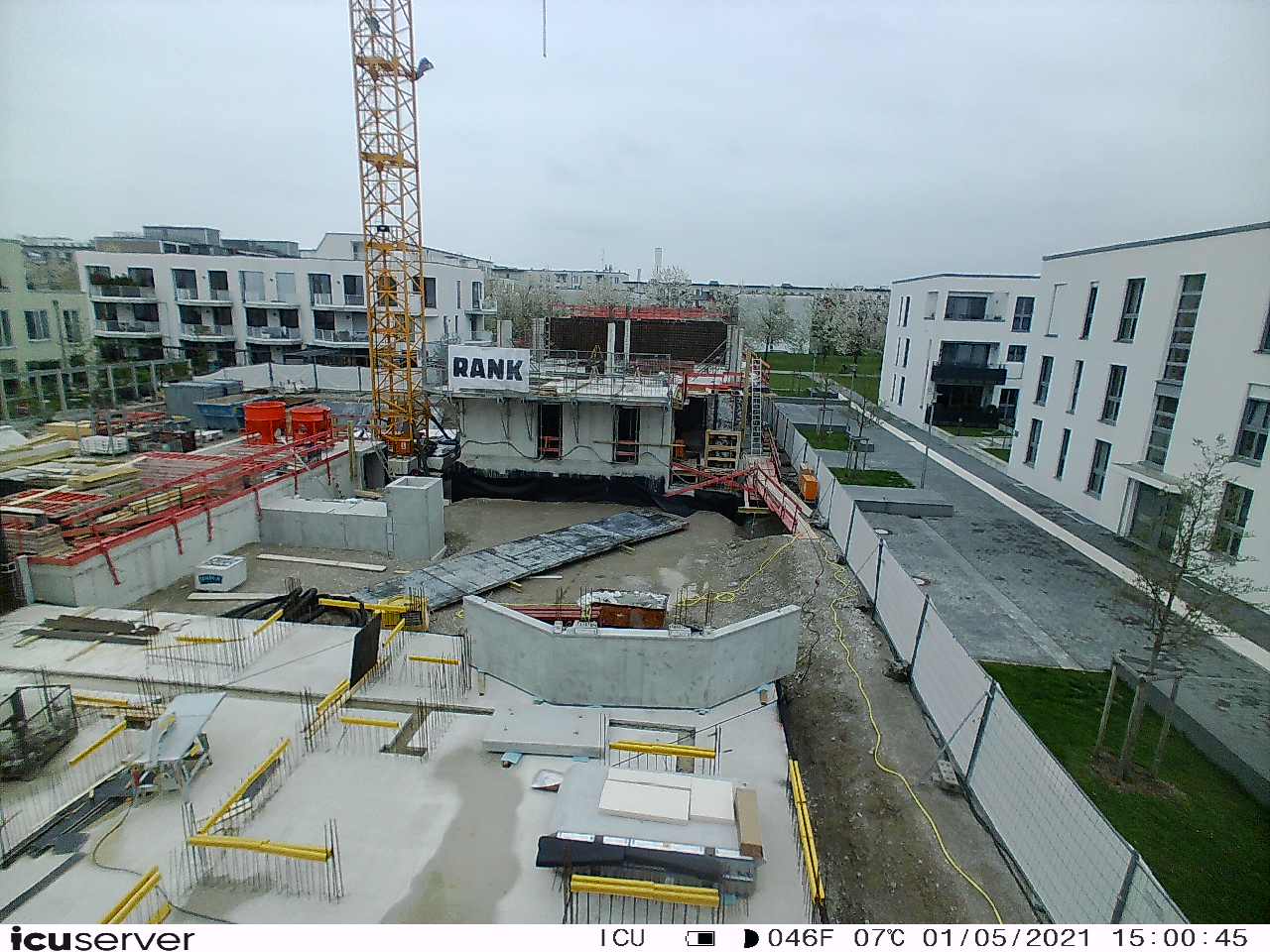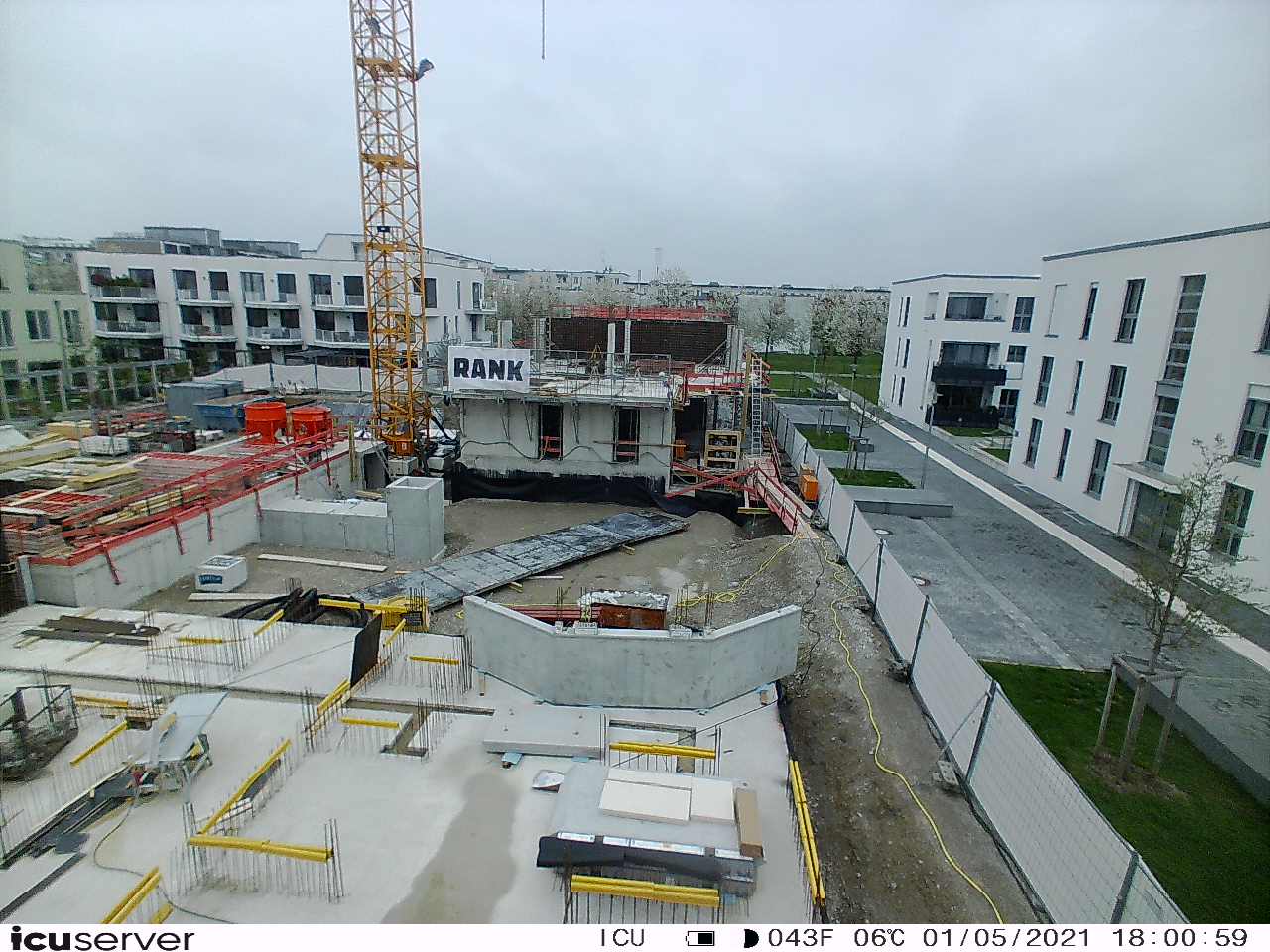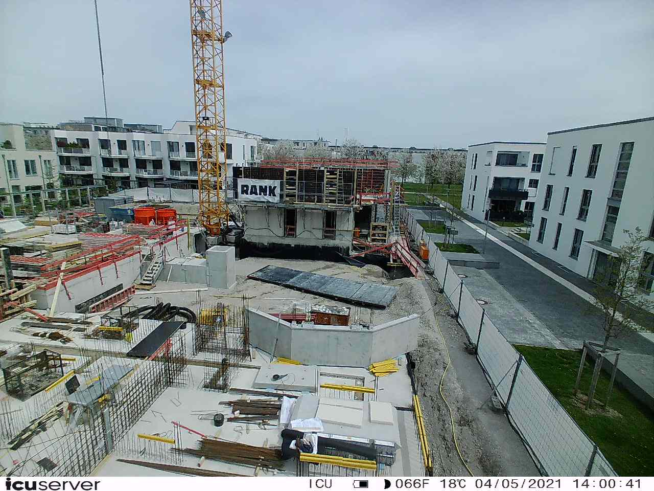 Die Kamera steht am westlichen Ende der Baustelle. Sie blickt nach Osten. Bilder: 26. Februar - 13. August 2021.