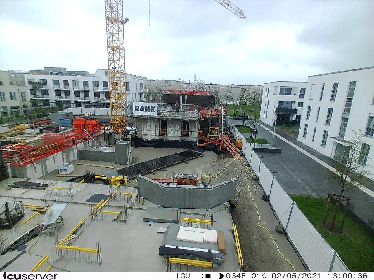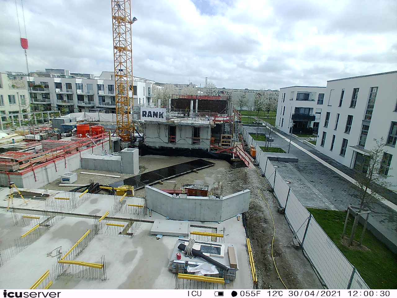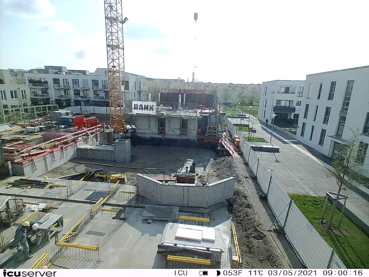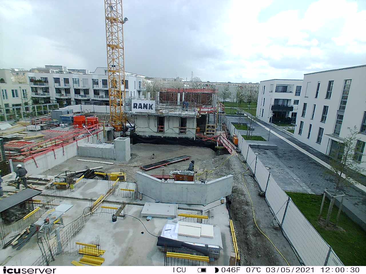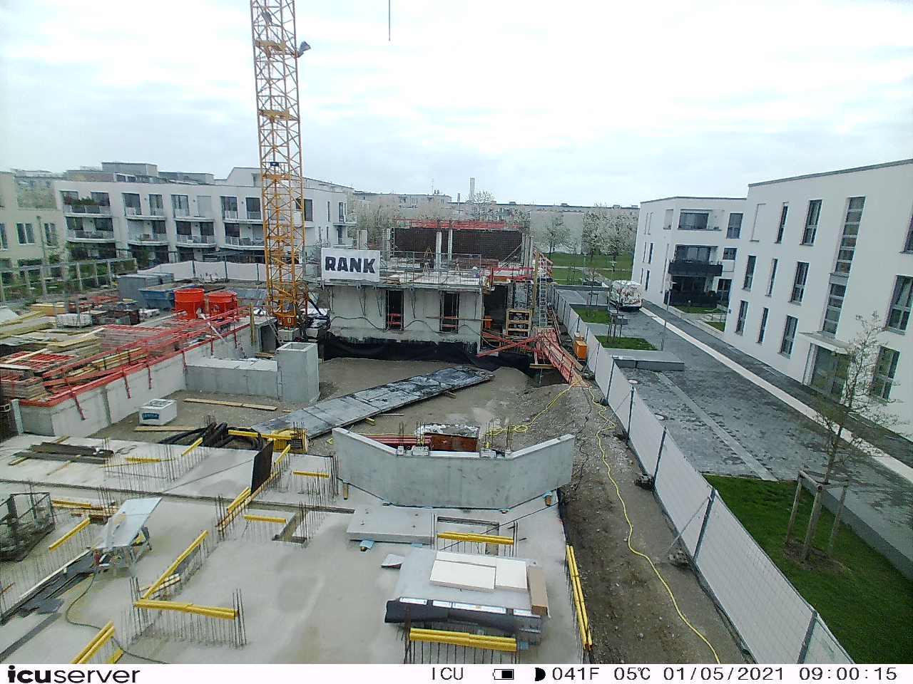 Die Kamera steht am westlichen Ende der Baustelle. Sie blickt nach Osten. Bilder: 26. Februar - 13. August 2021.