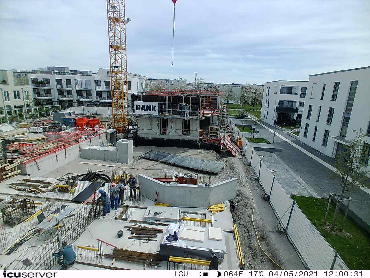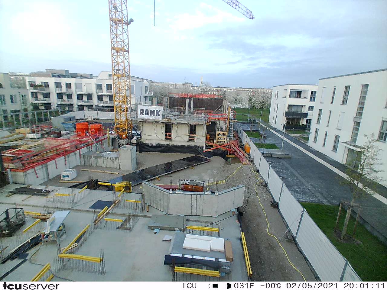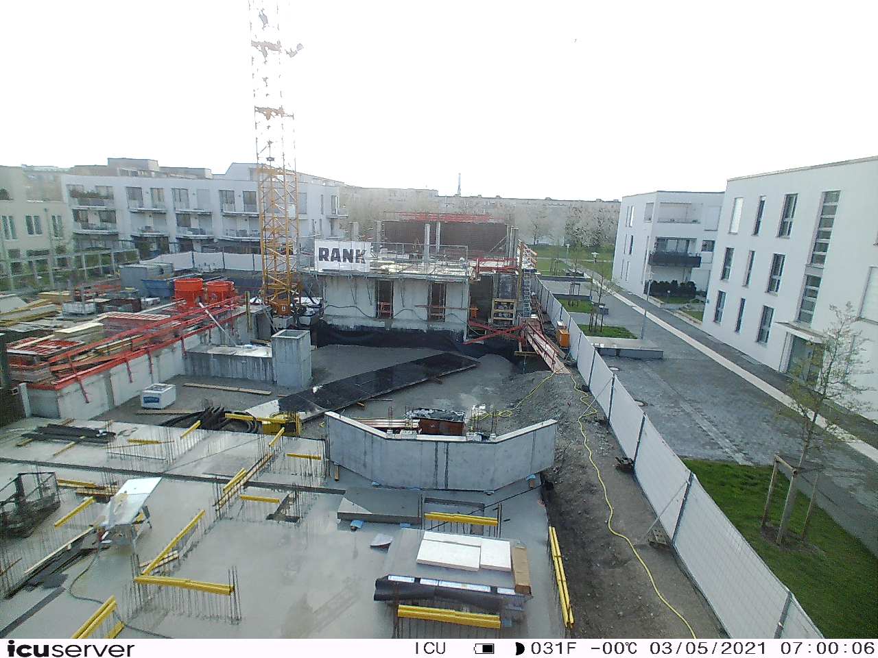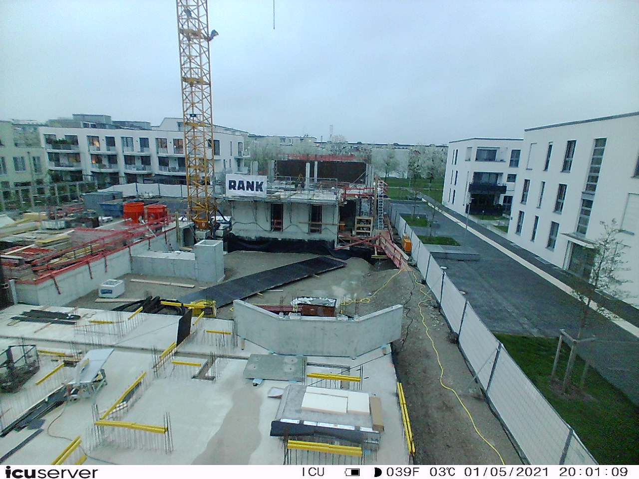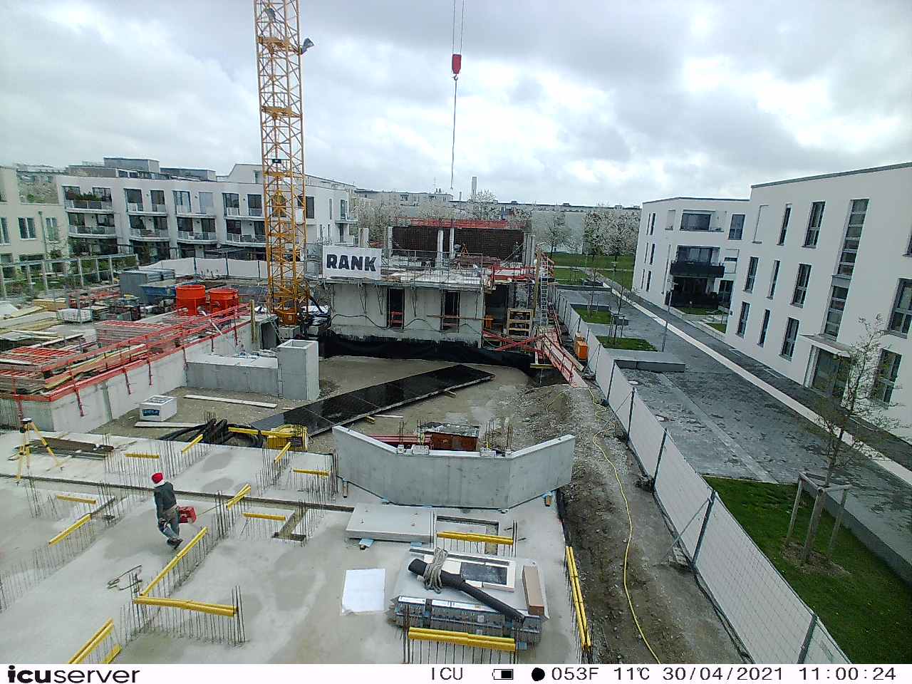 Die Kamera steht am westlichen Ende der Baustelle. Sie blickt nach Osten. Bilder: 26. Februar - 13. August 2021.