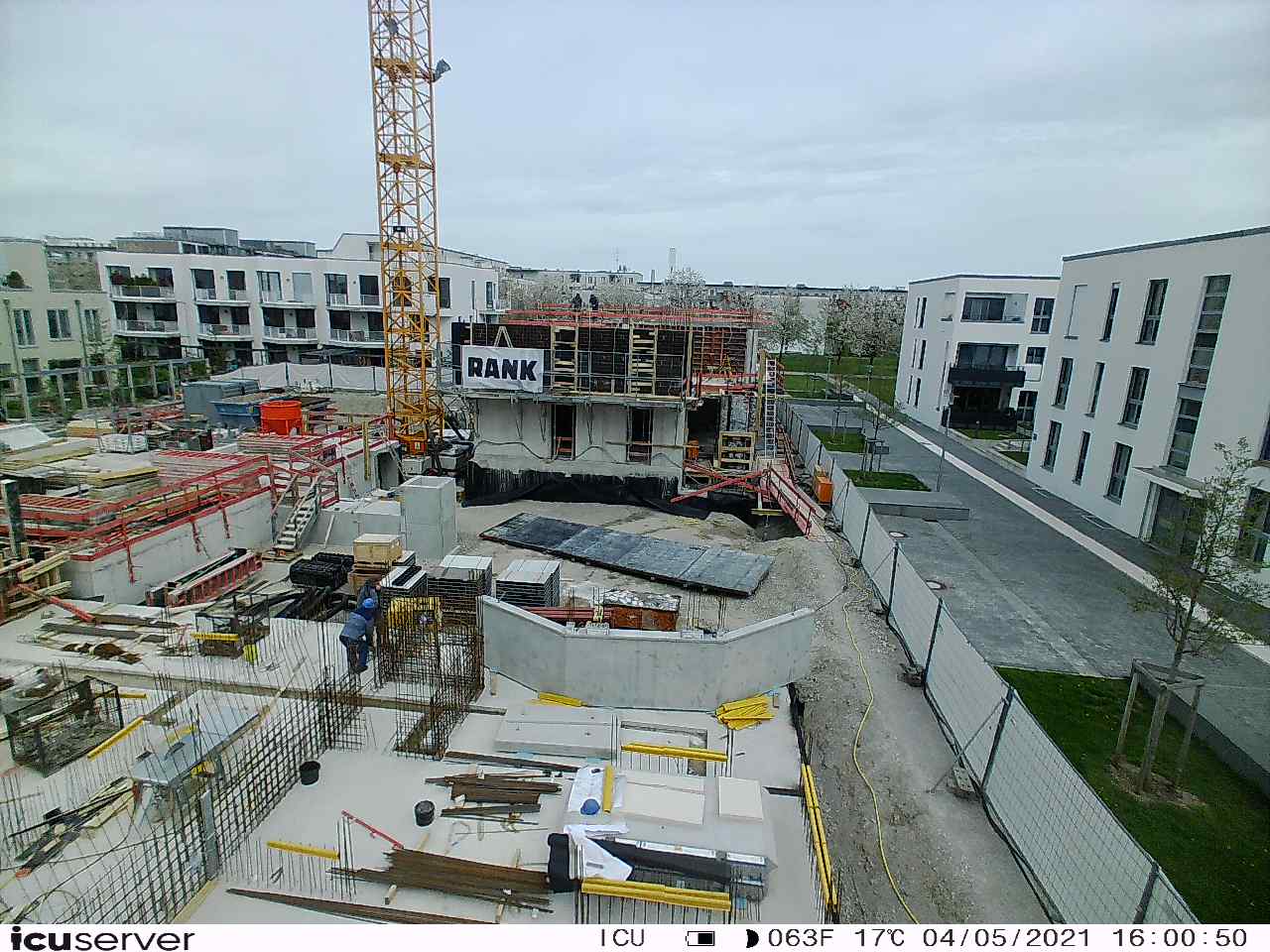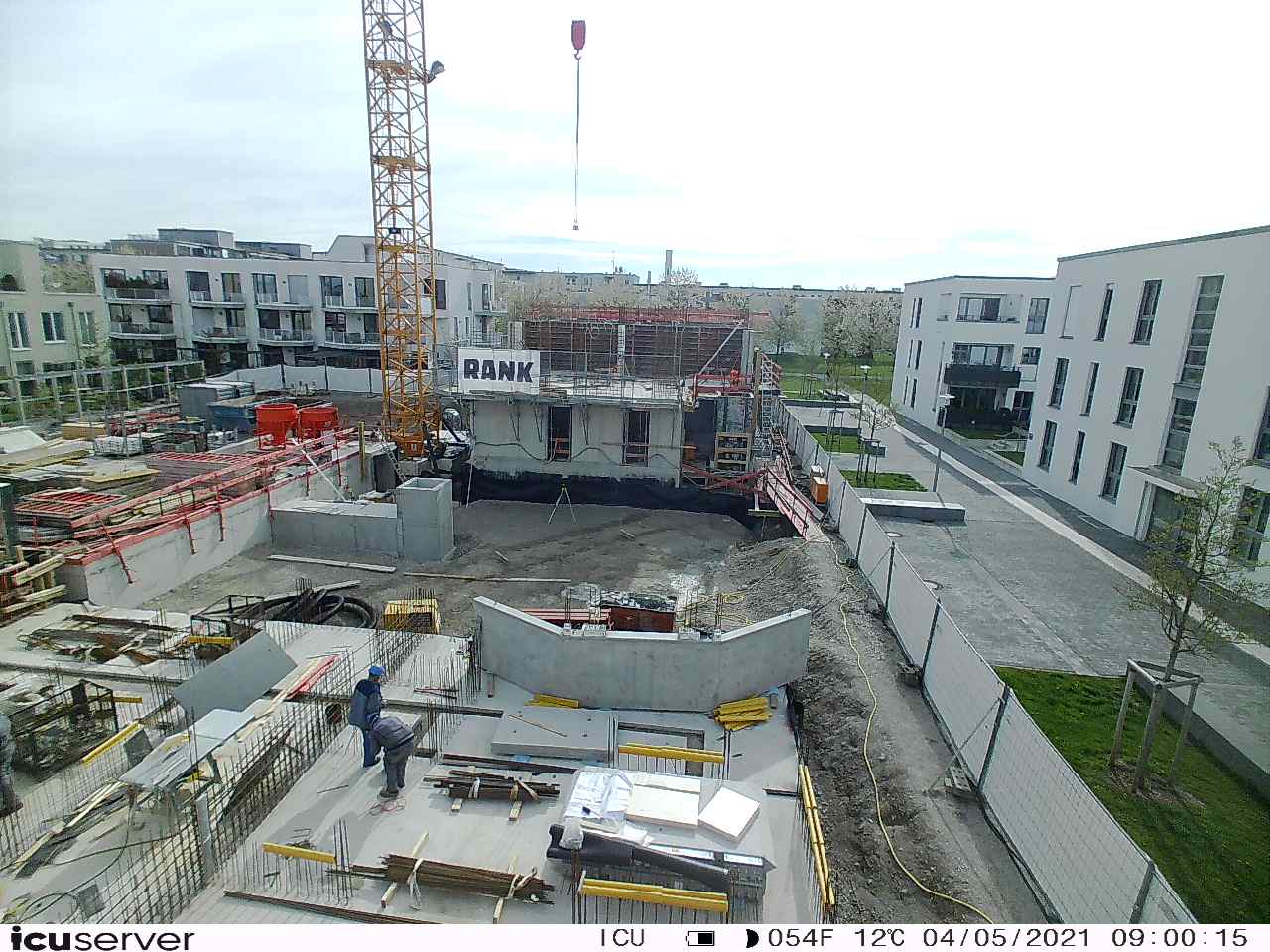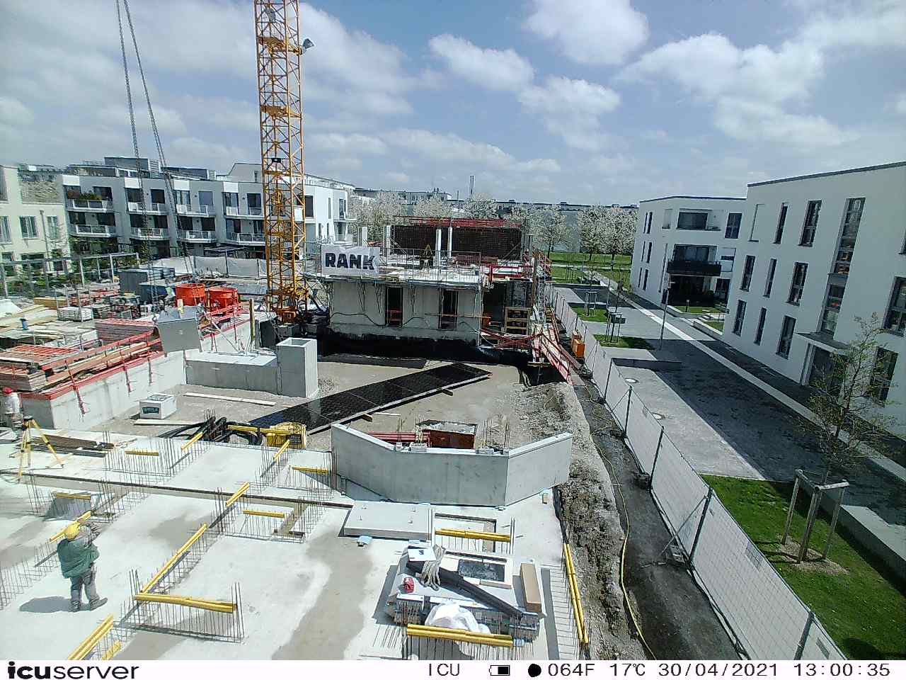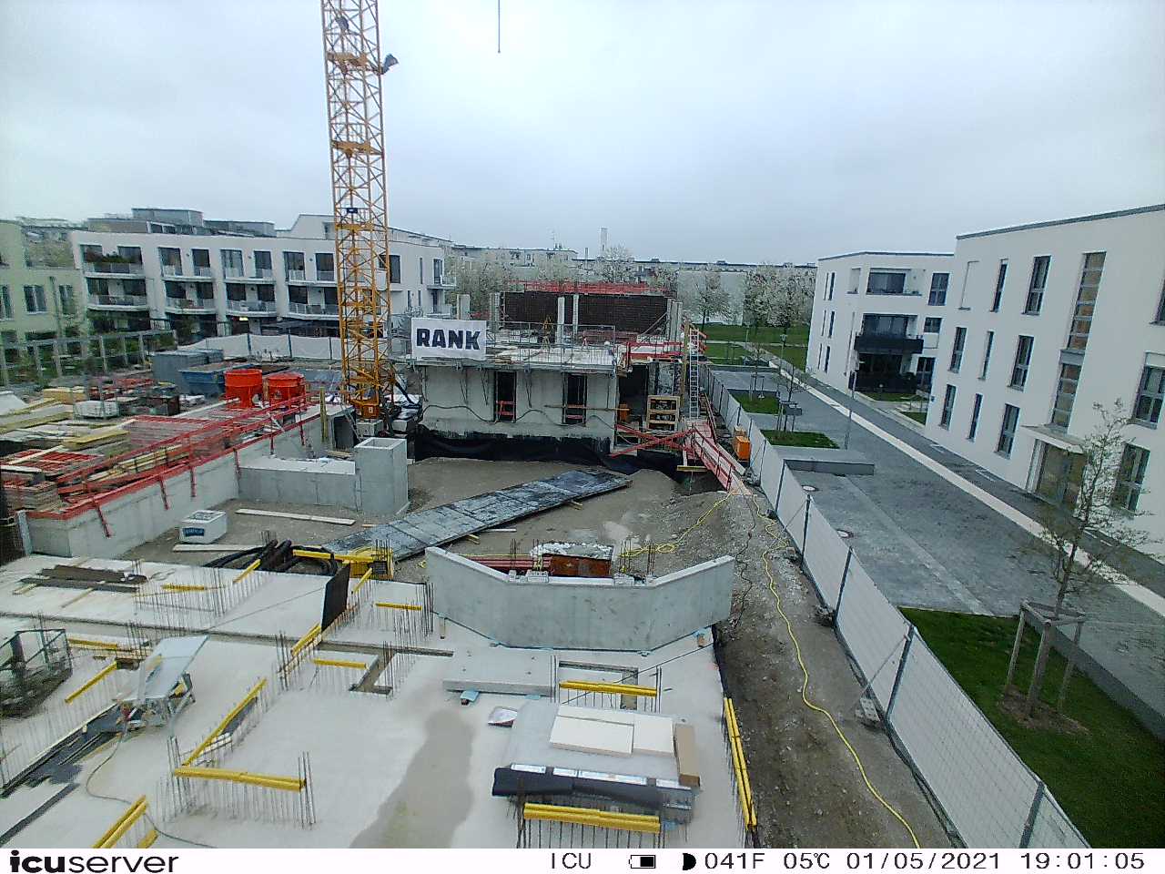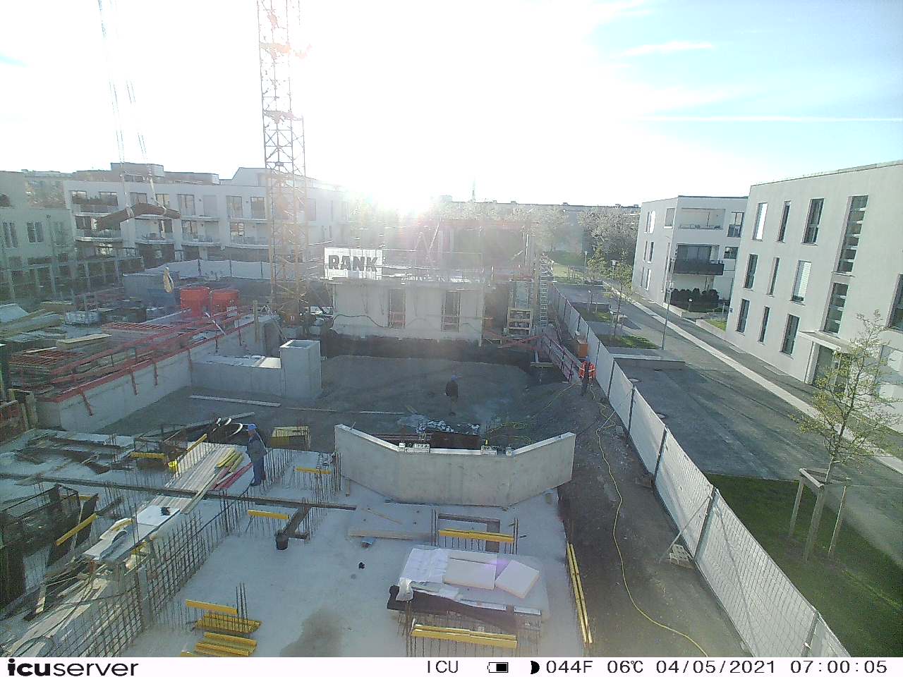 Die Kamera steht am westlichen Ende der Baustelle. Sie blickt nach Osten. Bilder: 26. Februar - 13. August 2021.