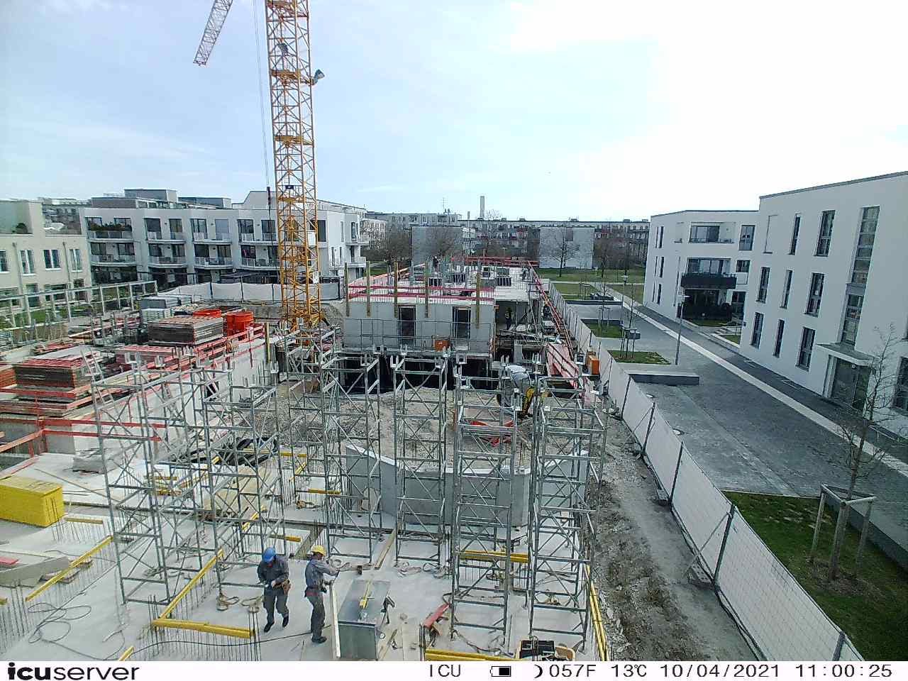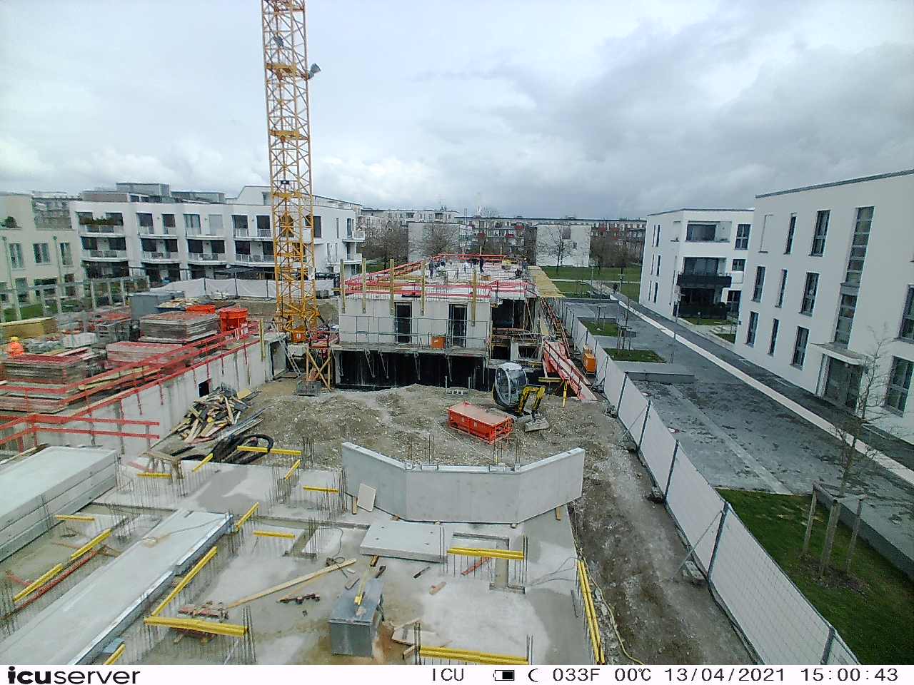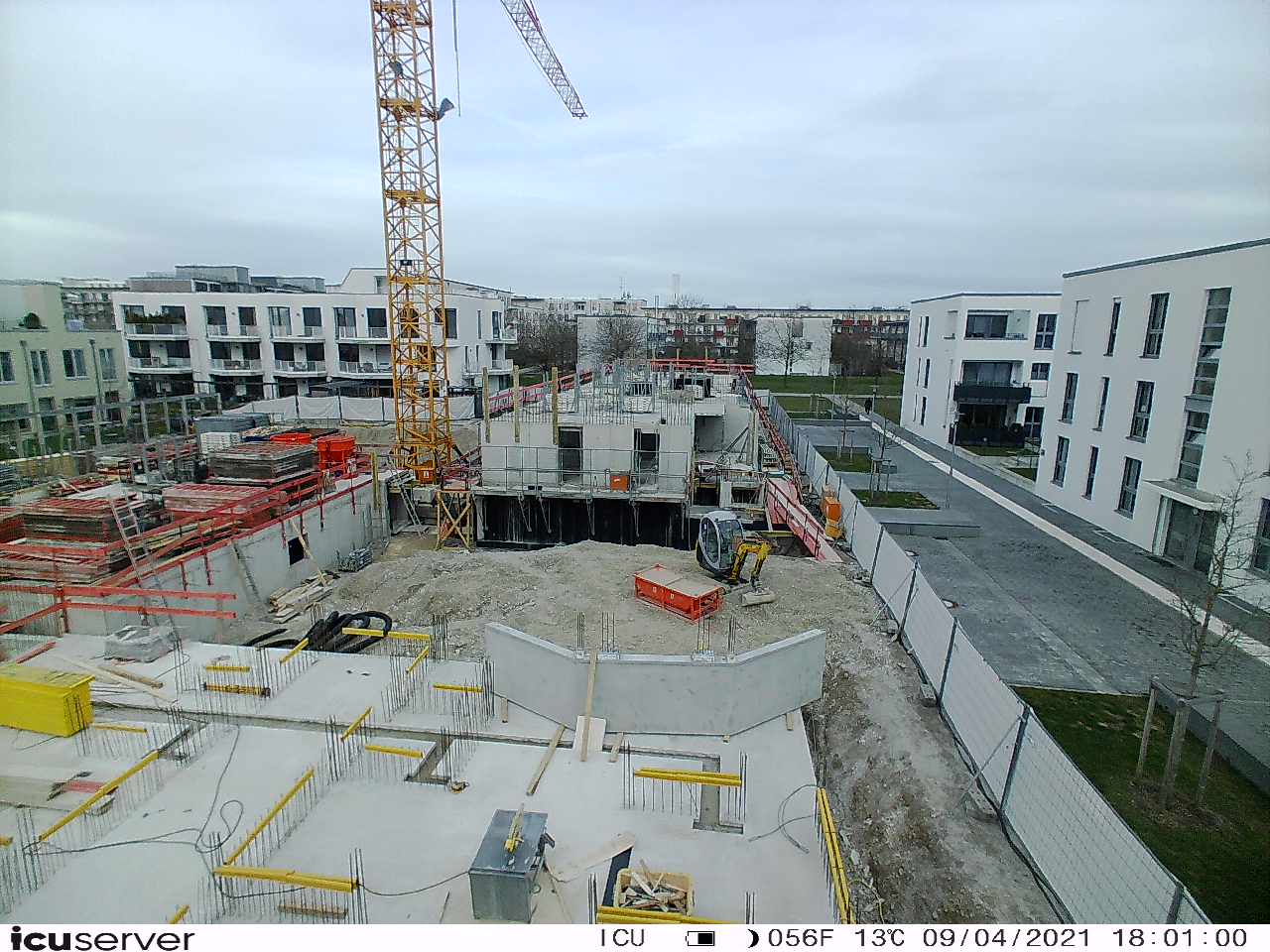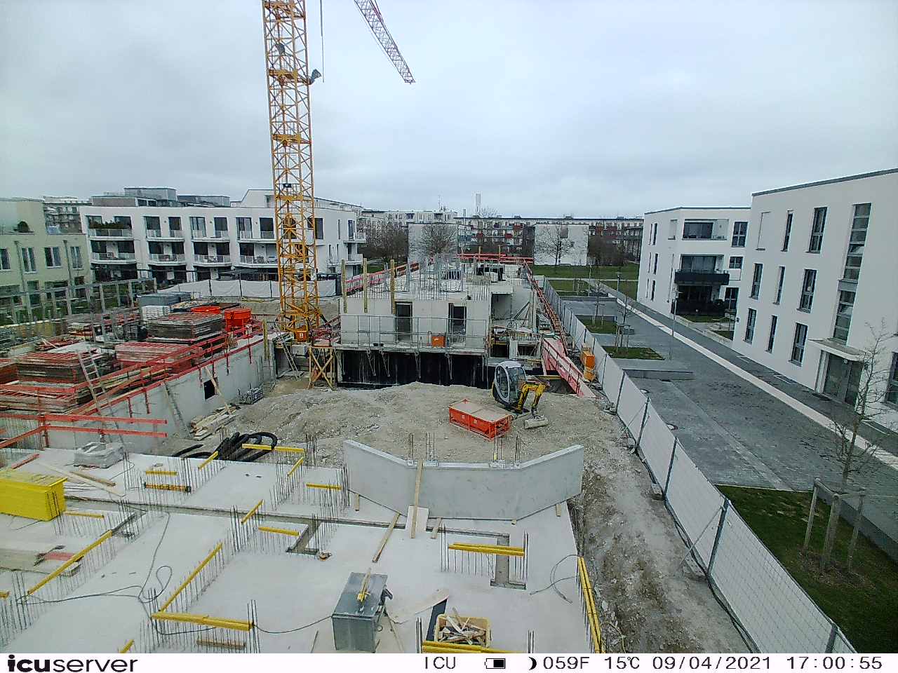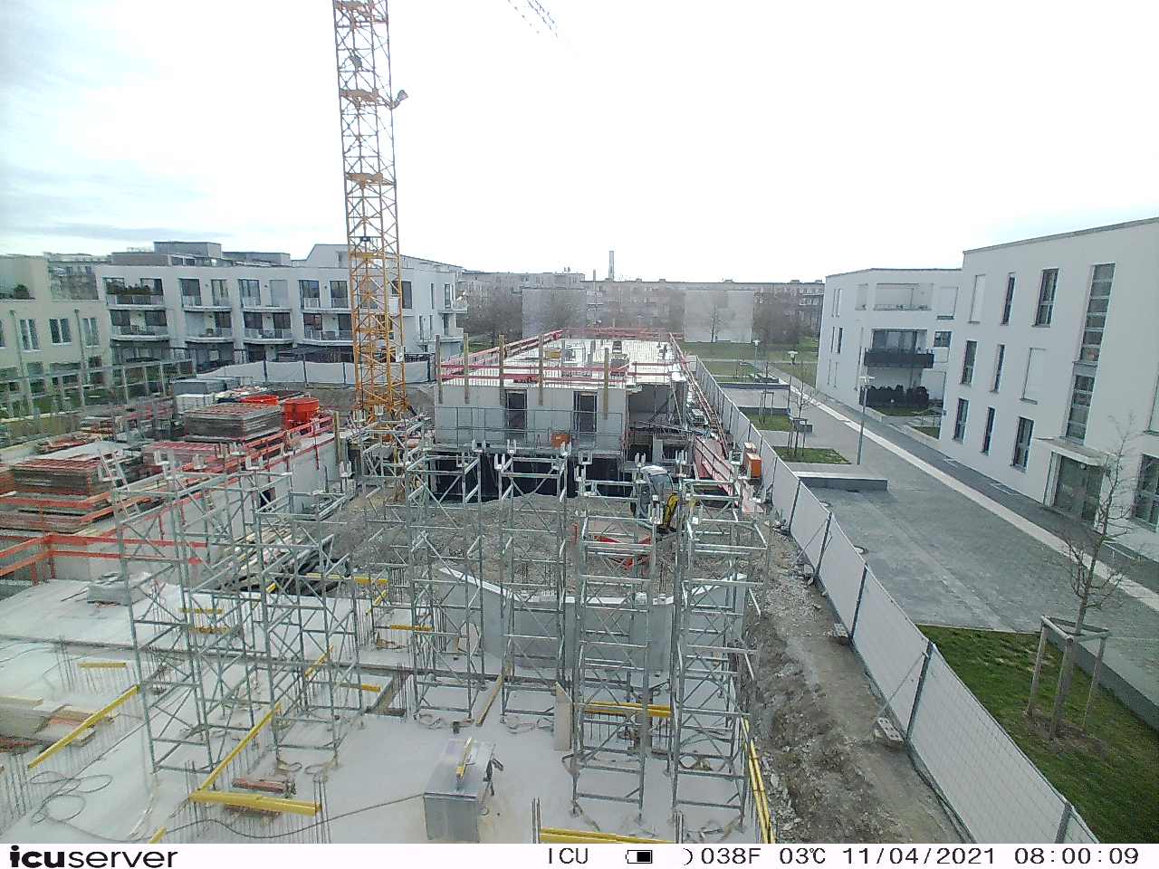 Die Kamera steht am westlichen Ende der Baustelle. Sie blickt nach Osten. Bilder: 26. Februar - 13. August 2021.