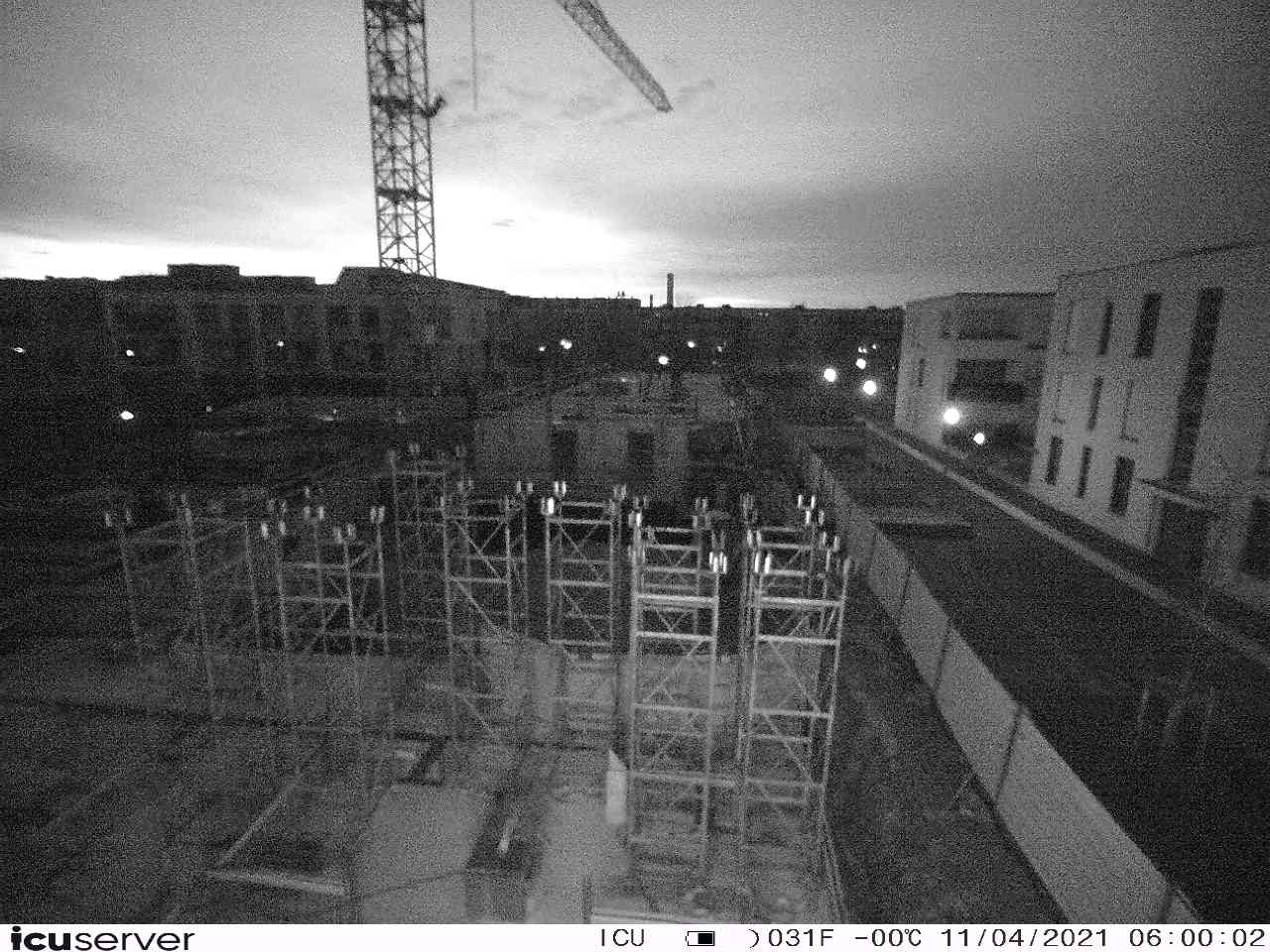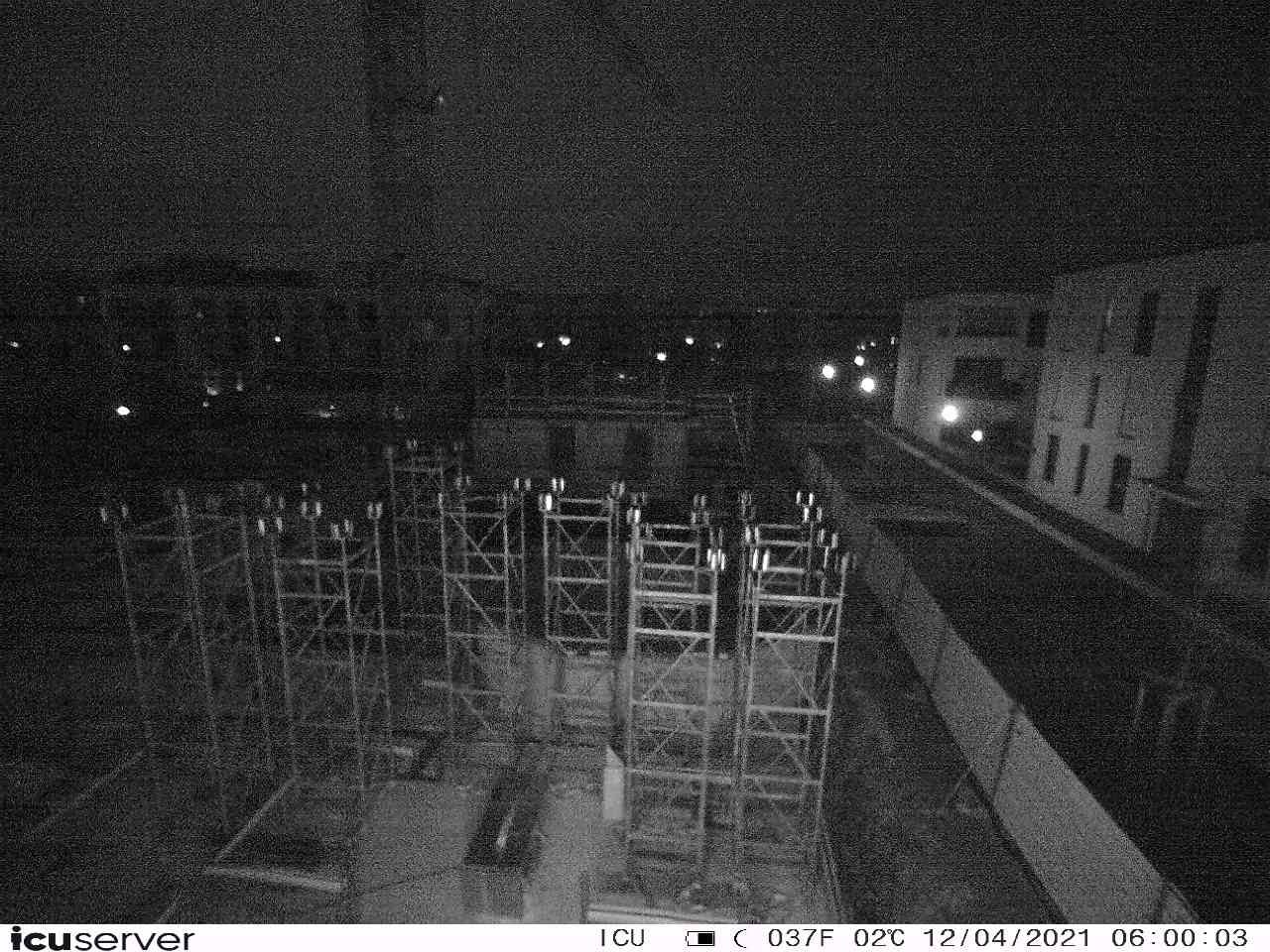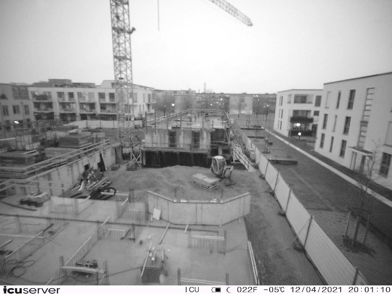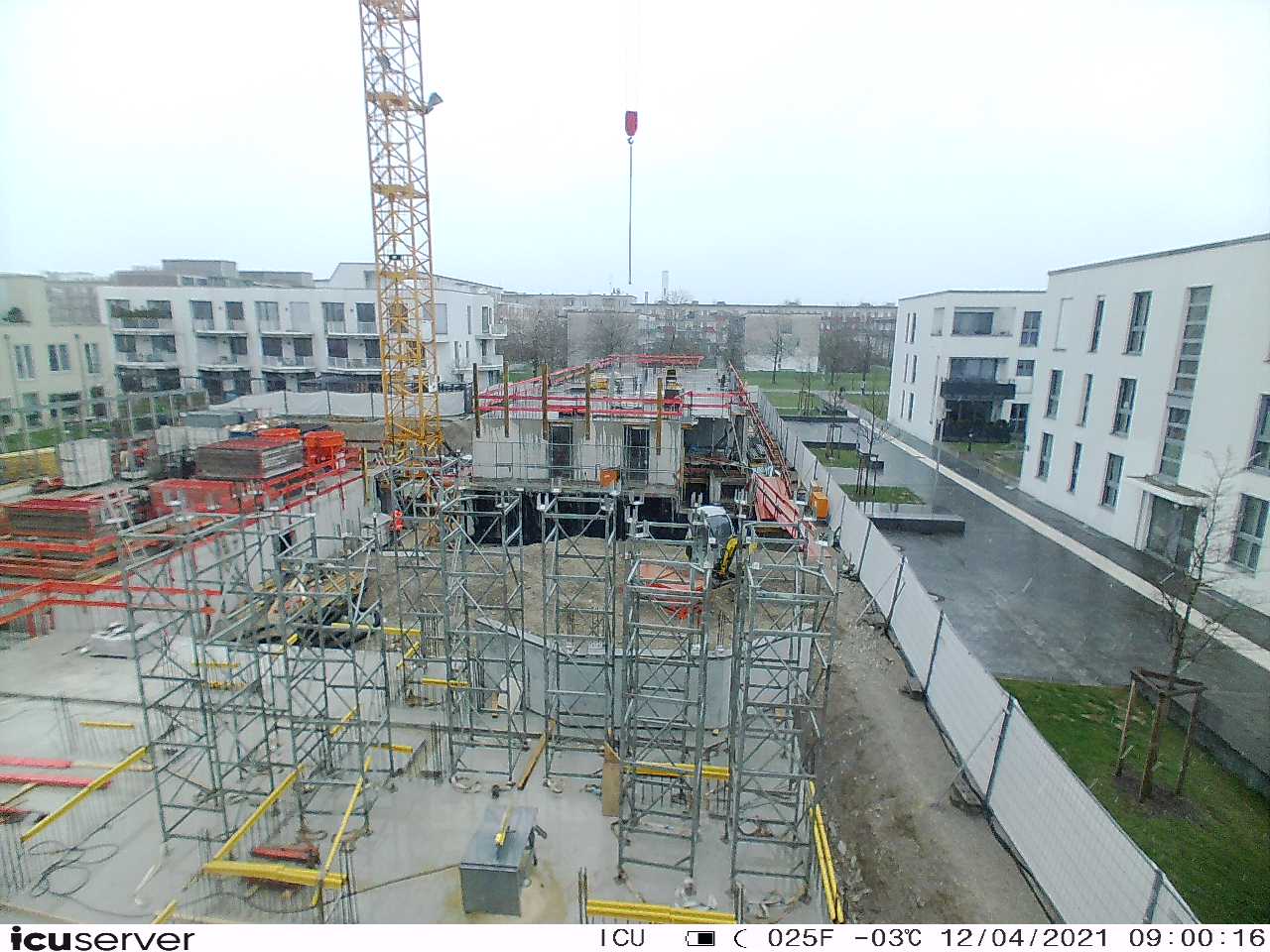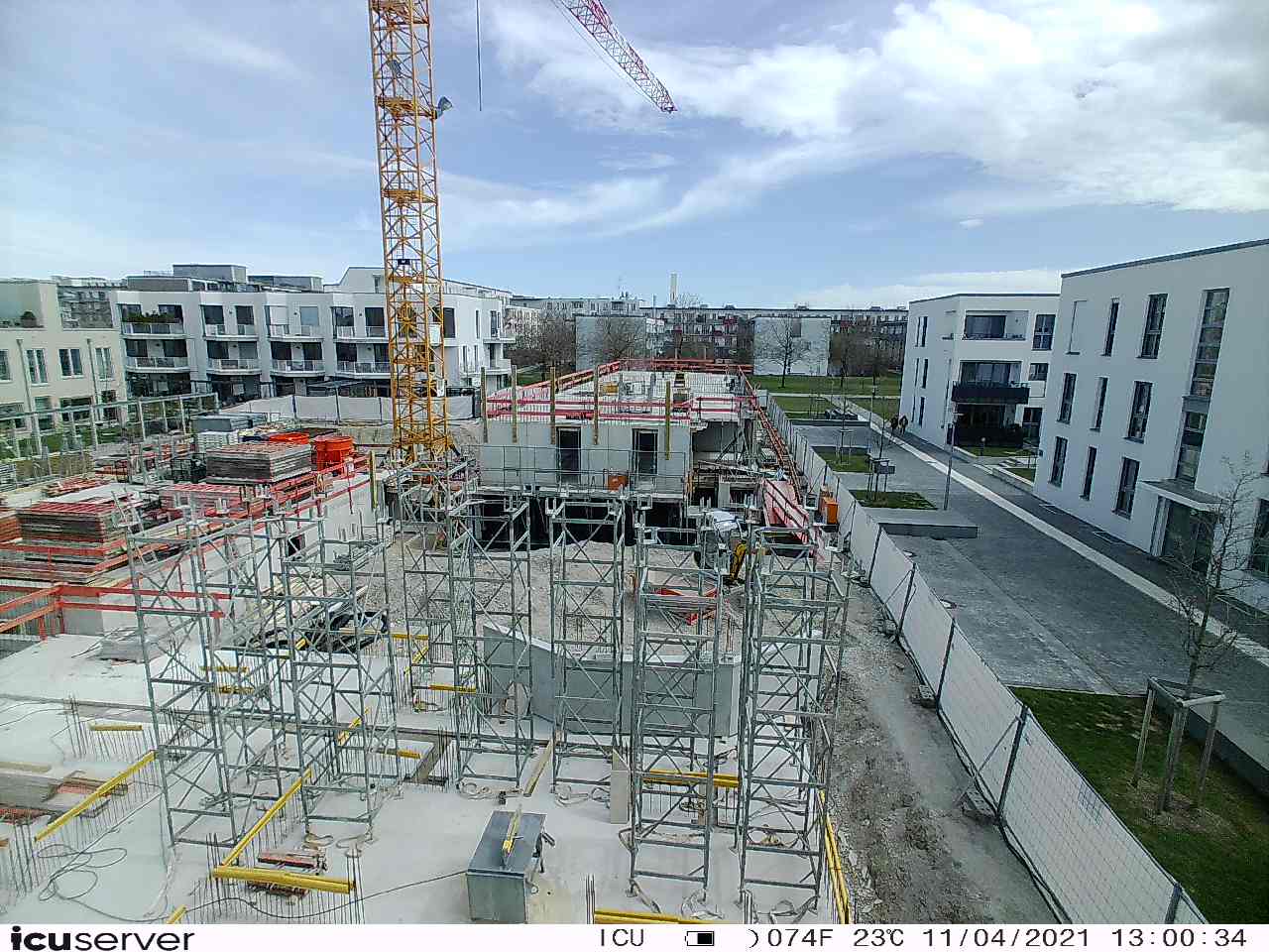 Die Kamera steht am westlichen Ende der Baustelle. Sie blickt nach Osten. Bilder: 26. Februar - 13. August 2021.