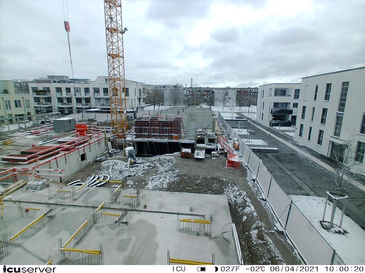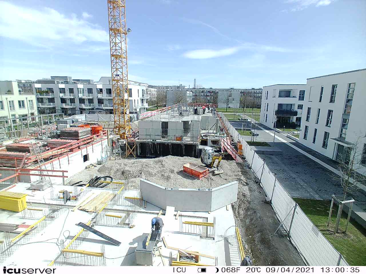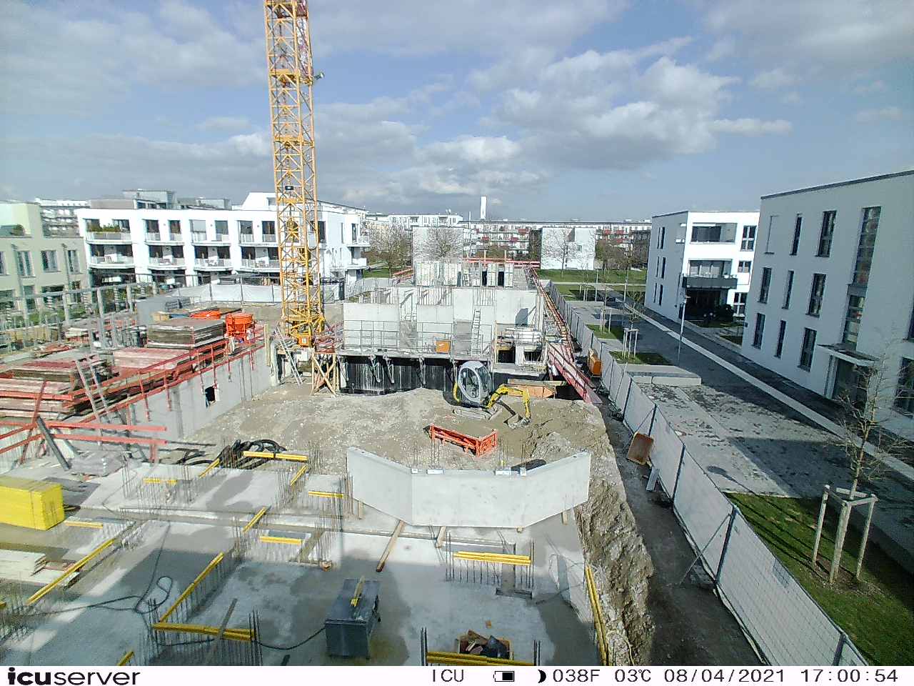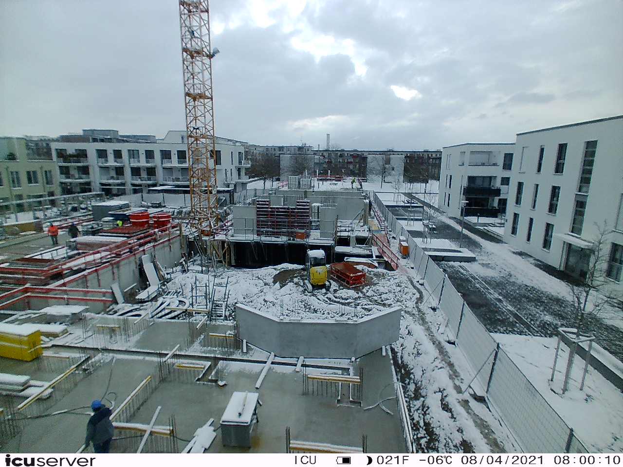 Die Kamera steht am westlichen Ende der Baustelle. Sie blickt nach Osten. Bilder: 26. Februar - 13. August 2021.