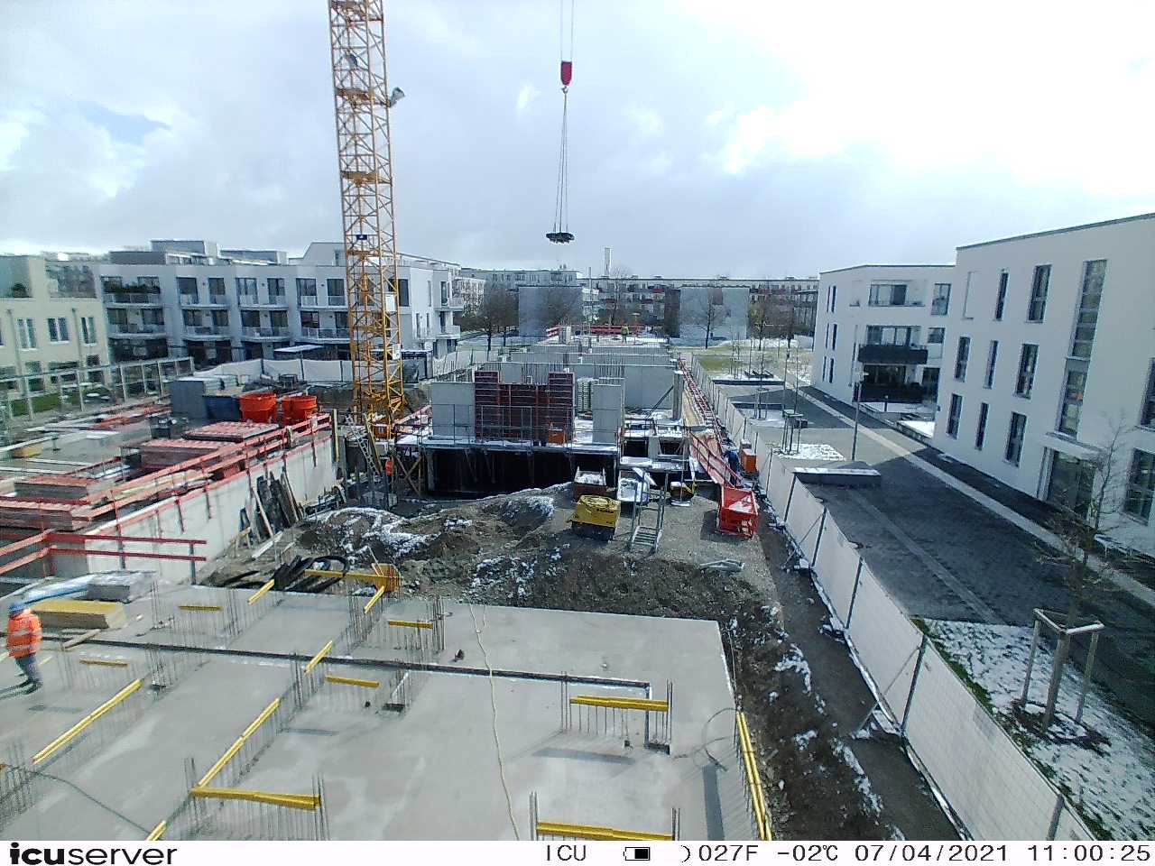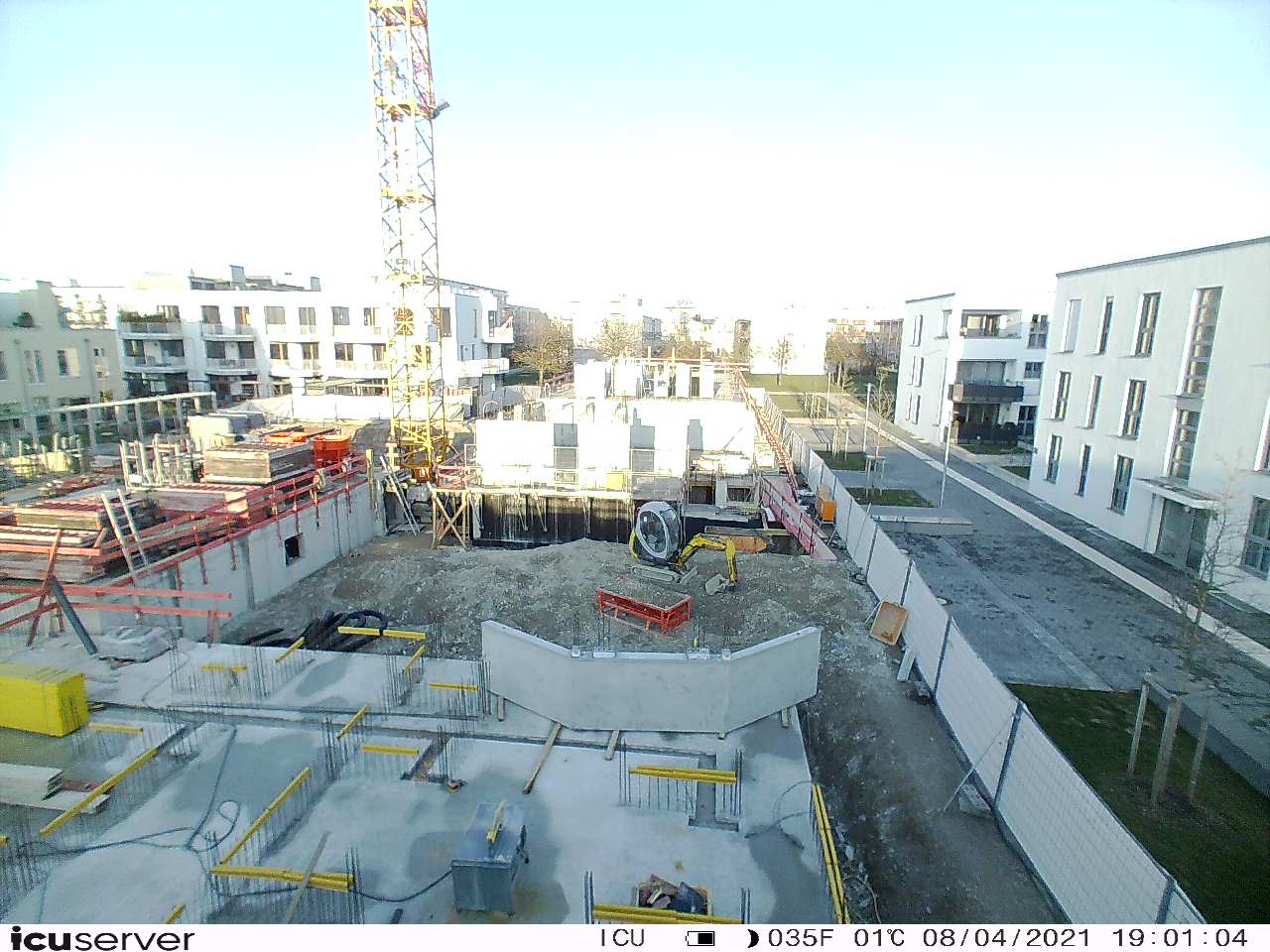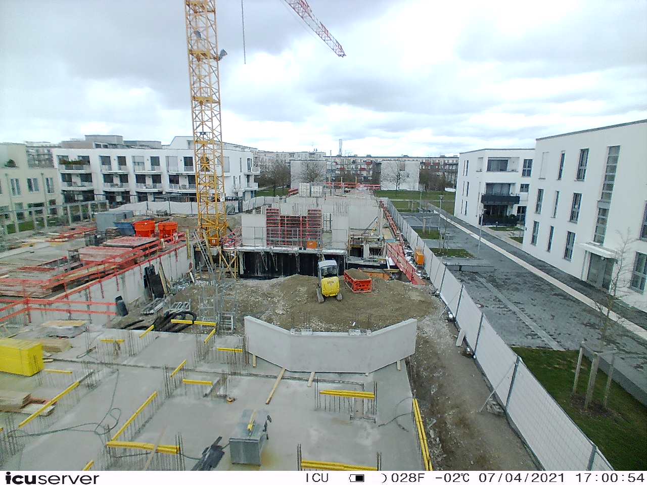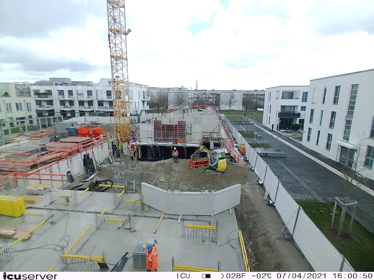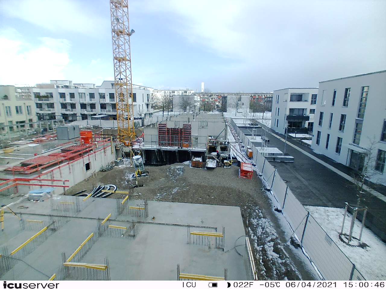 Die Kamera steht am westlichen Ende der Baustelle. Sie blickt nach Osten. Bilder: 26. Februar - 13. August 2021.