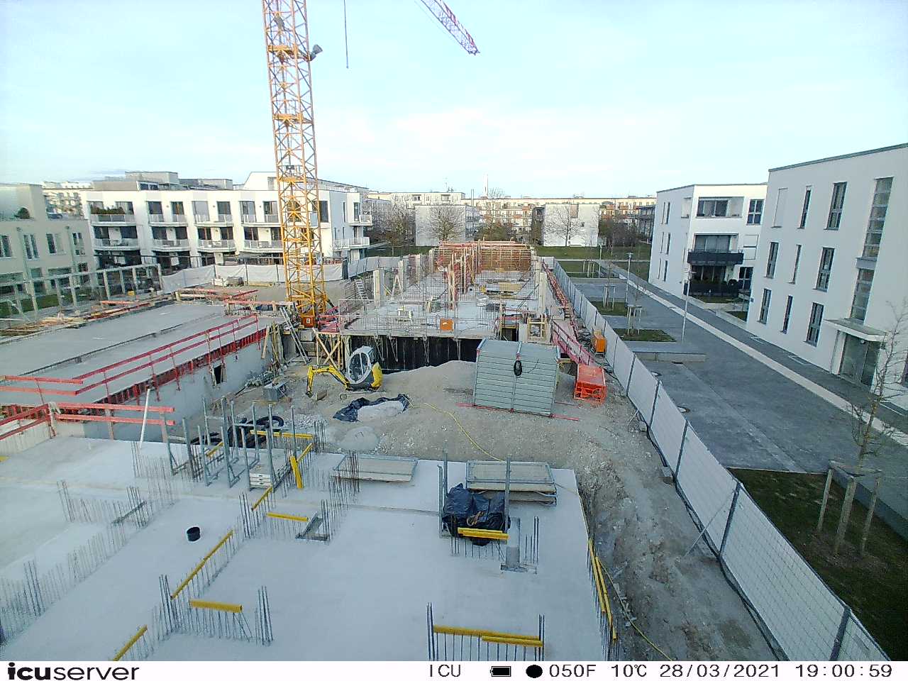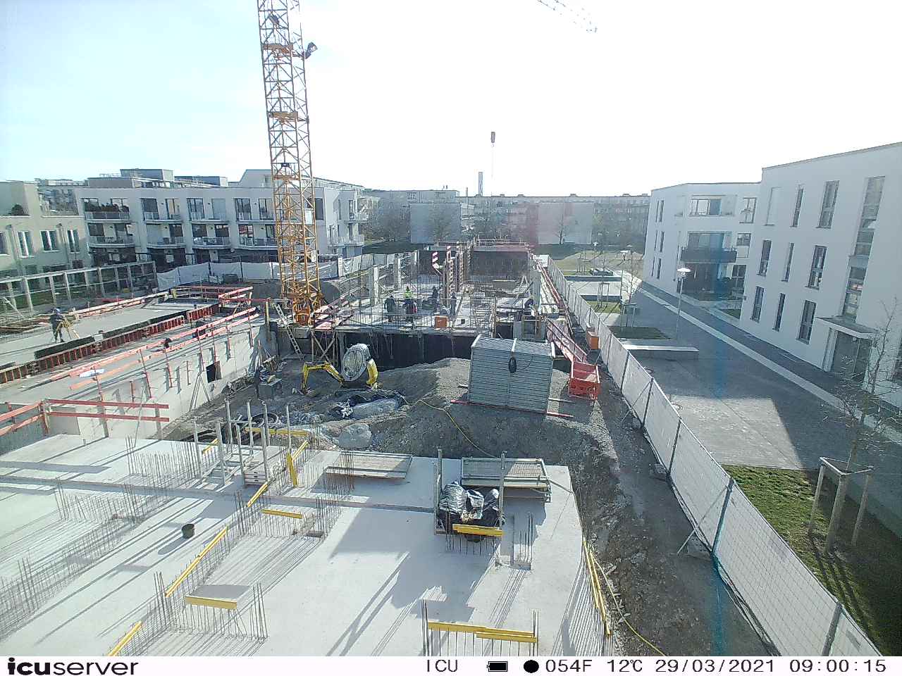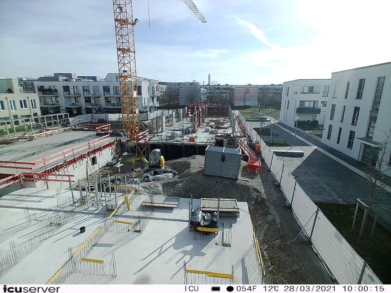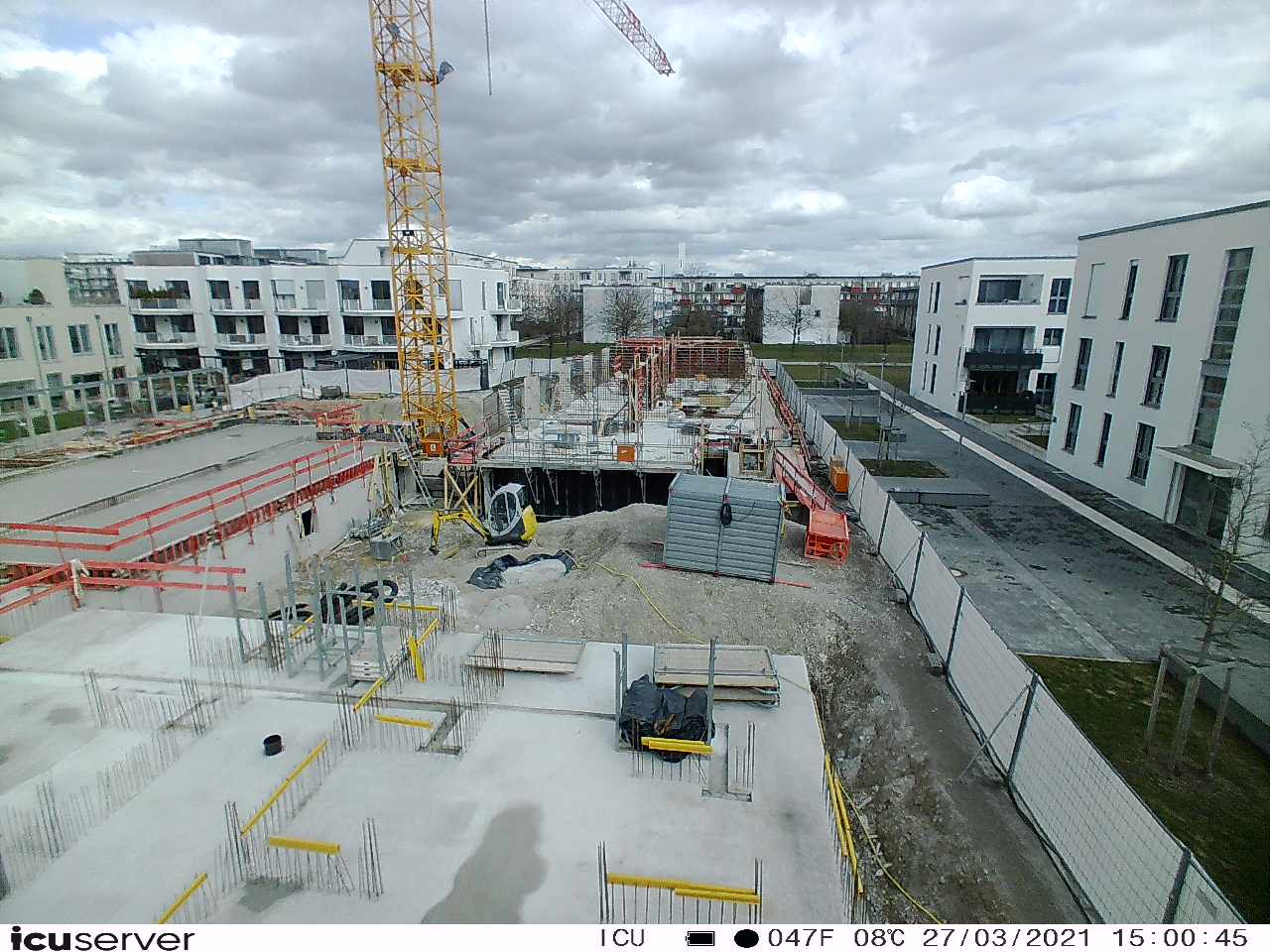 Die Kamera steht am westlichen Ende der Baustelle. Sie blickt nach Osten. Bilder: 26. Februar - 13. August 2021.