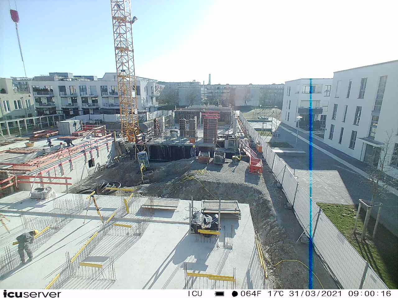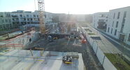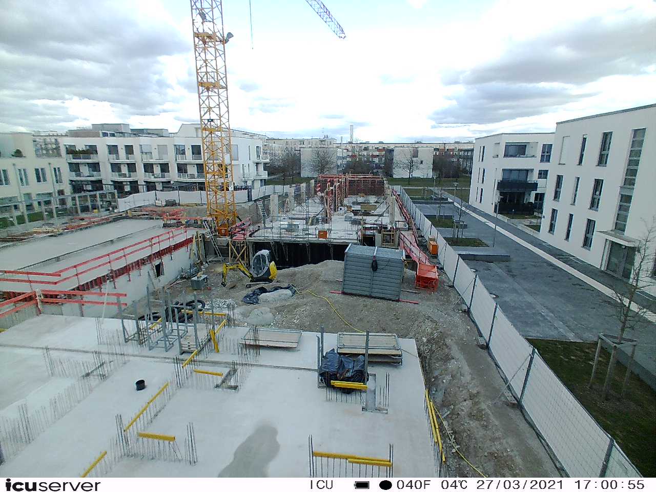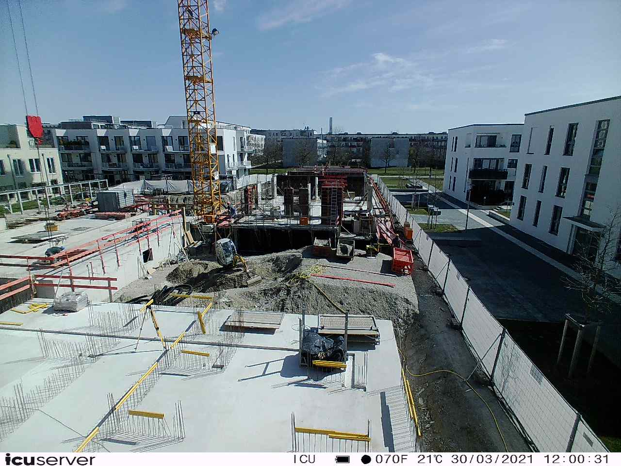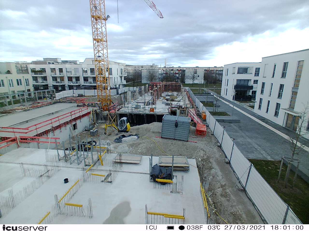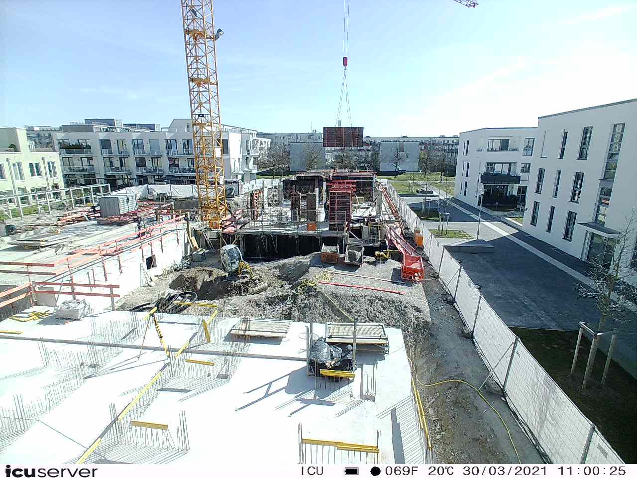 Die Kamera steht am westlichen Ende der Baustelle. Sie blickt nach Osten. Bilder: 26. Februar - 13. August 2021.