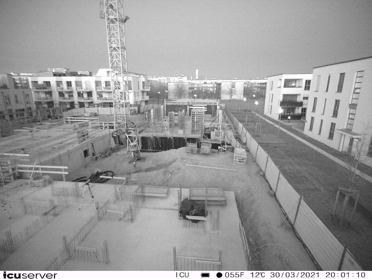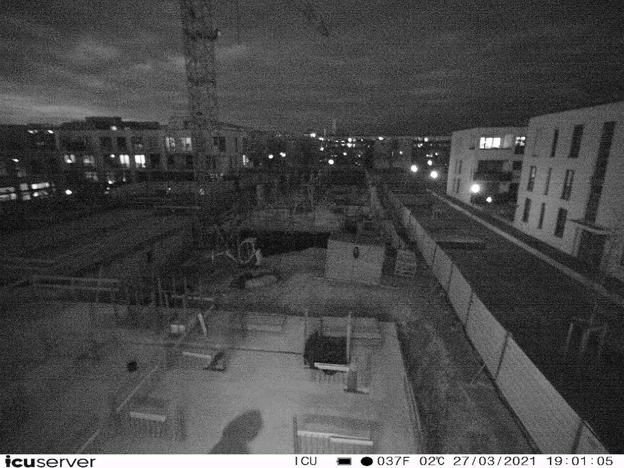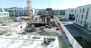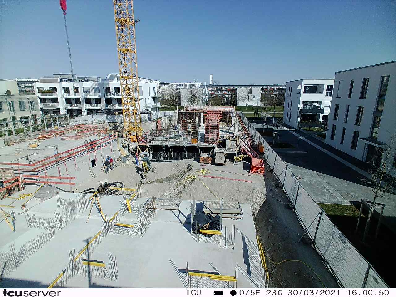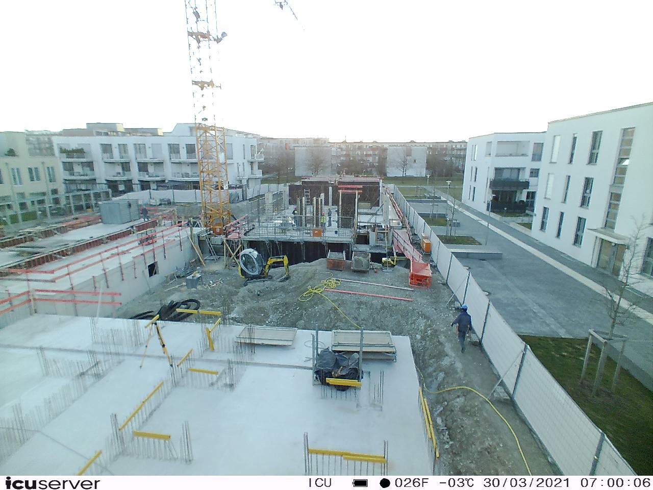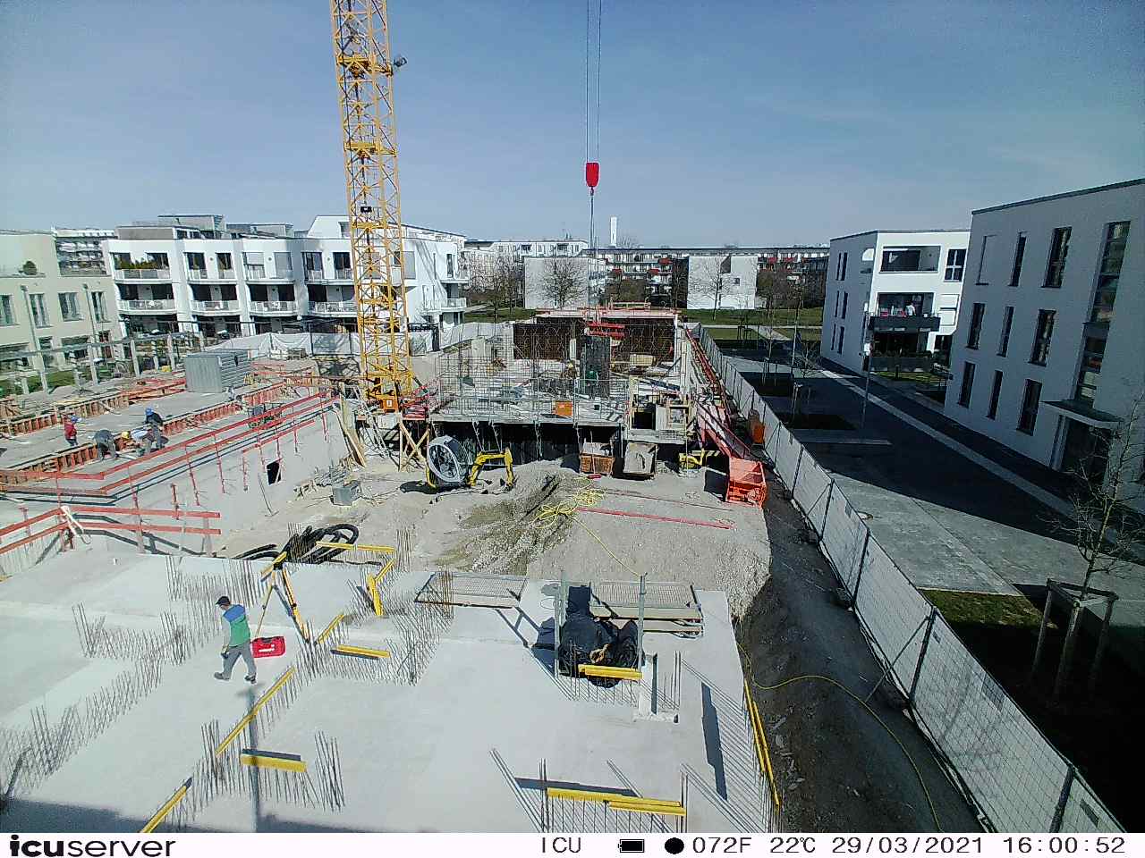 Die Kamera steht am westlichen Ende der Baustelle. Sie blickt nach Osten. Bilder: 26. Februar - 13. August 2021.