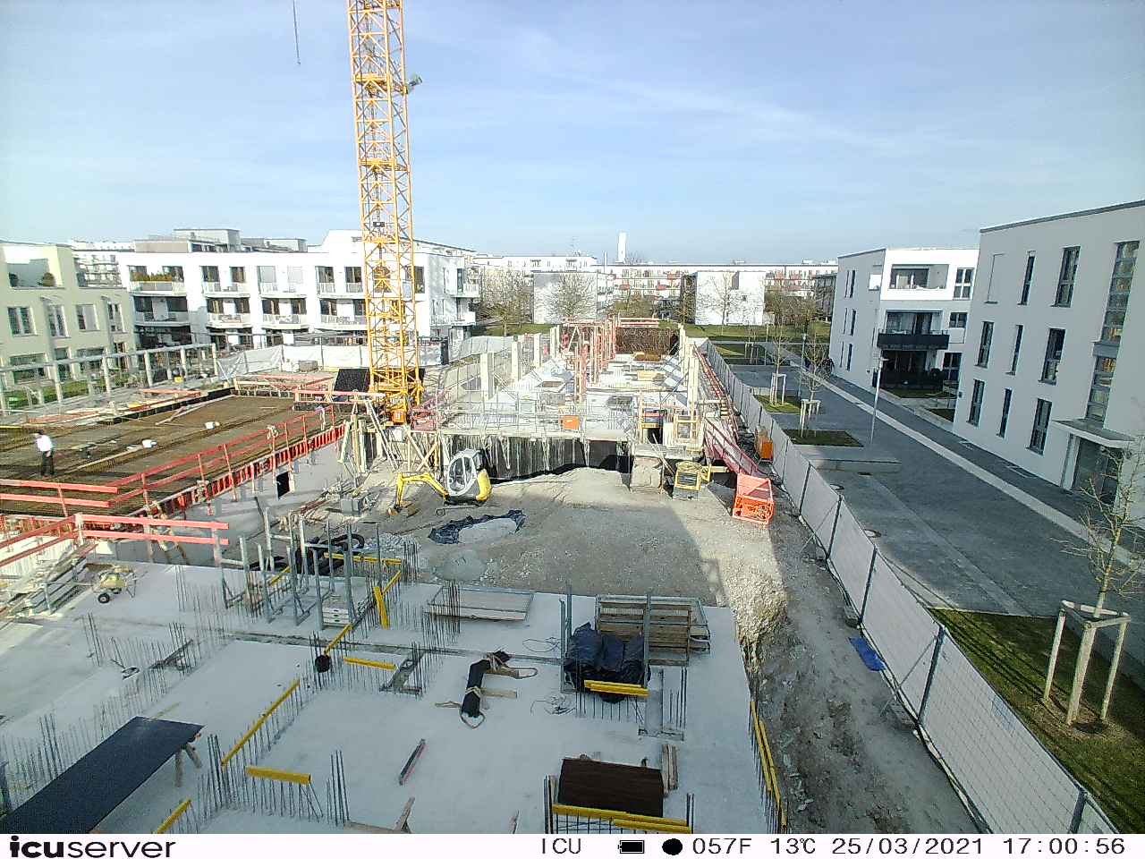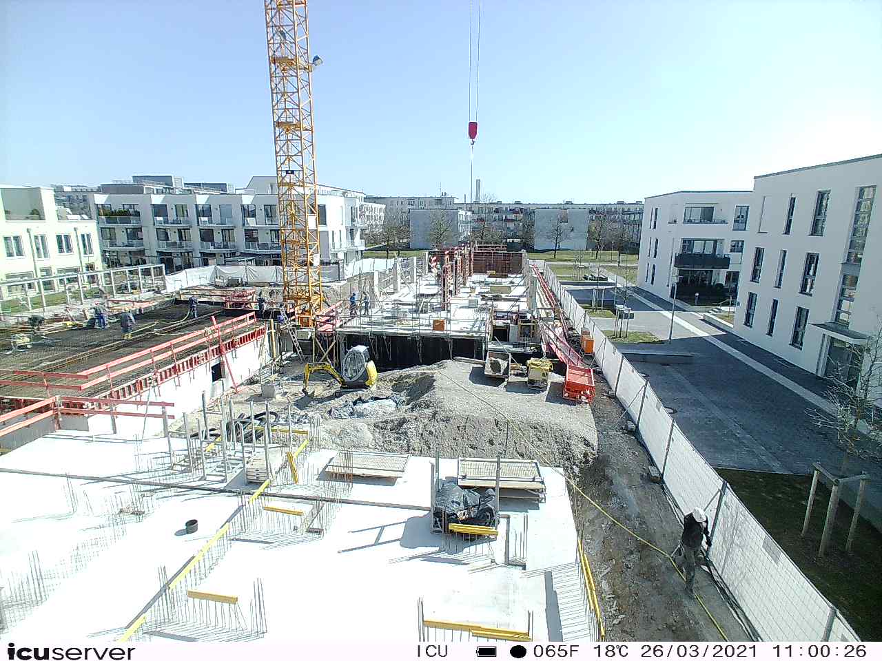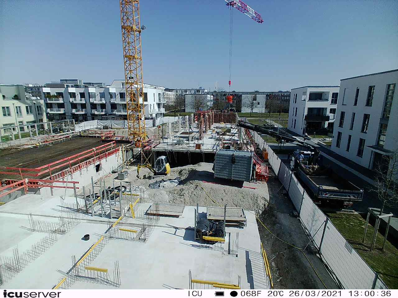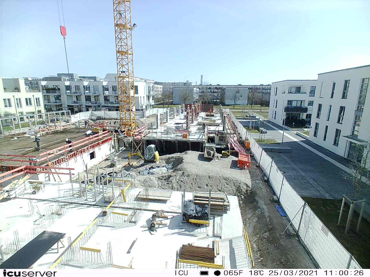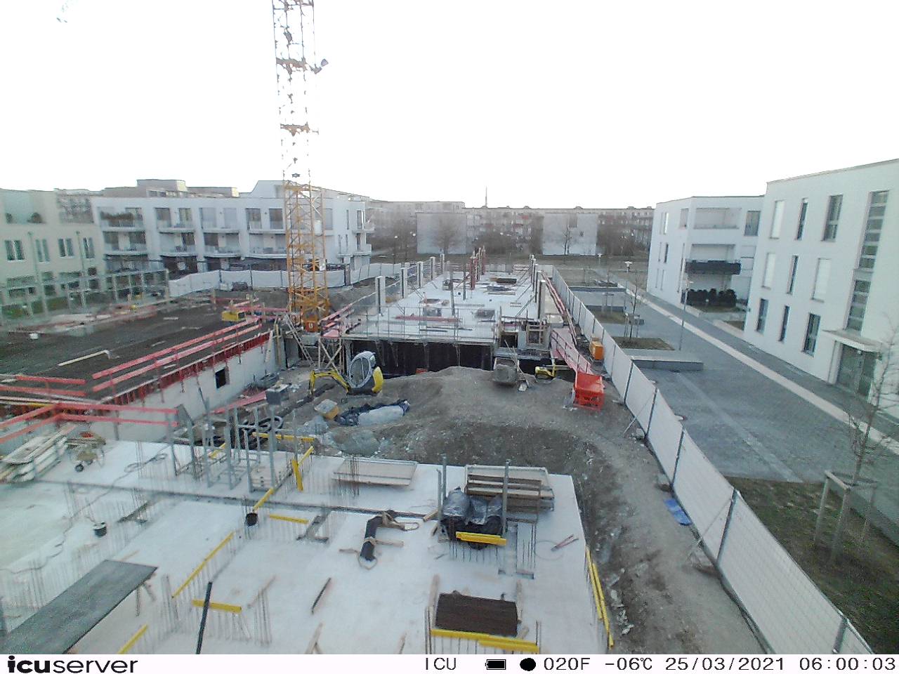 Die Kamera steht am westlichen Ende der Baustelle. Sie blickt nach Osten. Bilder: 26. Februar - 13. August 2021.