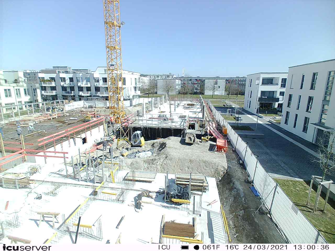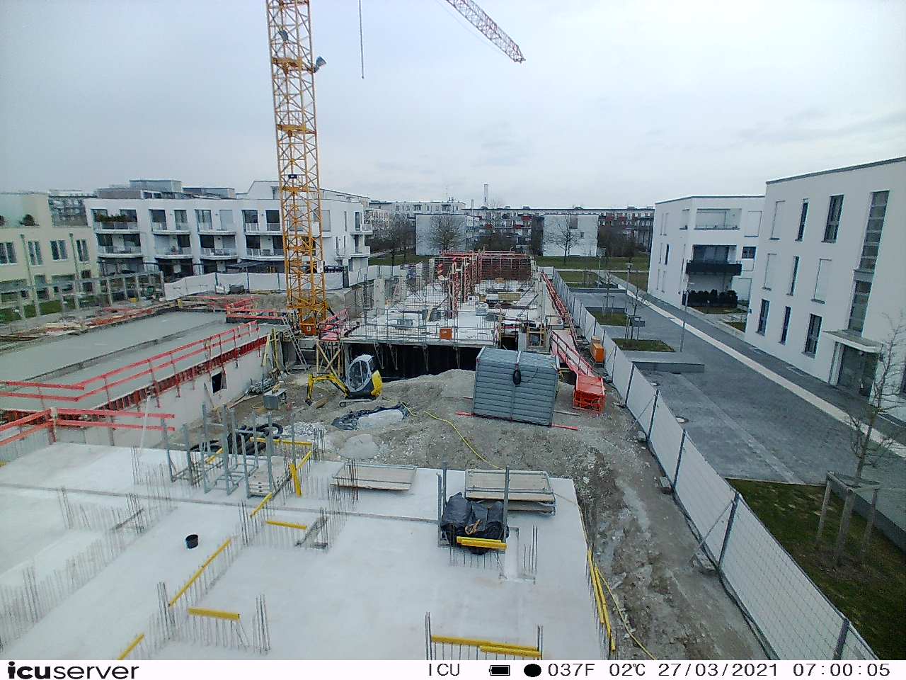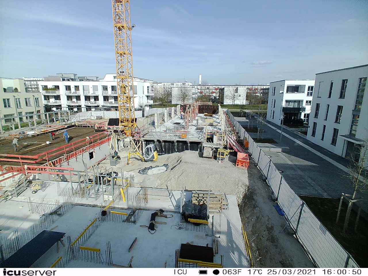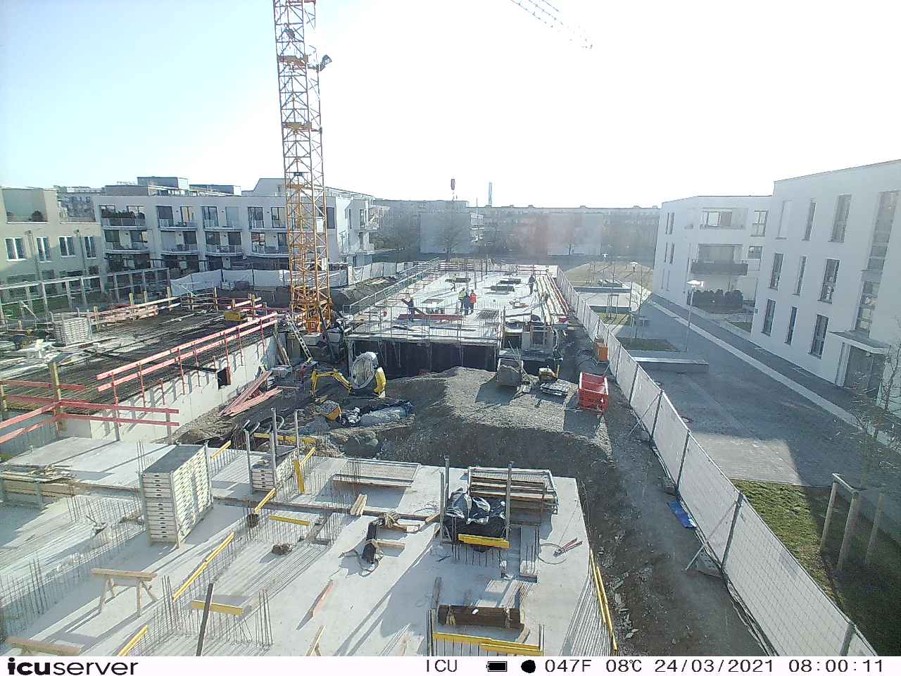 Die Kamera steht am westlichen Ende der Baustelle. Sie blickt nach Osten. Bilder: 26. Februar - 13. August 2021.