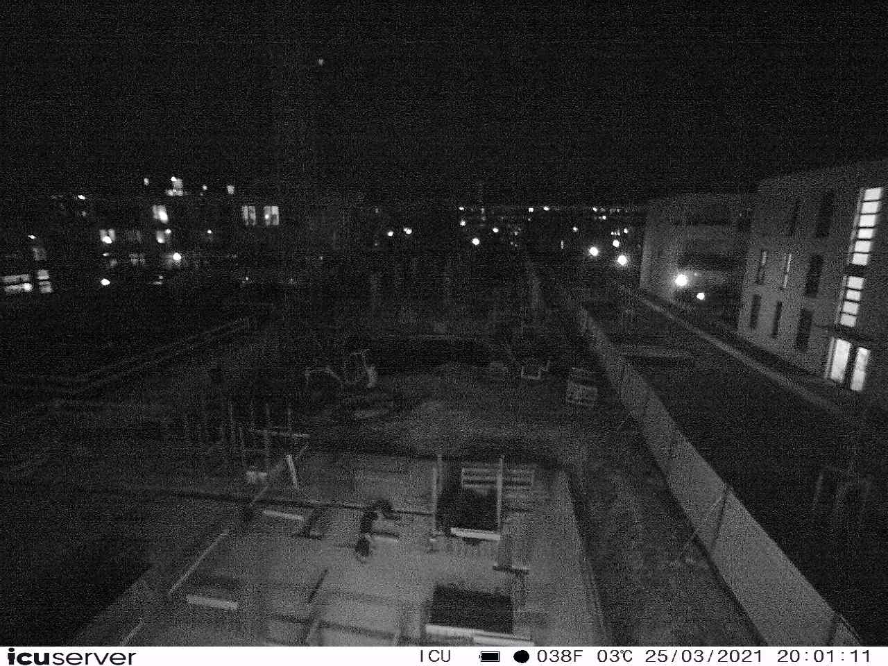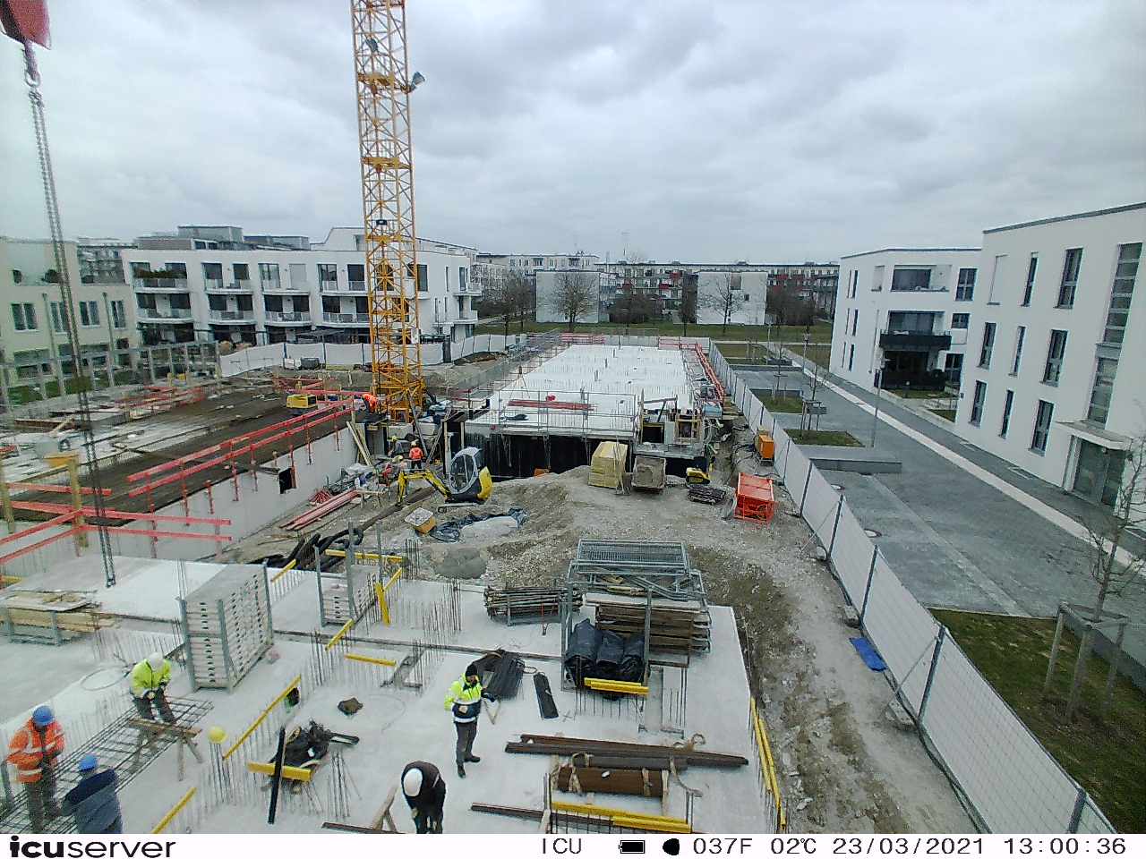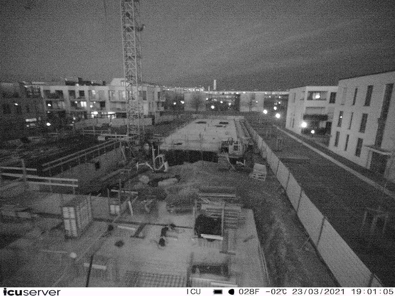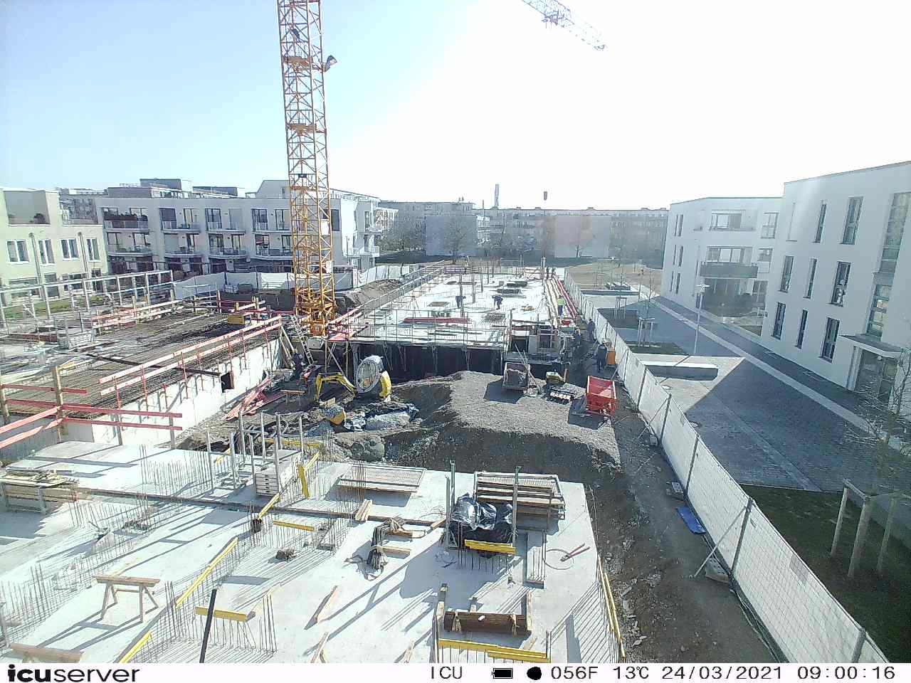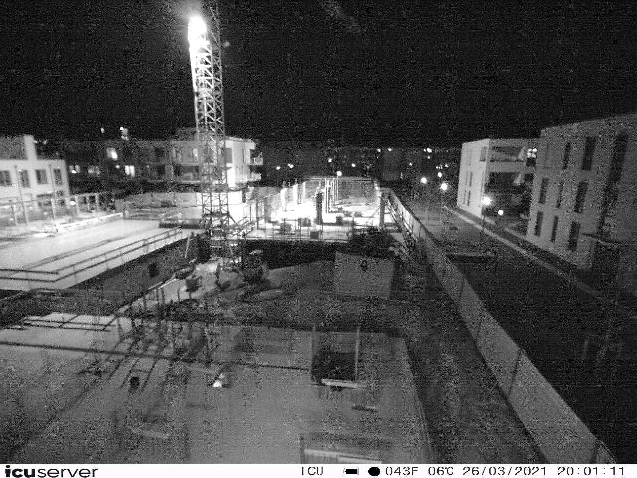 Die Kamera steht am westlichen Ende der Baustelle. Sie blickt nach Osten. Bilder: 26. Februar - 13. August 2021.