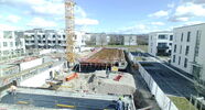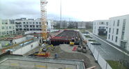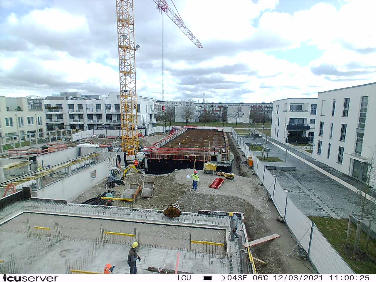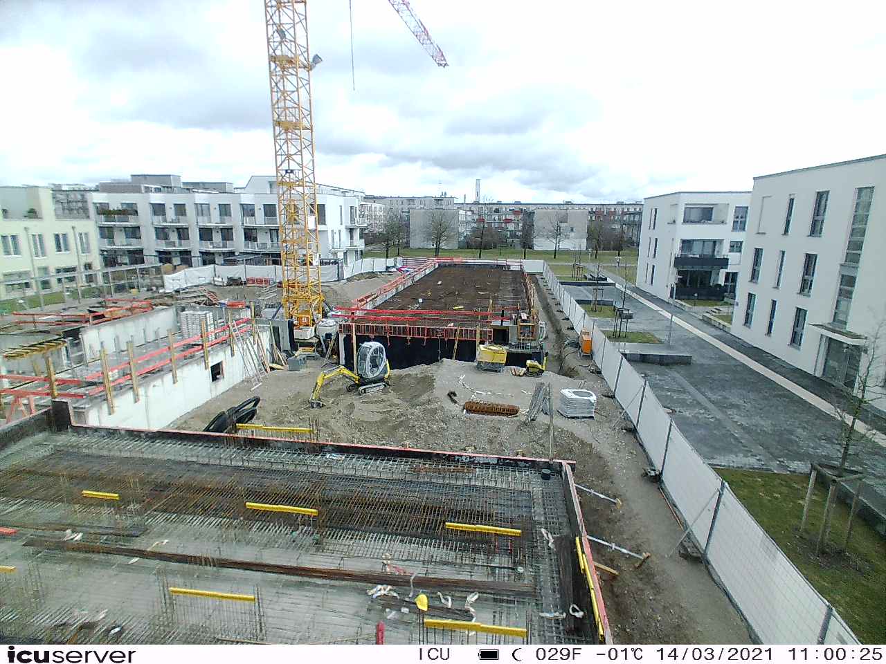 Die Kamera steht am westlichen Ende der Baustelle. Sie blickt nach Osten. Bilder: 26. Februar - 13. August 2021.