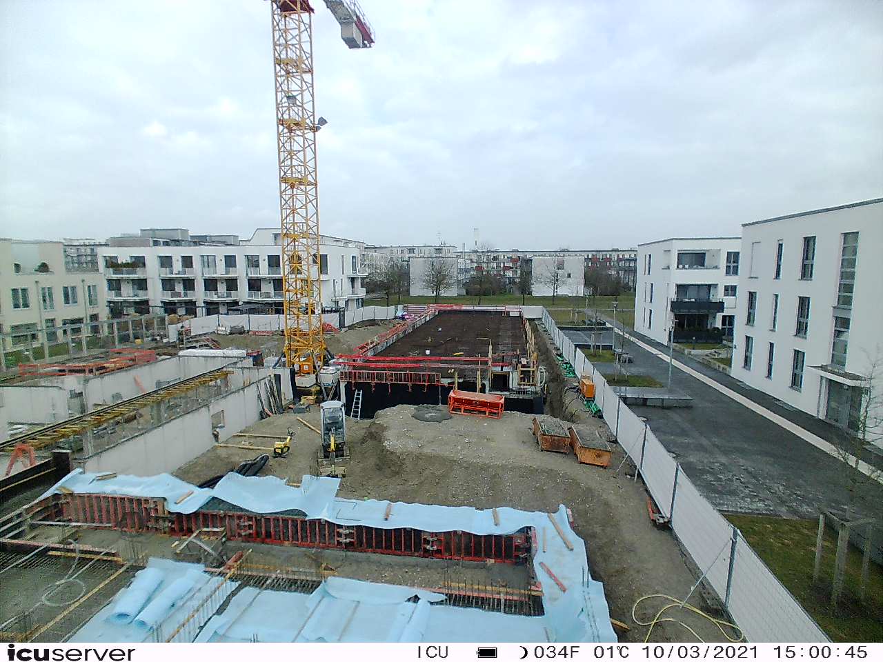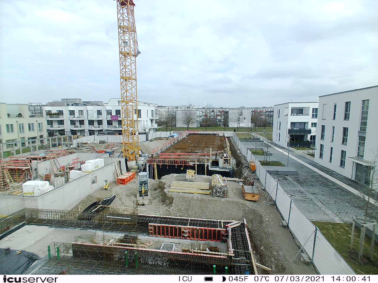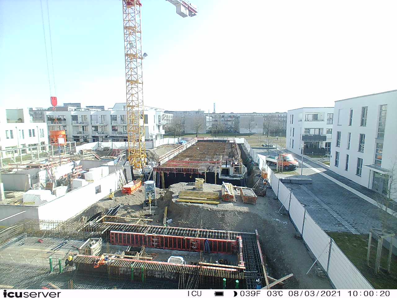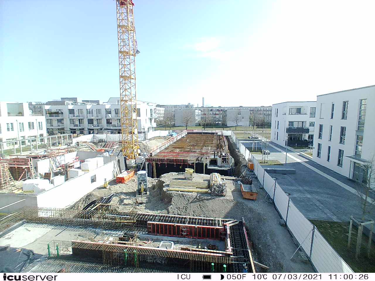 Die Kamera steht am westlichen Ende der Baustelle. Sie blickt nach Osten. Bilder: 26. Februar - 13. August 2021.