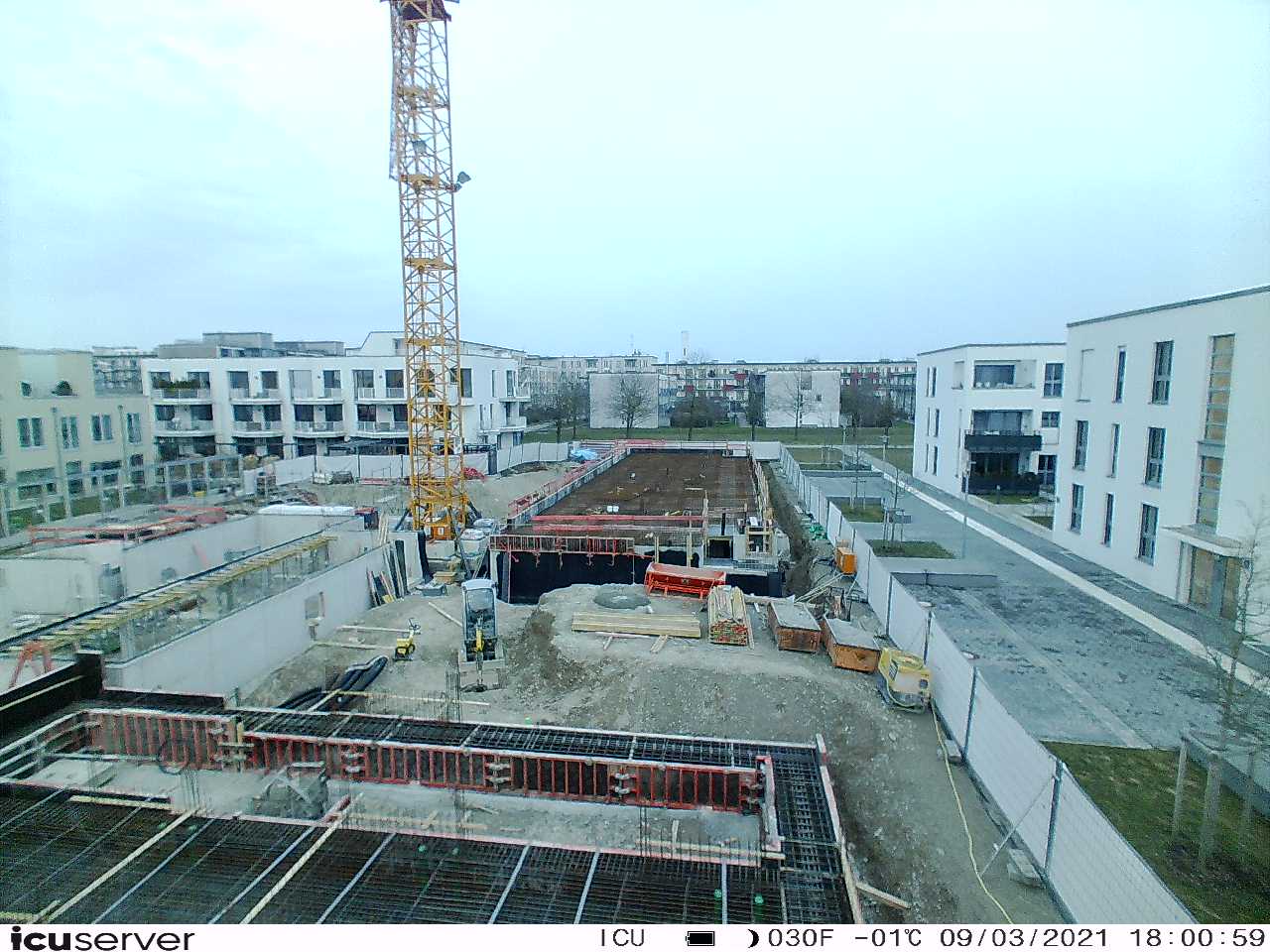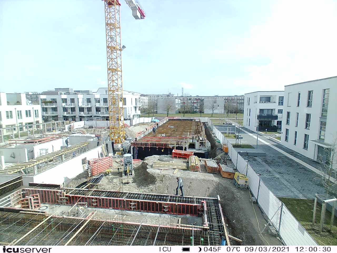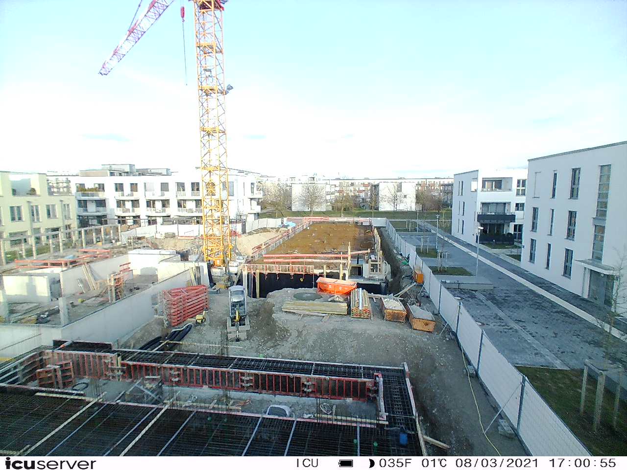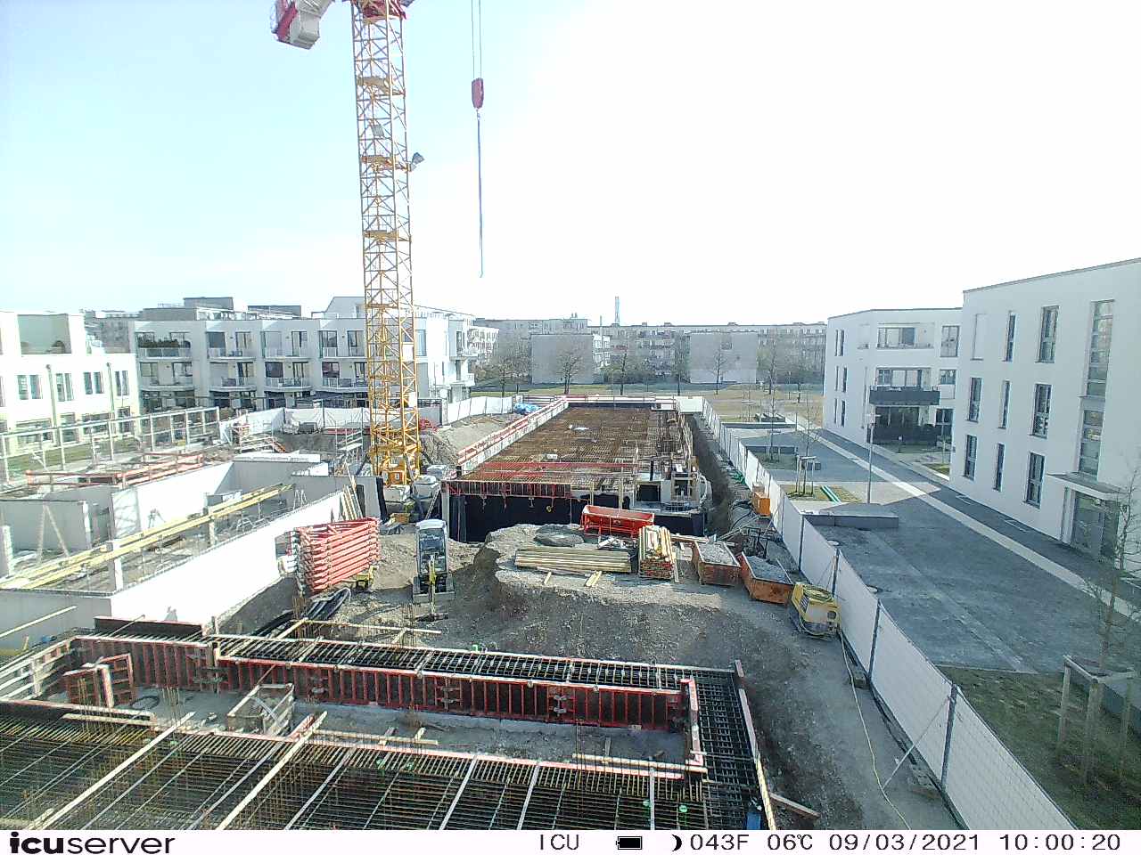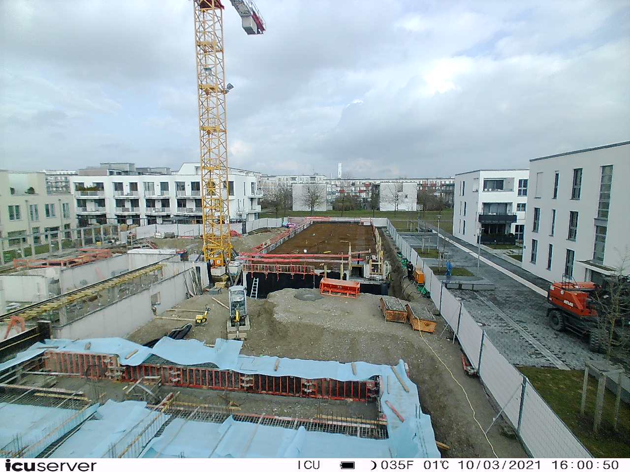 Die Kamera steht am westlichen Ende der Baustelle. Sie blickt nach Osten. Bilder: 26. Februar - 13. August 2021.