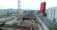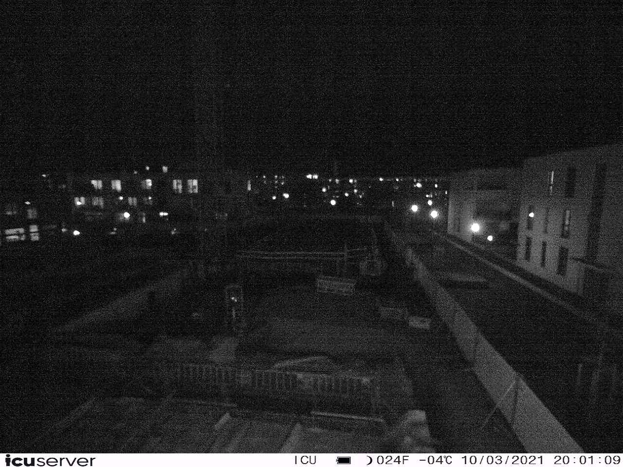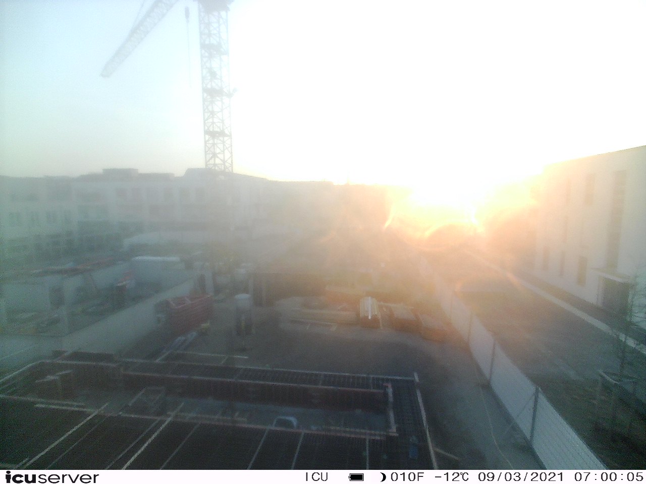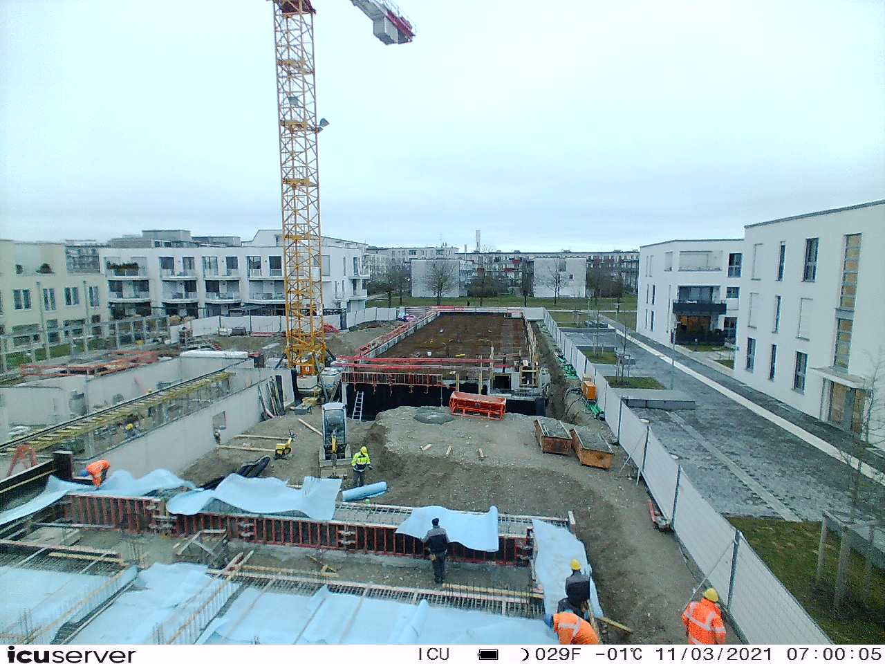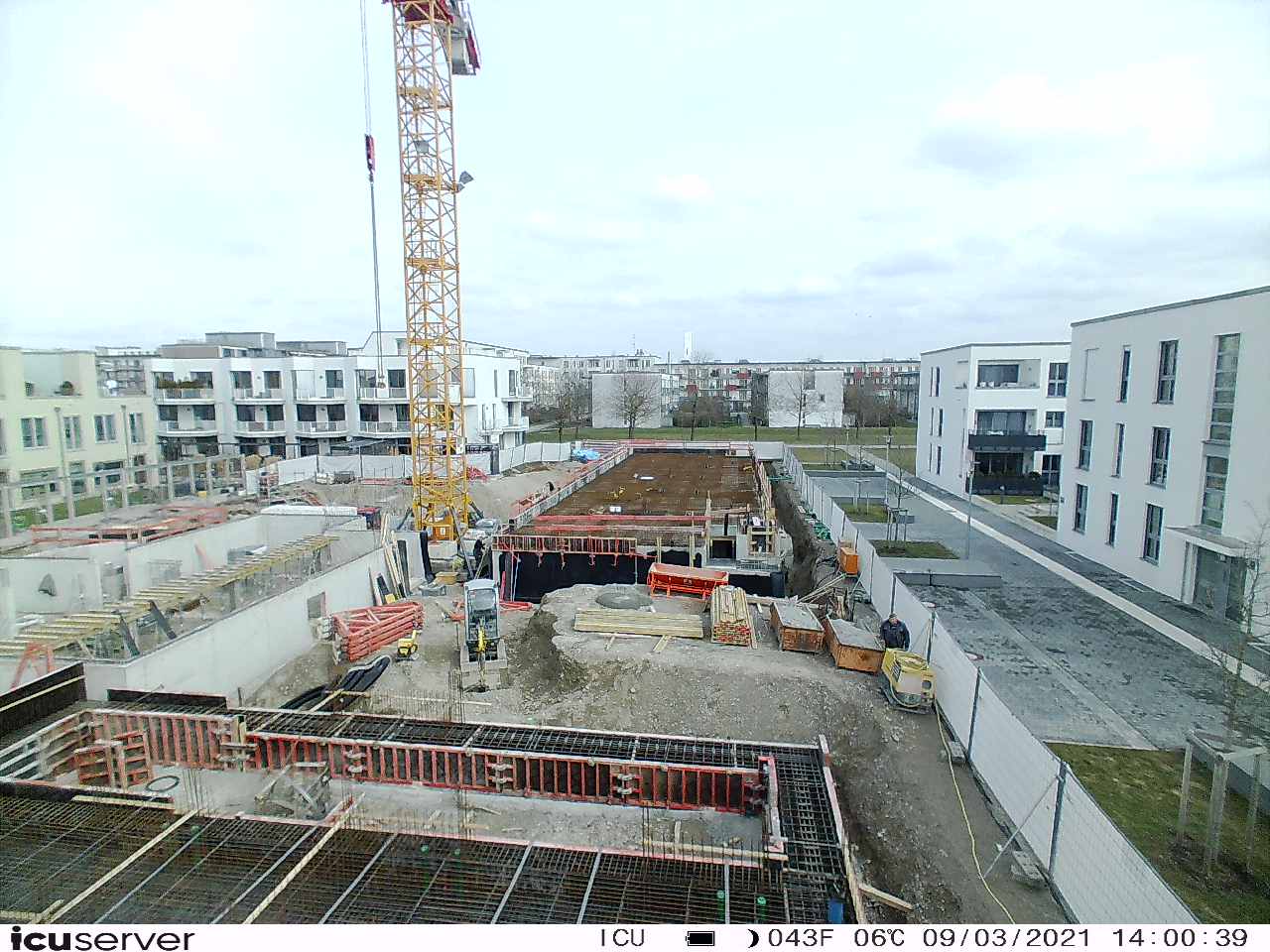 Die Kamera steht am westlichen Ende der Baustelle. Sie blickt nach Osten. Bilder: 26. Februar - 13. August 2021.