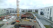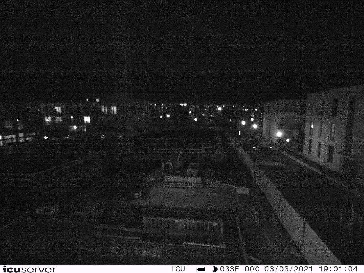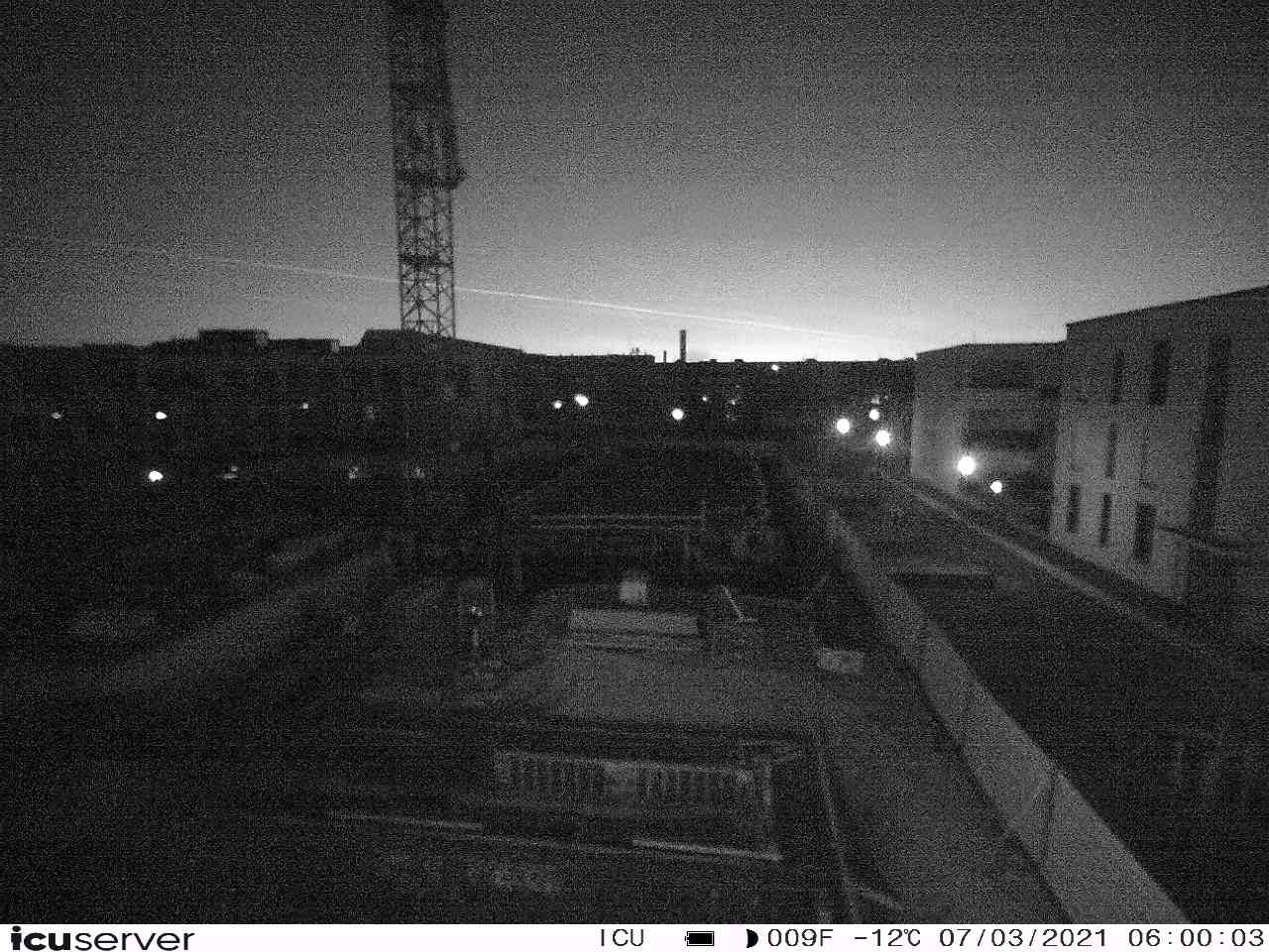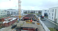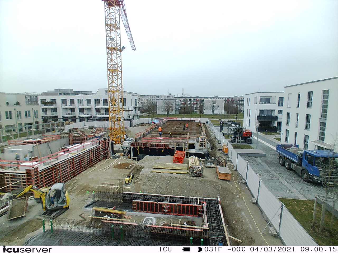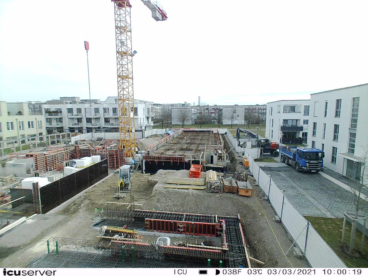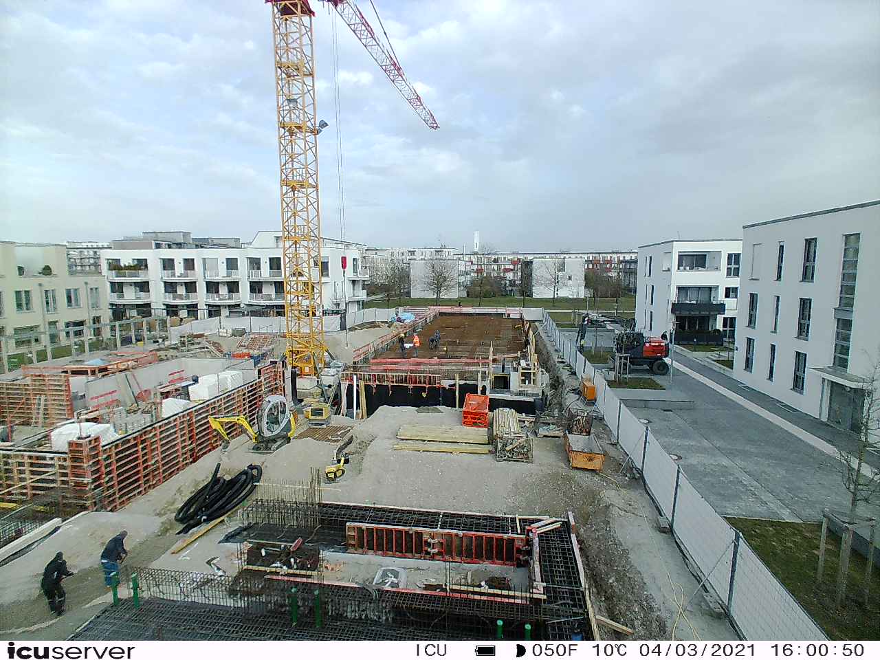 Die Kamera steht am westlichen Ende der Baustelle. Sie blickt nach Osten. Bilder: 26. Februar - 13. August 2021.