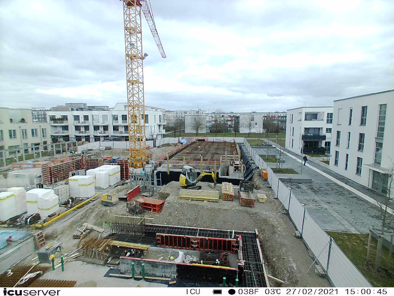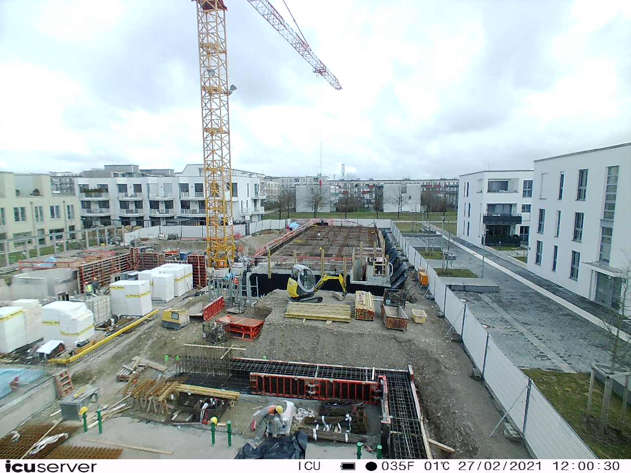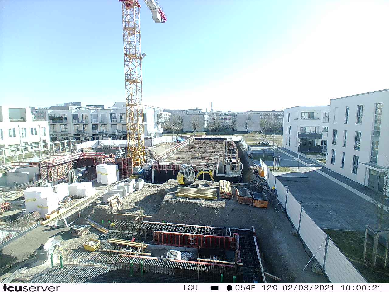 Die Kamera steht am westlichen Ende der Baustelle. Sie blickt nach Osten. Bilder: 26. Februar - 13. August 2021.