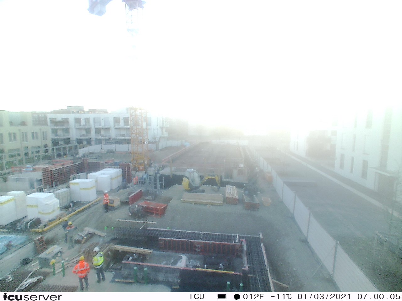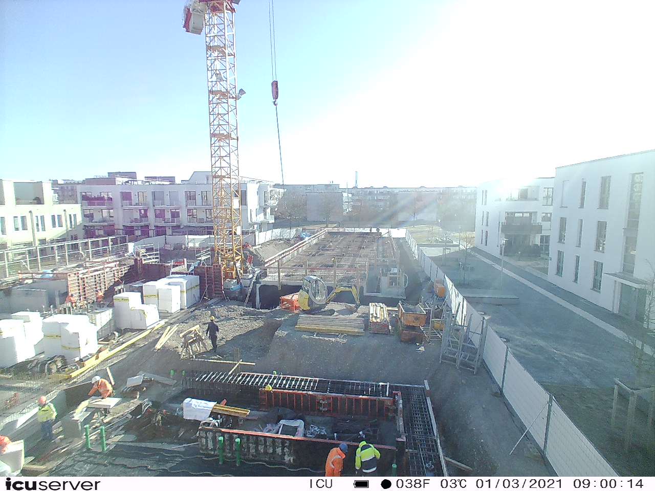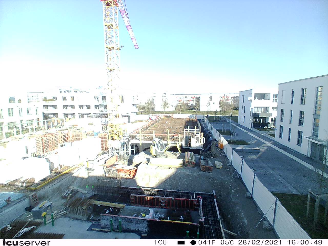 Die Kamera steht am westlichen Ende der Baustelle. Sie blickt nach Osten. Bilder: 26. Februar - 13. August 2021.