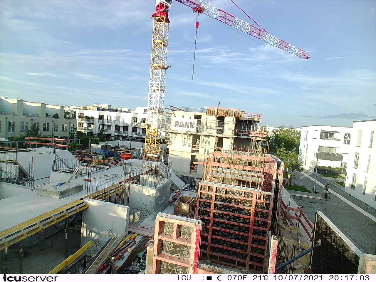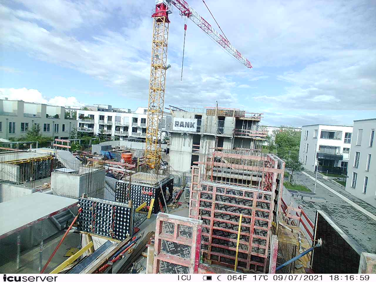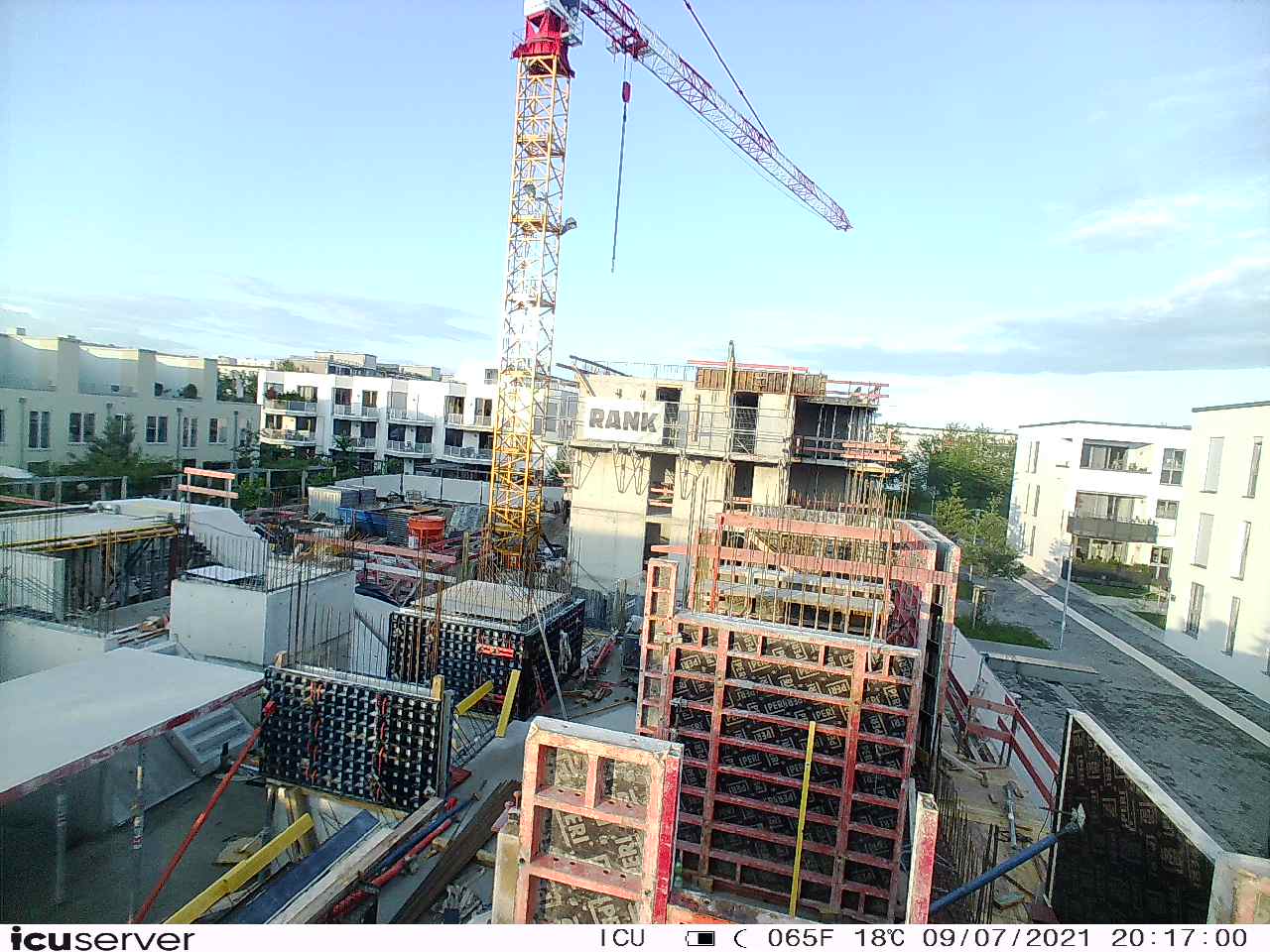 Die Kamera steht am westlichen Ende der Baustelle. Sie blickt nach Osten. Bilder: 26. Februar - 13. August 2021.
