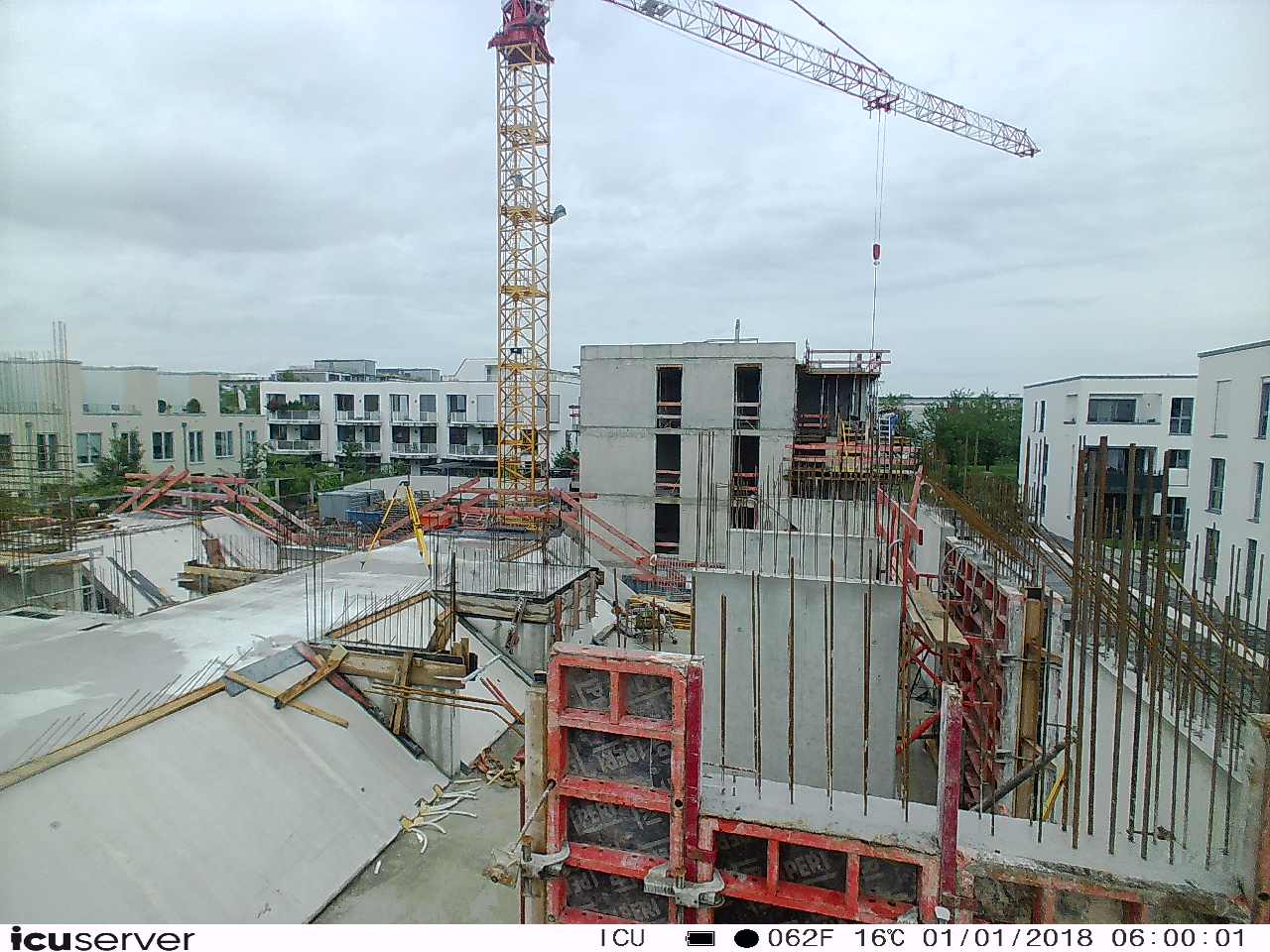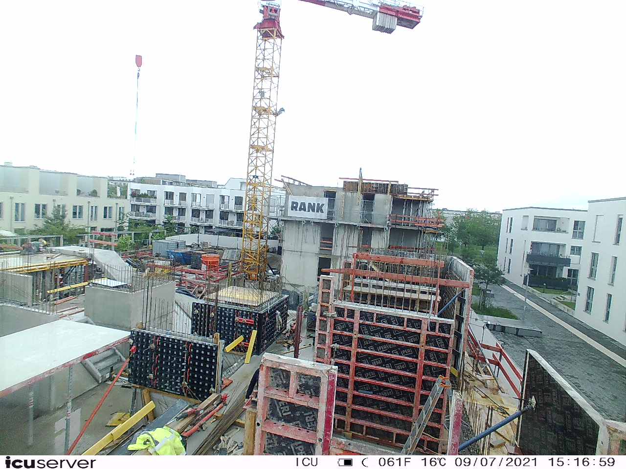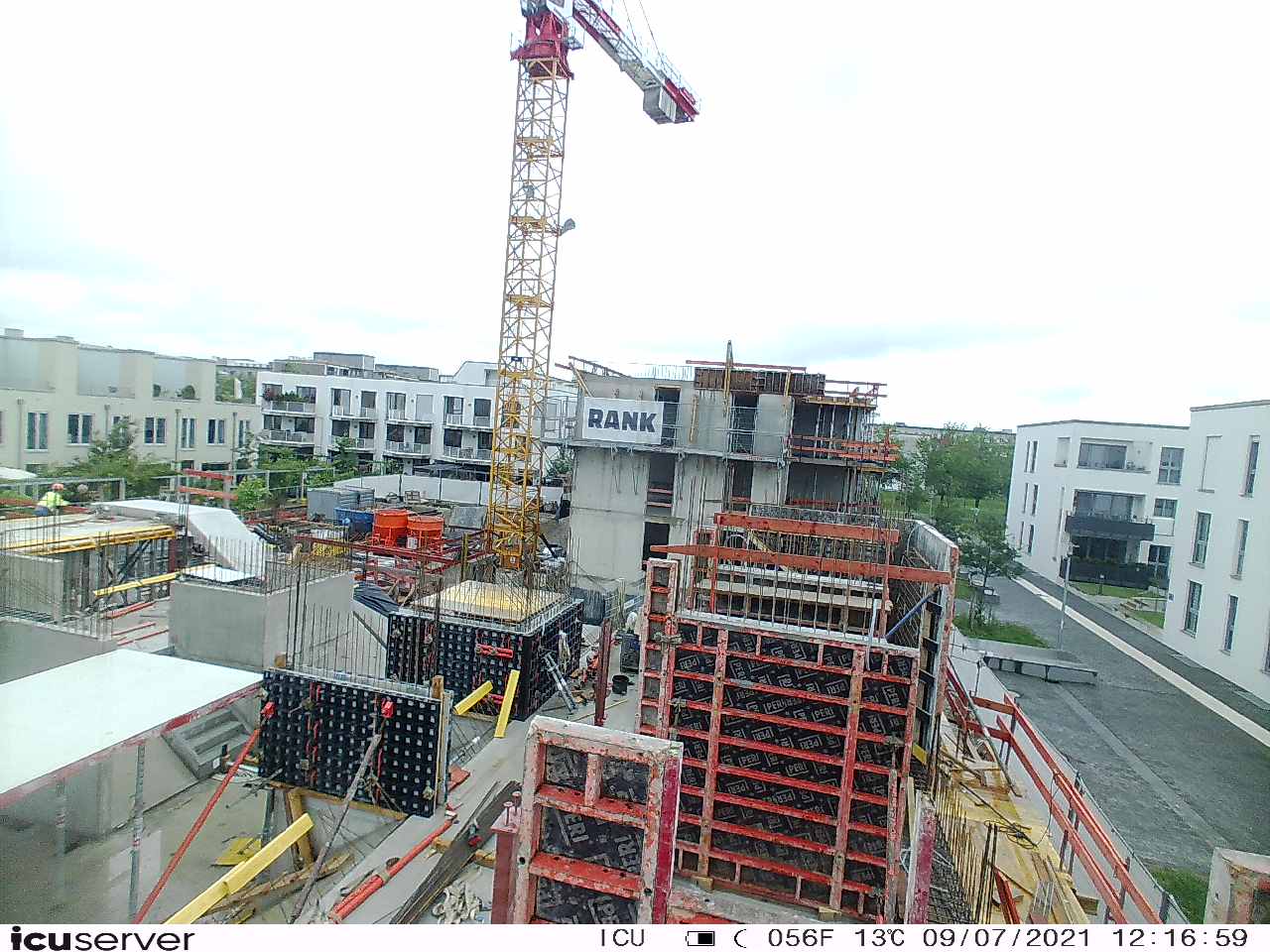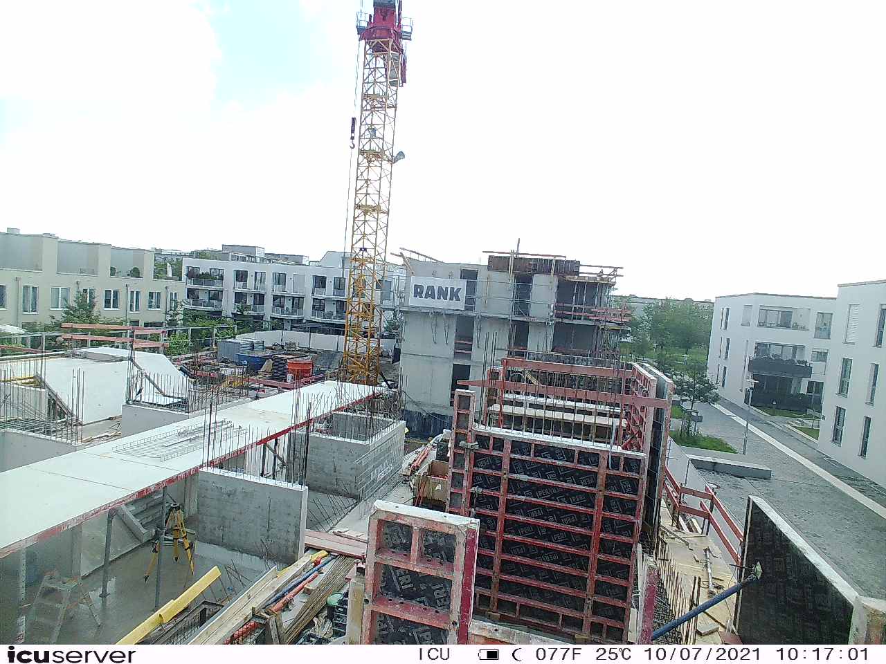 Die Kamera steht am westlichen Ende der Baustelle. Sie blickt nach Osten. Bilder: 26. Februar - 13. August 2021.