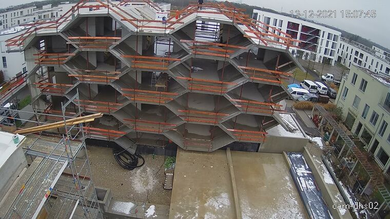 Die Kamera hängt in der Mitte des Krans. Sie blickt nach Westen. Bilder: 1. Juni - 13. Dezember 2021Update 13.12.21: Der Kran wurde inkl. Webcam abgebaut.