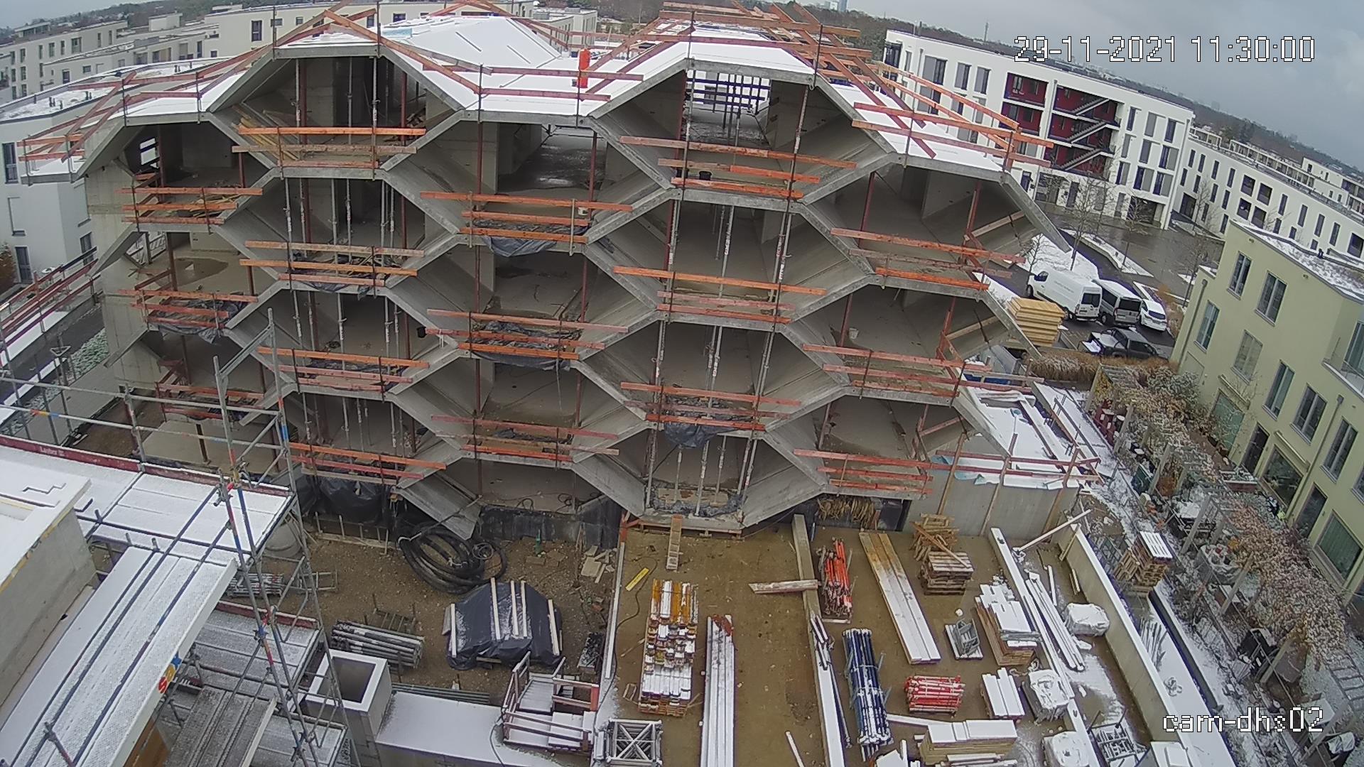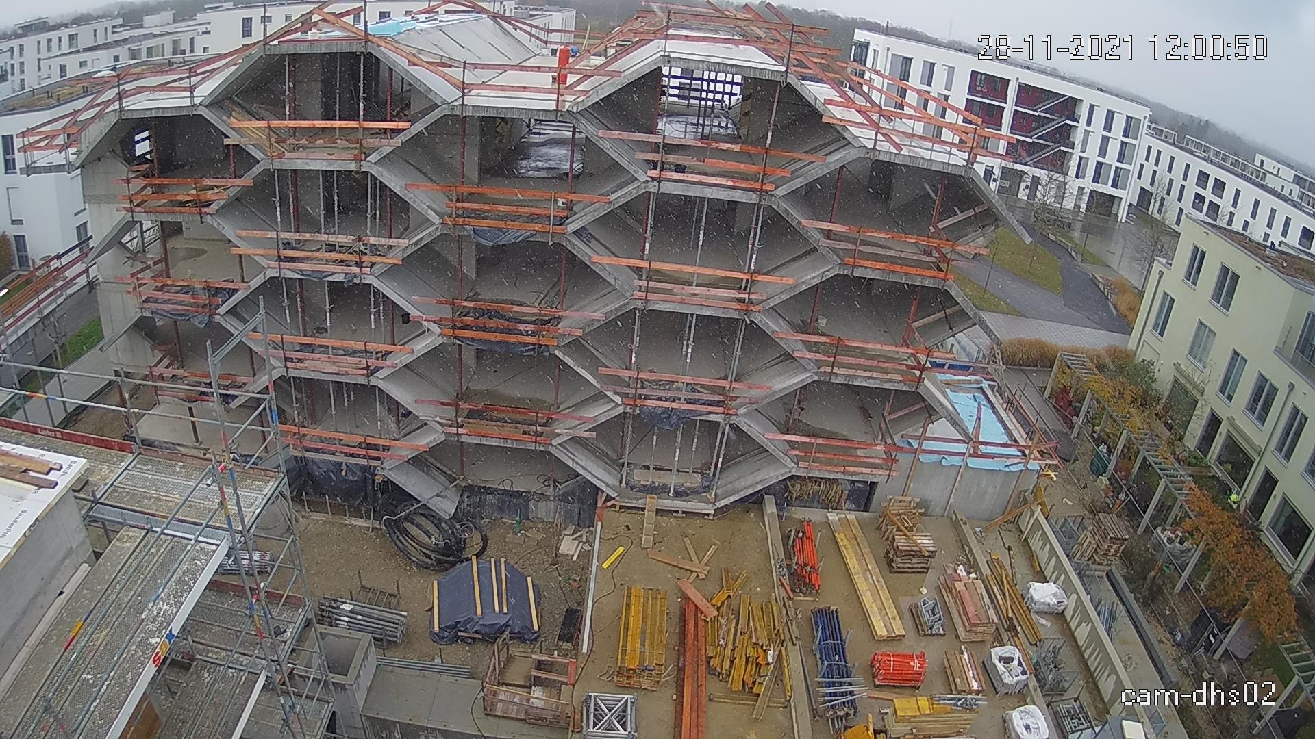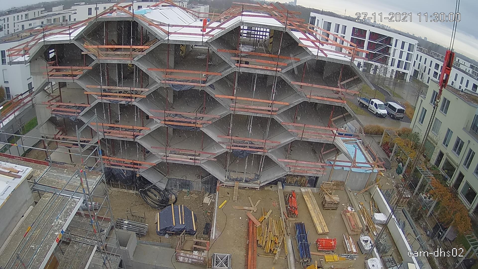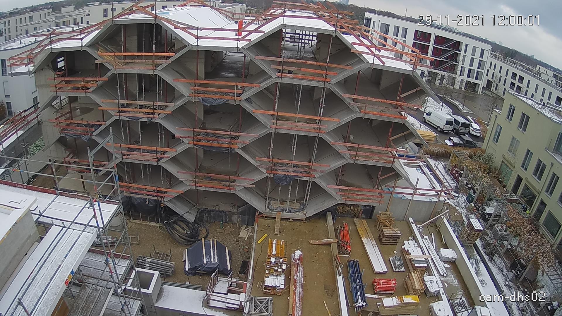 Die Kamera hängt in der Mitte des Krans. Sie blickt nach Westen. Bilder: 1. Juni - 13. Dezember 2021Update 13.12.21: Der Kran wurde inkl. Webcam abgebaut.