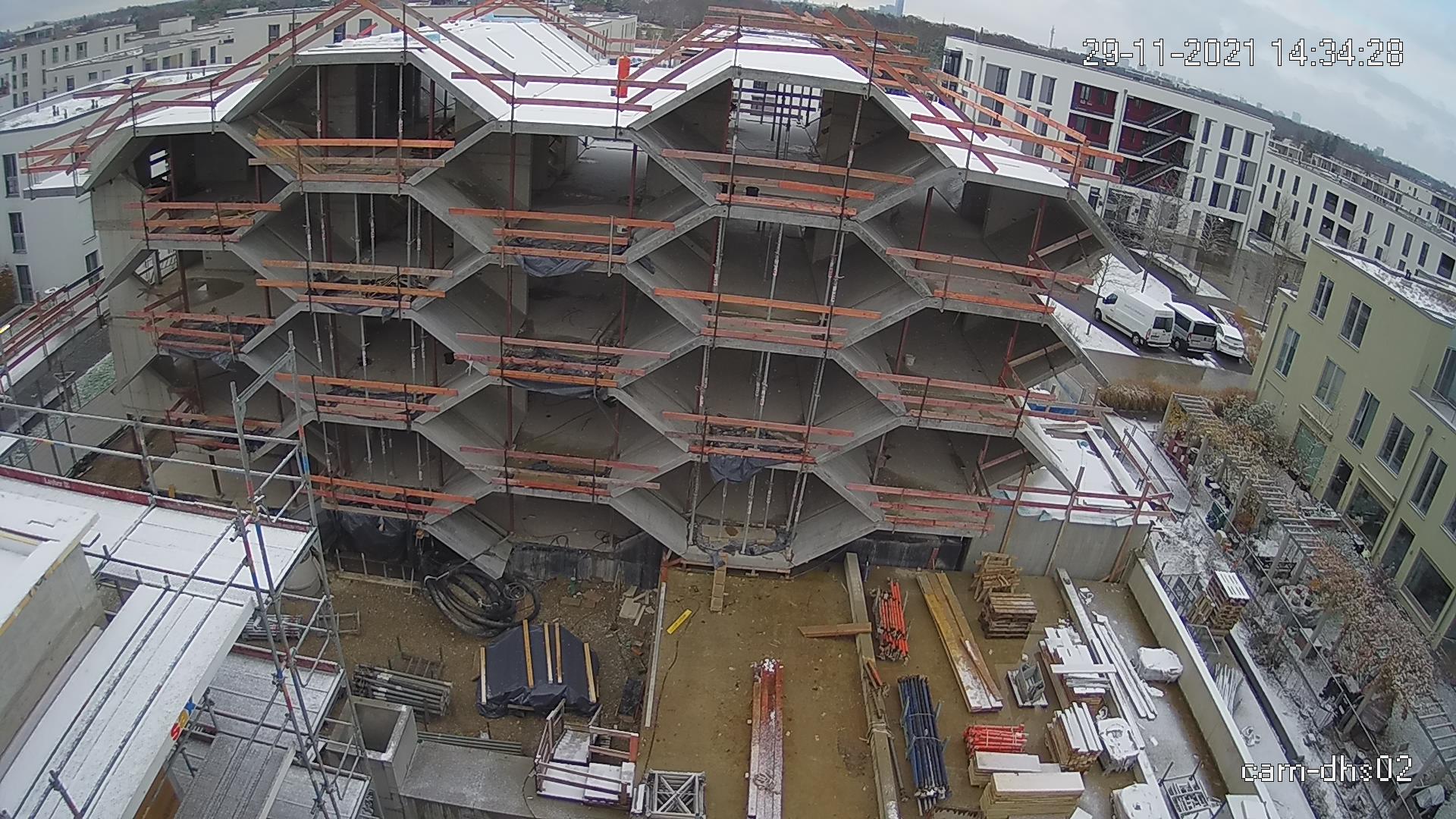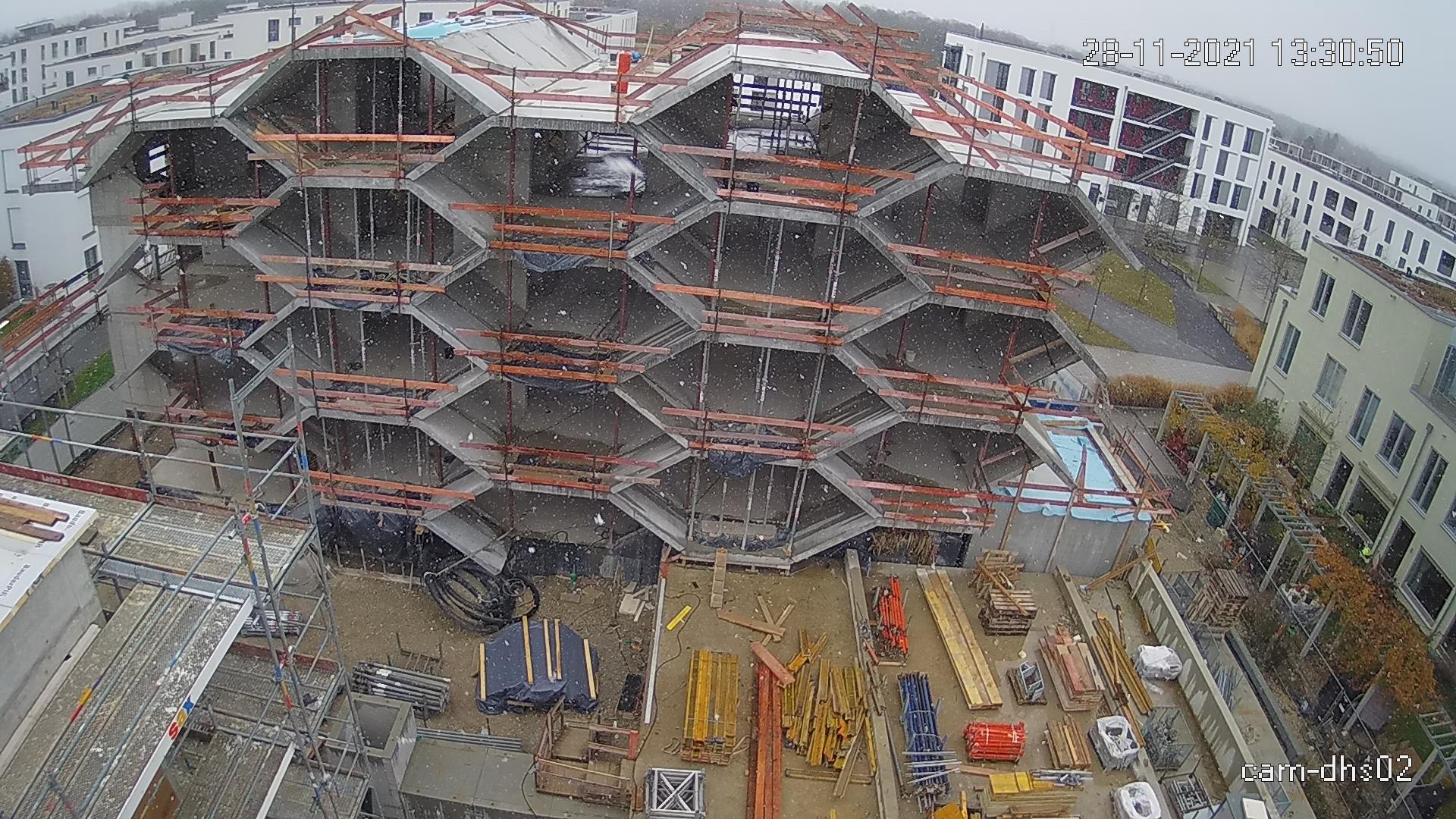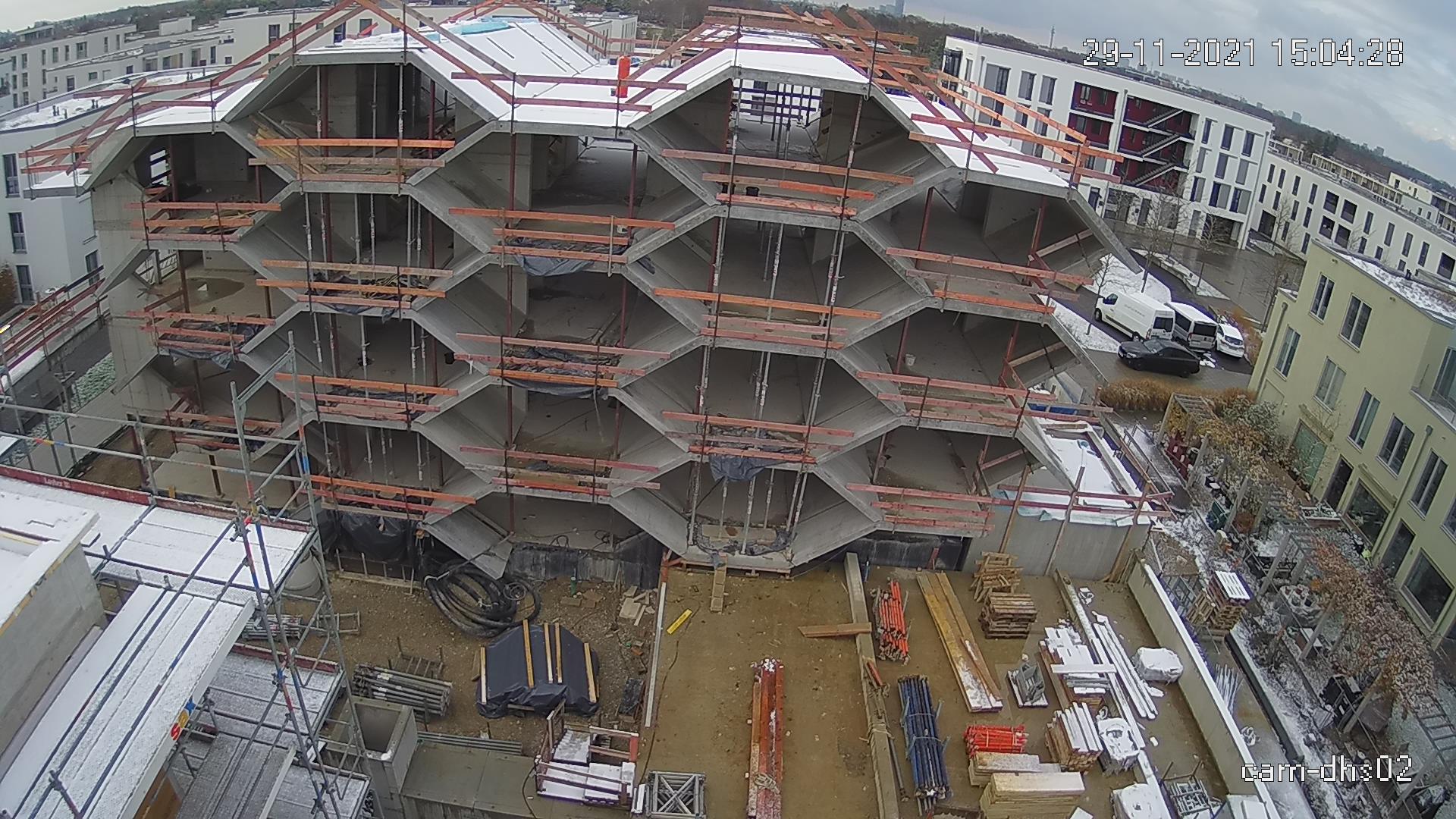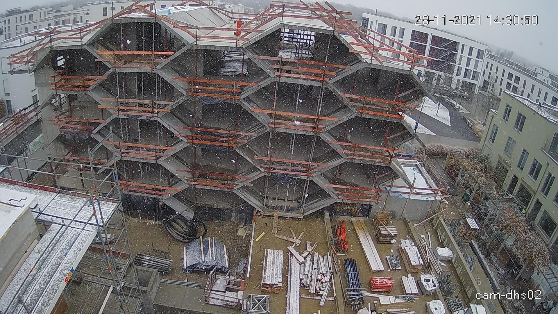 Die Kamera hängt in der Mitte des Krans. Sie blickt nach Westen. Bilder: 1. Juni - 13. Dezember 2021Update 13.12.21: Der Kran wurde inkl. Webcam abgebaut.