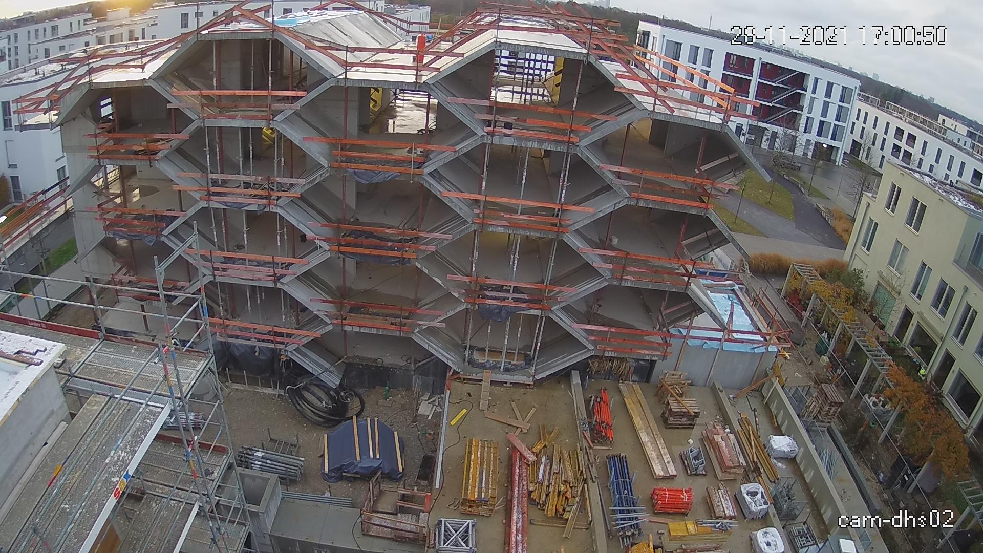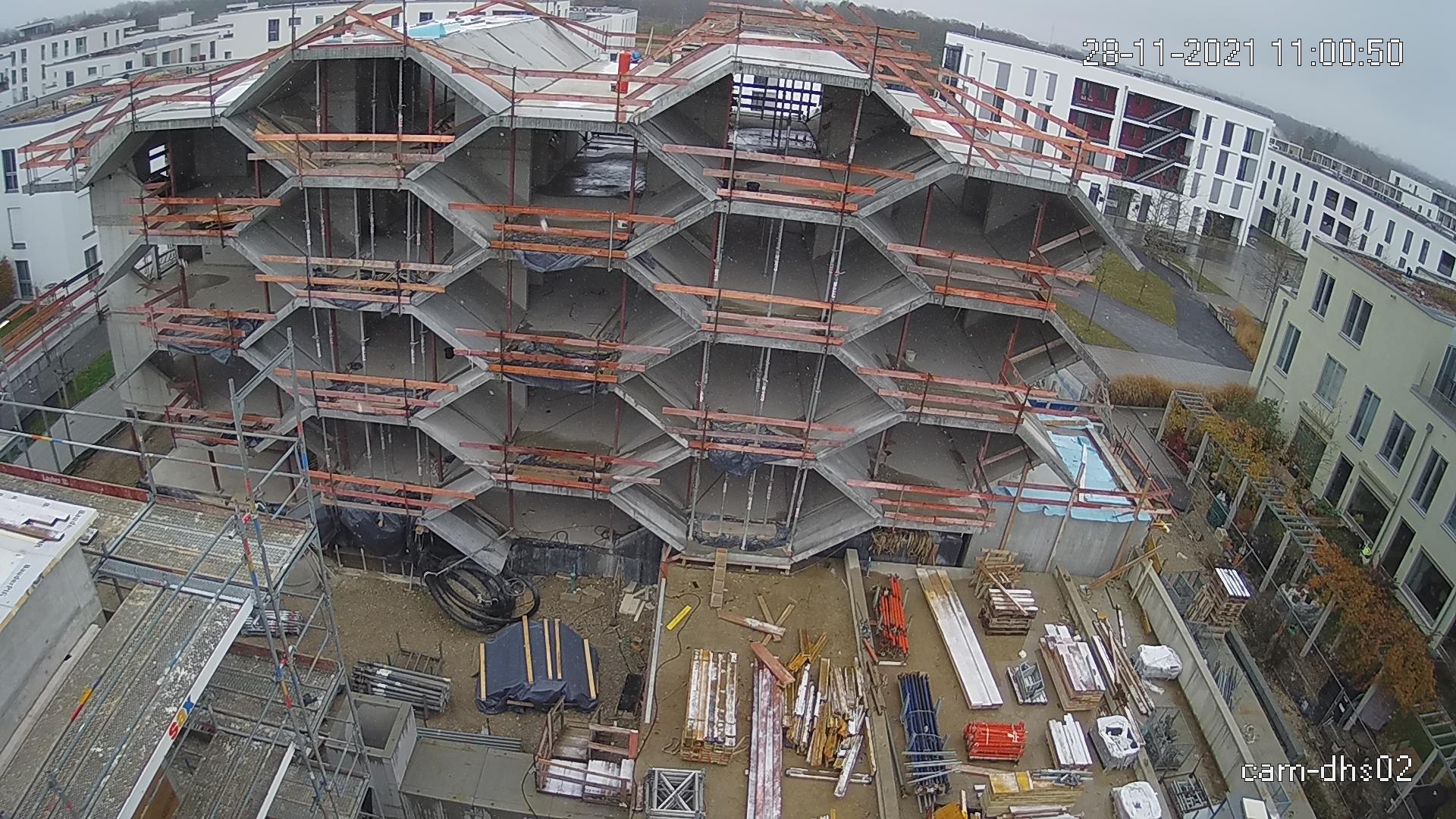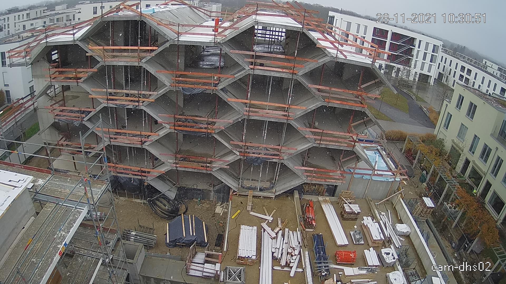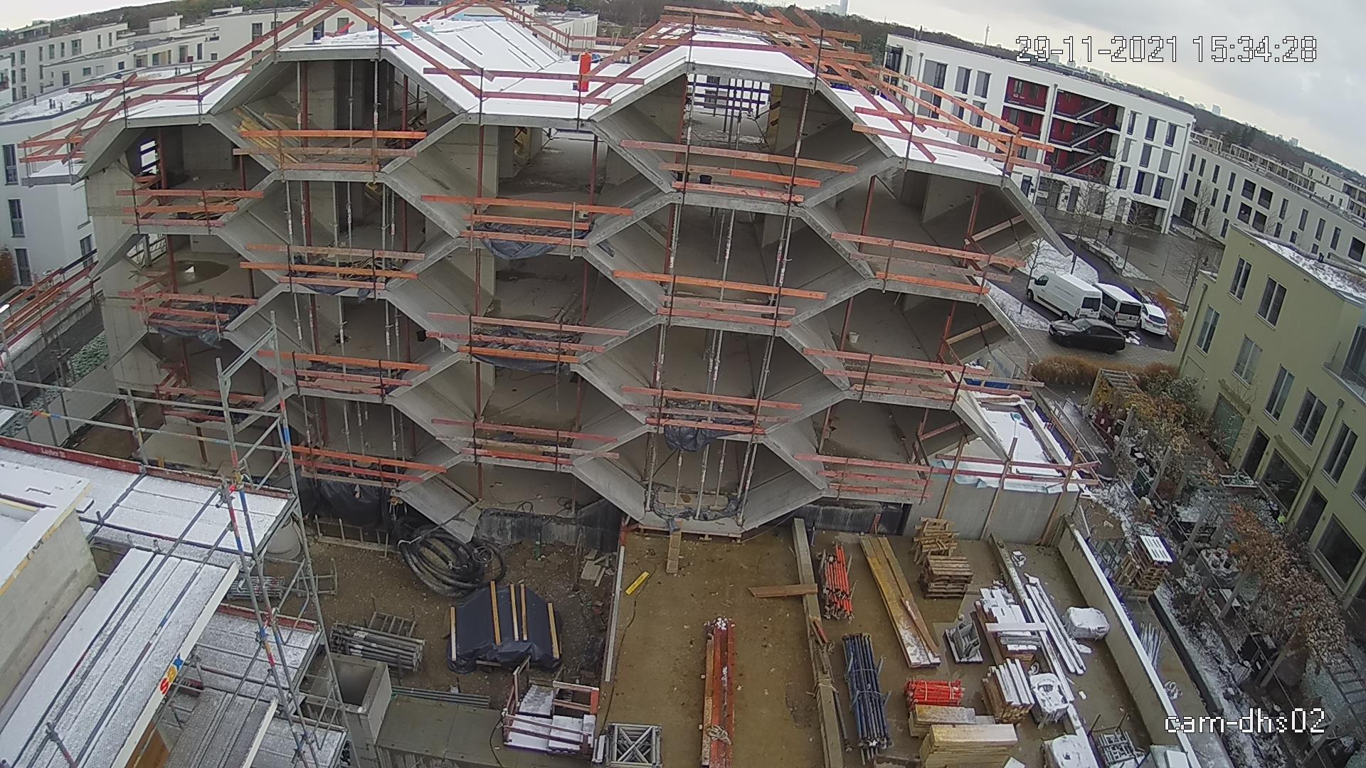 Die Kamera hängt in der Mitte des Krans. Sie blickt nach Westen. Bilder: 1. Juni - 13. Dezember 2021Update 13.12.21: Der Kran wurde inkl. Webcam abgebaut.