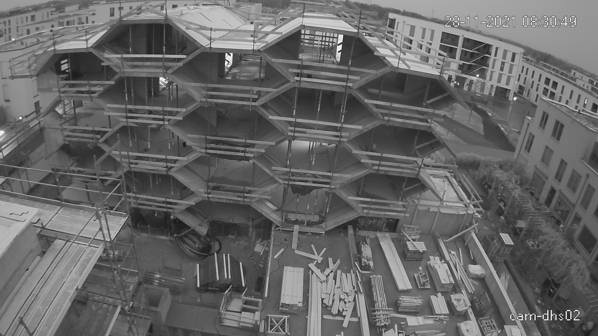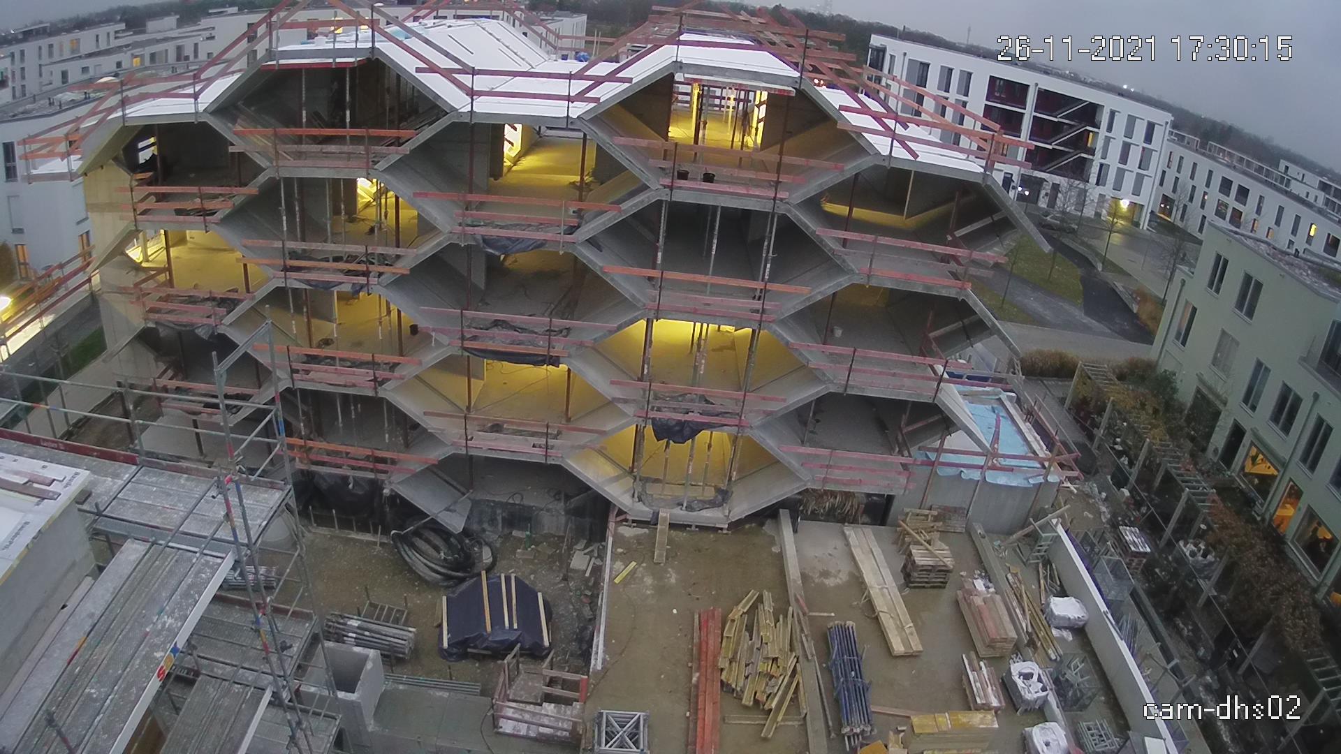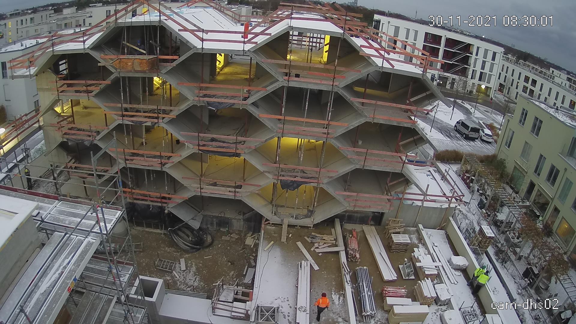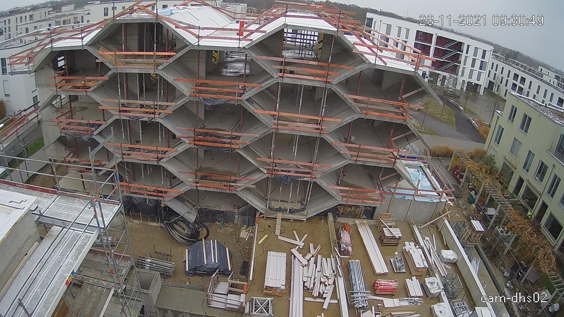 Die Kamera hängt in der Mitte des Krans. Sie blickt nach Westen. Bilder: 1. Juni - 13. Dezember 2021Update 13.12.21: Der Kran wurde inkl. Webcam abgebaut.