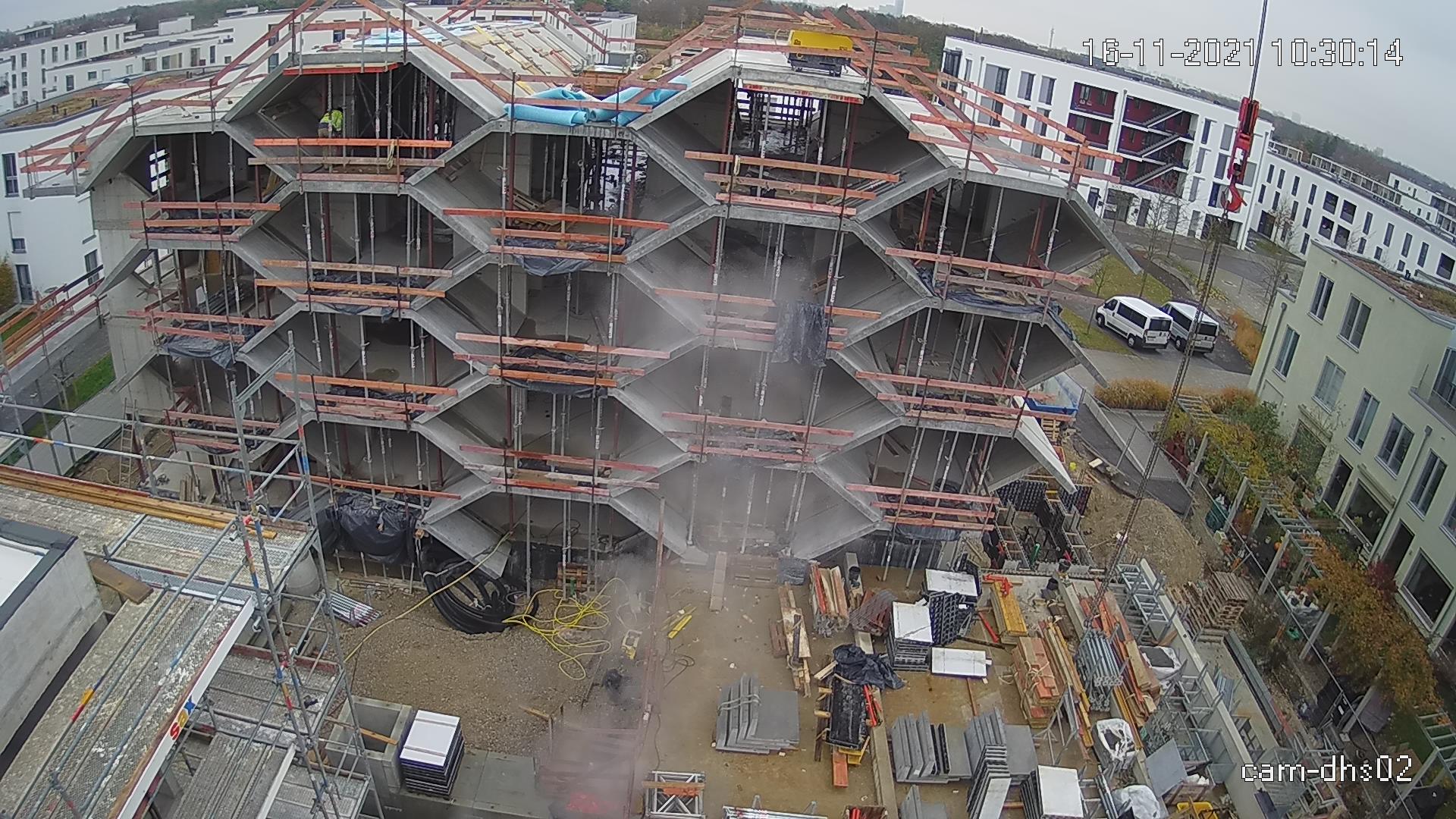 Die Kamera hängt in der Mitte des Krans. Sie blickt nach Westen. Bilder: 1. Juni - 13. Dezember 2021Update 13.12.21: Der Kran wurde inkl. Webcam abgebaut.